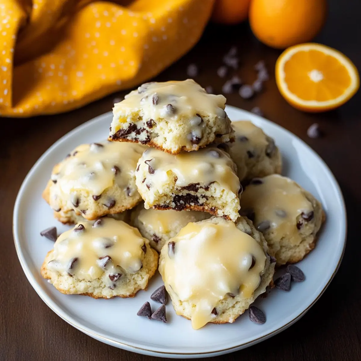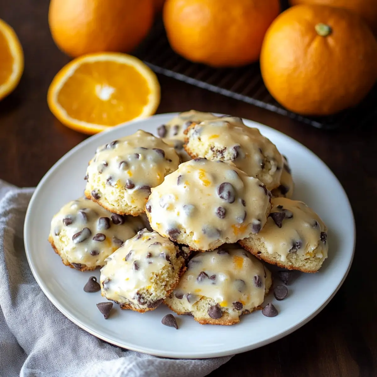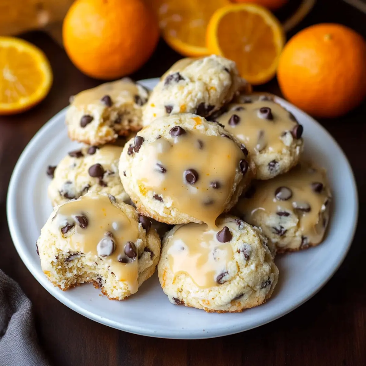 Jump to Recipe Print RecipeAs I stood in my kitchen, the scent of zesty orange filling the air, I couldn’t help but think of the holiday magic that comes from baking. Let me introduce you to my latest delight: Orange Chocolate Chip Ricotta Cookies. These soft, melt-in-your-mouth treasures are perfect for satisfying your sweet tooth while also impressing your family and friends. The luscious creaminess of ricotta makes each bite a comforting embrace, and the blend of citrus and dark chocolate brings a refreshing twist that’s simply irresistible. Not only are these cookies a treat for your taste buds, but they’re also quick to whip up, making them a go-to for festive gatherings or cookie exchanges. Do you want to learn how to create this holiday gem and make your kitchen a haven of flavor? Why Are These Cookies So Irresistible? Unforgettable Flavor: The bright notes of fresh orange paired with rich chocolate create a taste that dances on your palate, making every cookie a delicious experience. Flexibly Festive: Perfect for any occasion, these cookies shine at holiday parties, cookie exchanges, or simply as a delightful afternoon treat with coffee or tea. Moist and Chewy: The addition of whole milk ricotta guarantees a texture that is wonderfully soft and pillowy, setting them apart from typical cookie recipes. User-Friendly: With only a few simple steps, you can easily create a batch of these delectable cookies, perfect for bakers of all skill levels. Endless Variations: Want to mix it up? Consider replacing the chocolate chips with white chocolate or adding a handful of dried cranberries for a festive twist. Try pairing these with my Tiramisu Cookies Melt for a delightful assortment! Orange Chocolate Chip Ricotta Cookies Ingredients For the Cookie Batter • All-purpose flour – Provides essential structure; swap for gluten-free flour to cater to dietary needs. • Baking powder – A crucial leavening agent that helps your cookies rise beautifully. • Salt – Enhances sweetness and flavor balance, ensuring every bite is exquisite. • Granulated sugar – Adds the delightful sweetness and structure necessary for a perfect cookie. • Unsalted butter – Provides richness and moisture; remember to soften it before mixing! • Orange zest – Infuses a vibrant citrus flavor; opt for zest from large navel oranges for the best impact. • Large egg – Acts as a binder while adding necessary moisture to the batter. • Whole milk ricotta cheese – Brings a creamy texture that keeps the cookies moist; choose high-quality ricotta for best results. • Vanilla extract – A touch of depth that elevates the overall flavor profile. • Mini semi-sweet chocolate chips – Melty, sweet bites that add indulgence; dark chocolate can be swapped if desired. For the Glaze • Powdered sugar – Creates a sweet, glossy finish that makes these cookies truly irresistible. • Fresh orange juice – Adds tanginess and enhances the vibrant flavor; freshly squeezed is the way to go! • Orange zest – Extra zest in the glaze gives an aromatic citrus kick that complements the cookie perfectly. These Orange Chocolate Chip Ricotta Cookies are not just a treat for the holiday season; they promise a delightful experience that will resonate with you and your loved ones! Step‑by‑Step Instructions for Orange Chocolate Chip Ricotta Cookies Step 1: Mix Dry Ingredients In a medium mixing bowl, whisk together 2 cups of all-purpose flour, 1 teaspoon of baking powder, and a pinch of salt until well combined. This step ensures that your leavening agent is evenly distributed throughout the flour, leading to beautifully risen Orange Chocolate Chip Ricotta Cookies. Set this mixture aside while you prepare the wet ingredients. Step 2: Cream Butter and Sugar In an electric mixer, beat together ¾ cup of granulated sugar and ½ cup of softened unsalted butter on medium speed for about 2-3 minutes, or until the mixture is light and fluffy. The key is to achieve a creamy consistency that incorporates air, which helps your cookies rise beautifully. Add in the zest of one large orange to enhance that vibrant citrus flavor. Step 3: Incorporate Wet Ingredients Once your mixture is fluffy, add in one large egg, 1 cup of whole milk ricotta cheese, and 1 teaspoon of vanilla extract. Mix on low speed until fully combined, about 1-2 minutes. It’s important to blend thoroughly, as the ricotta adds moisture and flavor to your Orange Chocolate Chip Ricotta Cookies, creating that delicious buttery richness everyone loves. Step 4: Combine Mixtures Gradually add the flour mixture into the wet ingredients, mixing gently until just combined. Be careful not to overmix, as this can lead to tough cookies. Once ready, fold in 1 cup of mini semi-sweet chocolate chips using a spatula, ensuring they’re evenly distributed throughout the dough for bursts of chocolate in every cookie. Step 5: Chill the Dough Cover the dough with plastic wrap and refrigerate for about 1-2 hours. Chilling is crucial as it firms up the dough, making it easier to scoop and shape the cookies. This step helps maintain their shape during baking, ensuring your Orange Chocolate Chip Ricotta Cookies come out perfectly. Step 6: Preheat the Oven During the last 20 minutes of chilling, preheat your oven to 350°F (175°C). A hot oven helps the cookies rise quickly, contributing to their soft and pillowy texture. Line a baking sheet with parchment paper to prevent sticking and for easy cleanup once your cookies are baked. Step 7: Scoop and Shape Using a cookie scoop or two spoons, drop rounded tablespoonfuls of the dough onto the prepared baking sheet, spacing them about 2 inches apart. This spacing allows the cookies to spread without merging into each other. You should see a lovely mound of dough that looks ready to bloom in the oven! Step 8: Bake the Cookies Bake in the preheated oven for 13-14 minutes, or until the edges start to turn golden but the centers are stil