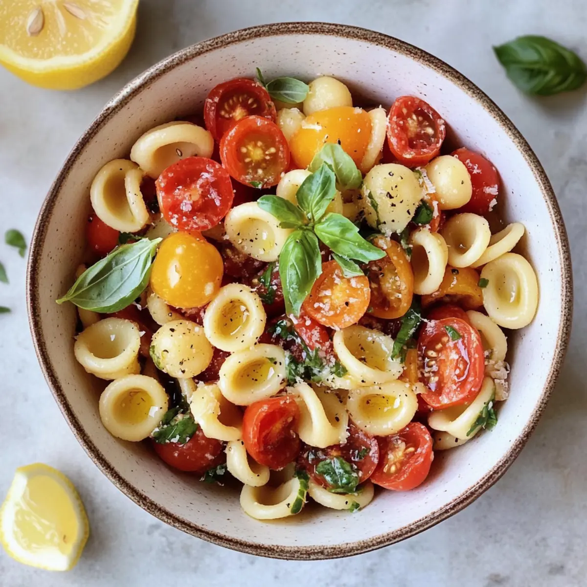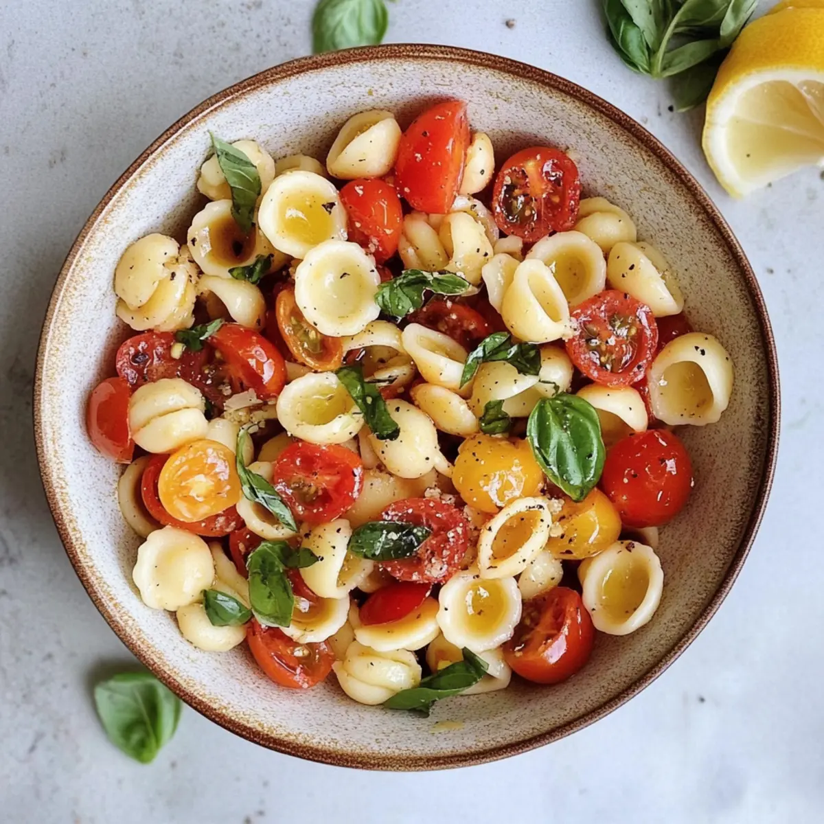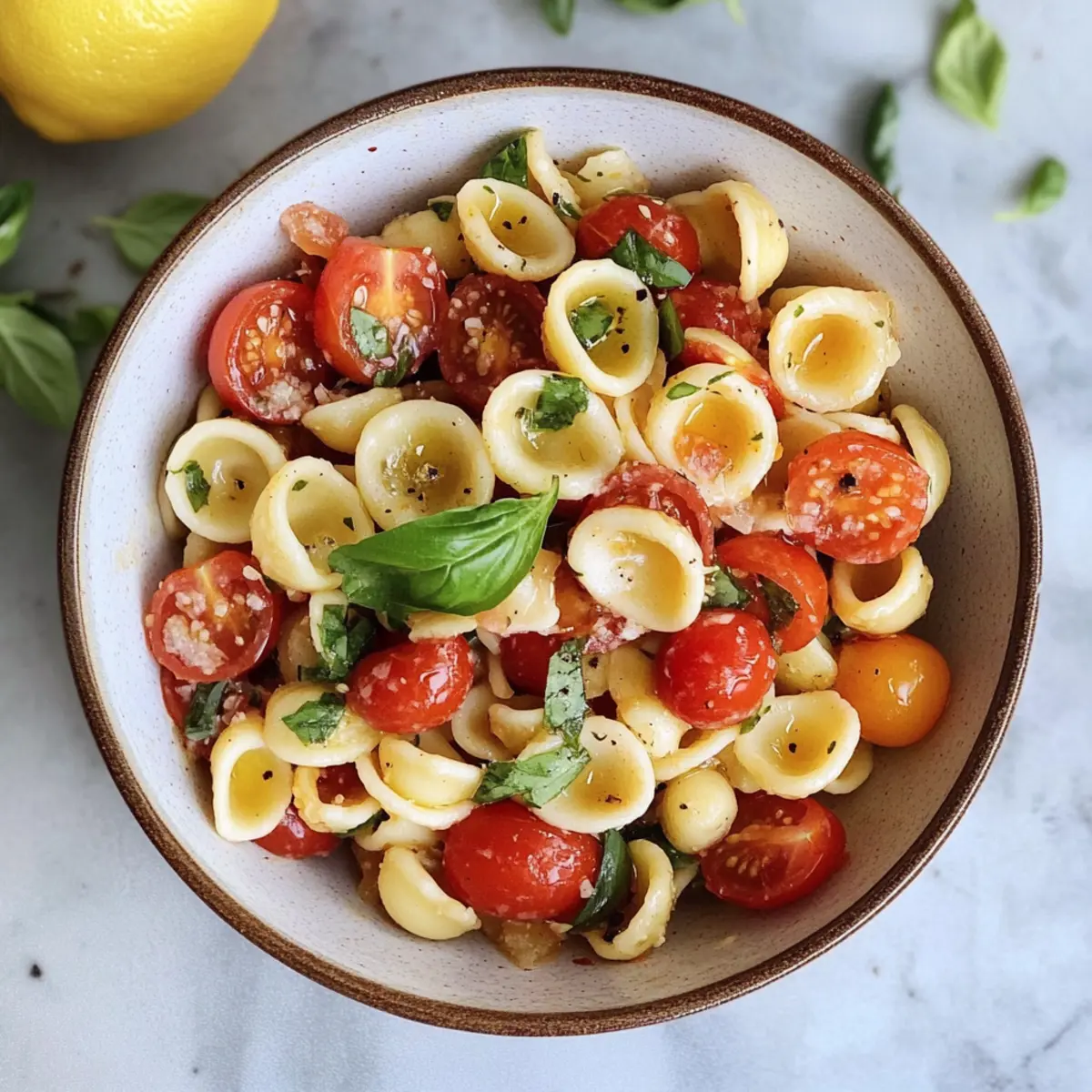 Jump to Recipe Print RecipeAs I stepped into my kitchen, the vibrant colors of summer ingredients beckoned me, almost as if they were whispering an invitation. This is the essence of my Orecchiette Bruschetta Pasta Salad—a delightful dish that captures the warmth and freshness of sun-kissed gardens. With juicy cherry tomatoes, fragrant basil, and zesty lemons, it’s the perfect way to savor the season’s bounty. Plus, it’s a quick and easy vegetarian meal that transforms simple ingredients into an extraordinary experience, whether you’re hosting a picnic or seeking a light dinner. Curious about how these flavors meld into a delectable salad? Let’s dive in! Why is Orecchiette Bruschetta Pasta a Must-Try? Vibrant Flavors: This dish marries the sweetness of cherry tomatoes with aromatic basil and zesty lemon, creating a festival of taste in every bite. Quick & Easy: Ready in just 30 minutes, it’s perfect for busy weekdays or last-minute gatherings. Vegetarian Delight: A fantastic, meatless meal that even non-vegetarians will adore, bringing everyone to the table. Versatile Options: Feel free to swap in your favorite pasta shapes or add protein like chickpeas for a hearty touch! Perfect for Summer: Best served chilled, it’s a refreshing addition to any picnic or potluck. For other great summer salads, check out my Healthy Cucumber Pasta Salad and Italian Antipasto Pasta! Orecchiette Bruschetta Pasta Ingredients • Dive into the freshness of flavors with these Orecchiette Bruschetta Pasta Salad ingredients! For the Pasta Orecchiette Pasta – Provides delightful chewiness; you can easily substitute with small shells or gluten-free options. For the Salad Base Cherry Tomatoes – Bursting with sweetness and juiciness; mix colors for added taste complexity or use heirloom varieties for a fresh twist. Fresh Basil – Imparts fragrant herbal notes; make sure to wash and tear the leaves for optimal flavor. Garlic – Adds pungency and depth; grate into a paste to mellow its sharpness and enhance the flavor profile. For the Dressing Lemons – Essential for refreshing acidity and zest; use juice and zest from two lemons for balanced brightness. Extra Virgin Olive Oil – Enriches the dish; feel free to adjust the amount to suit your taste preferences. Each of these ingredients plays a vital role in creating the iconic Orecchiette Bruschetta Pasta, a dish that truly celebrates the essence of summer! Step‑by‑Step Instructions for Orecchiette Bruschetta Pasta Salad Step 1: Prepare the Tomatoes Begin by halving the cherry tomatoes and placing them in a medium bowl. Add finely grated garlic, a drizzle of extra virgin olive oil, fresh lemon juice, and a pinch of sea salt. Stir gently to combine and let the mixture macerate at room temperature for about 15 minutes while you cook the pasta. This step is crucial for the flavors to meld beautifully in the Orecchiette Bruschetta Pasta Salad. Step 2: Cook the Pasta Fill a large pot with water, add a generous amount of salt, and bring it to a rolling boil over high heat. Add the orecchiette pasta and cook according to package instructions until al dente, usually about 9-11 minutes. Once cooked, drain the pasta in a colander and rinse it under cold water until it cools, stopping the cooking process and preventing it from sticking together. Step 3: Combine Ingredients In a large mixing bowl, combine the chilled orecchiette with the marinated tomato mixture, ensuring all the ingredients are well-coated in the flavorful juices. Gently fold in thoroughly washed and torn fresh basil leaves, allowing their fragrant aroma to waft through your kitchen. This step brings the vibrant flavors of the Orecchiette Bruschetta Pasta Salad together in perfect harmony. Step 4: Taste and Adjust Take a moment to taste your beautiful creation. Add a splash of lemon juice, a drizzle more of olive oil, and a sprinkle of sea salt to enhance the flavors as desired. If you enjoy a little heat, consider adding a pinch of red chili flakes. Stir everything well, ensuring each bite of the Orecchiette Bruschetta Pasta Salad is packed with layered flavors and excitement. Expert Tips for Orecchiette Bruschetta Pasta Marinate for Flavor: Letting the tomatoes and garlic sit while cooking the pasta allows the flavors to meld, giving your Orecchiette Bruschetta Pasta a delightful depth. Season to Taste: Always taste before serving. You might want to add more lemon juice, olive oil, or sea salt to elevate the overall taste of your salad. Choose Quality Ingredients: Use the freshest cherry tomatoes and fragrant basil possible, as these ingredients are the stars of this light, refreshing dish. Avoid Overcooking: Be vigilant while cooking the orecchiette; overcooking can lead to a mushy texture. Aim for al dente for the perfect bite in your Orecchiette Bruschetta Pasta. Prep Ahead: You can prepare the tomato mixture earlier in the day and keep it in the fridge. Just combine with the pasta and basil when ready to serve for a quick meal. Make Ahead Options These Orecchiette Bruschetta Pasta Salad components can be prepped in advance to save time on busy weeknights! You can prepare the marinated tomato mixture (cherry tomatoes, garlic, olive oil, lemon juice, and salt) up to 24 hours ahead—just refrigerate it to maintain freshness. Additionally, cook the orecchiette pasta the day before and store it in an airtight container in the fridge for up to 3 days. To ensure the best quality, always rinse the pasta with cold water after cooking to prevent sticking. When you’re ready to serve, simply combine the chilled pasta with the tomato mixture, fold in the fresh basil, and adjust the seasoning as needed for a delightful meal that feels just as fresh as when you first made it! Storage Tips for Orecchiette Bruschetta Pasta Fridge: Store leftovers in an airtight container in the refrigerator for up to 3 days. Ensure the pasta is completely cool before sealing to prevent moisture buildup. Free