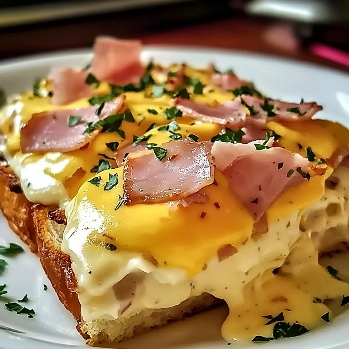 Jump to Recipe Print RecipeThe first light of dawn is a gentle invitation to savor something special, and what better way to rise and shine than with an Overnight Eggs Benedict Casserole? This luscious brunch delight harmonizes fluffy eggs, savory ham, and golden English muffins dripping in a creamy Hollandaise sauce. One of the most irresistible perks of this recipe is its make-ahead nature—preparing it the night before means no morning rush, just deliciousness at your leisurely pace. Plus, it’s an easy crowd-pleaser that makes any gathering feel a bit more festive! Whether you’re hosting friends for Sunday brunch or simply treating yourself to a cozy breakfast, this casserole is sure to impress. Ready to unlock the magic of effortless brunching? Let’s dive into this delicious journey together! Why You’ll Love This Casserole? Easy Prep: The night-before assembly means you’ll spend mere minutes in the kitchen, allowing you to relax before your guests arrive. Crowd-Pleasing: This dish is a showstopper for brunch gatherings—everyone will be raving about the flavors! Versatile Options: Customize it with a variety of proteins and veggies, making it your own with each iteration. Rich and Satisfying: The creamy Hollandaise drizzled on top transforms simple ingredients into a decadent feast. Perfect for Meal Prep: Ideal for a busy week, just portion and reheat for a delightful breakfast anytime. With so many reasons to love it, this Overnight Eggs Benedict Casserole is not just a dish; it’s the heart of your brunch table! Overnight Eggs Benedict Casserole Ingredients For the Casserole Base Eggs – Essential for structure and protein; opt for large, fresh eggs for the best results. English Muffins – Serve as a hearty base; toasting helps absorb the egg mixture without becoming soggy. Ham – Adds savory flavor; feel free to substitute with cooked bacon or sausage if desired. For the Creamy Mixture Heavy Cream – Provides richness; can be replaced with half-and-half or whole milk for a lighter touch. Seasoning (Salt, Pepper) – Enhance the overall flavor; adjust according to your taste preference. For the Hollandaise Sauce Hollandaise Sauce – A luxurious topping; store-bought versions can save time without sacrificing flavor. For the Fresh Touch Green Onions – Adds a burst of freshness; can be swapped for chives or chopped shallots for a different twist. With these simple yet delightful ingredients, your Overnight Eggs Benedict Casserole will be a true masterpiece, bringing indulgence to your brunch table! Step‑by‑Step Instructions for Overnight Eggs Benedict Casserole Step 1: Prep the Muffins Begin by toasting the English muffins until they are golden brown and slightly crisp, about 5-7 minutes in a preheated oven set to 400°F (200°C). This step is crucial to prevent sogginess in your Overnight Eggs Benedict Casserole. Once toasted, cut the muffins into quarters and set them aside to cool slightly. Step 2: Assemble the Casserole In a greased 9×13-inch baking dish, layer the toasted English muffin quarters evenly across the bottom. Next, scatter diced ham generously over the muffins and sprinkle chopped green onions on top for a fresh flavor boost. Ensure the layers are well-distributed to create a balanced taste in each bite of your casserole. Step 3: Mix Eggs and Cream In a large mixing bowl, whisk together a dozen large eggs with 2 cups of heavy cream, seasoning generously with salt and pepper to taste. Continue to whisk until the mixture is well-blended and frothy. This rich egg and cream mixture will be the heart of your Overnight Eggs Benedict Casserole, so make sure it is thoroughly combined. Step 4: Combine the Ingredients Carefully pour the egg and cream mixture over the layered ingredients in the baking dish, ensuring that it all gets saturated without over-soaking the muffins. Gently press down on the muffins with a spatula to help them absorb the liquid evenly. Cover the dish tightly with plastic wrap to keep the flavors locked in while chilling. Step 5: Chill Overnight Refrigerate the assembled casserole for a minimum of 8 hours or overnight to allow the flavors to meld beautifully. If pressed for time, you can let it chill for about 2-3 hours; however, overnight chilling yields the best texture and flavor profile for your Overnight Eggs Benedict Casserole. Step 6: Bake When you’re ready to bake, preheat your oven to 350°F (175°C). Uncover the casserole and bake for 40-45 minutes, checking for doneness as the top turns golden brown and a knife inserted in the center comes out clean. This final step transforms the casserole into a fluffy, golden delight ready to impress. Step 7: Serve and Enjoy Once baked, let your Overnight Eggs Benedict Casserole cool for about 5-10 minutes before serving. Drizzle with warming Hollandaise sauce and garnish with additional chopped green onions for an eye-catching presentation. This deliciously creamy and satisfying casserole is the perfect centerpiece for your brunch table! Expert Tips for Overnight Eggs Benedict Casserole Toast Muffins Well: Ensure English muffins are thoroughly toasted to create a barrier against sogginess, which is essential for the perfect casserole. Chill Overnight: Allow your casserole to refrigerate overnight for optimal flavor melding; this practice significantly enhances the taste and texture of your Overnight Eggs Benedict Casserole. Avoid Over-Saturation: Be cautious not to oversaturate the muffins when pouring the egg mixture; just enough liquid will help maintain a pleasing, fluffy consistency. Sauté Vegetables First: If including vegetables, sauté them before adding to the casserole to ensure they’re perfectly cooked and release excess moisture. Add Variety: Feel free to switch up proteins or veggies; using crumbled bacon, sausage, or additional greens will keep your Overnight Eggs Benedict Casserole exciting with each new preparation. Overnight Eggs Benedict Casserole Variations 
