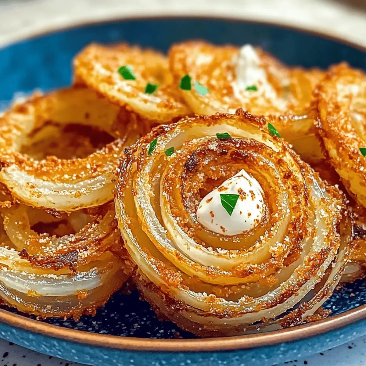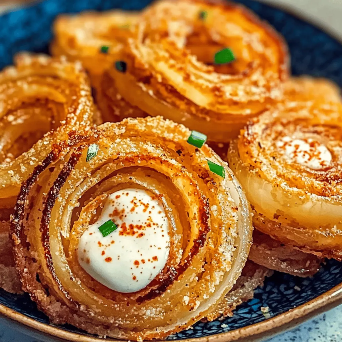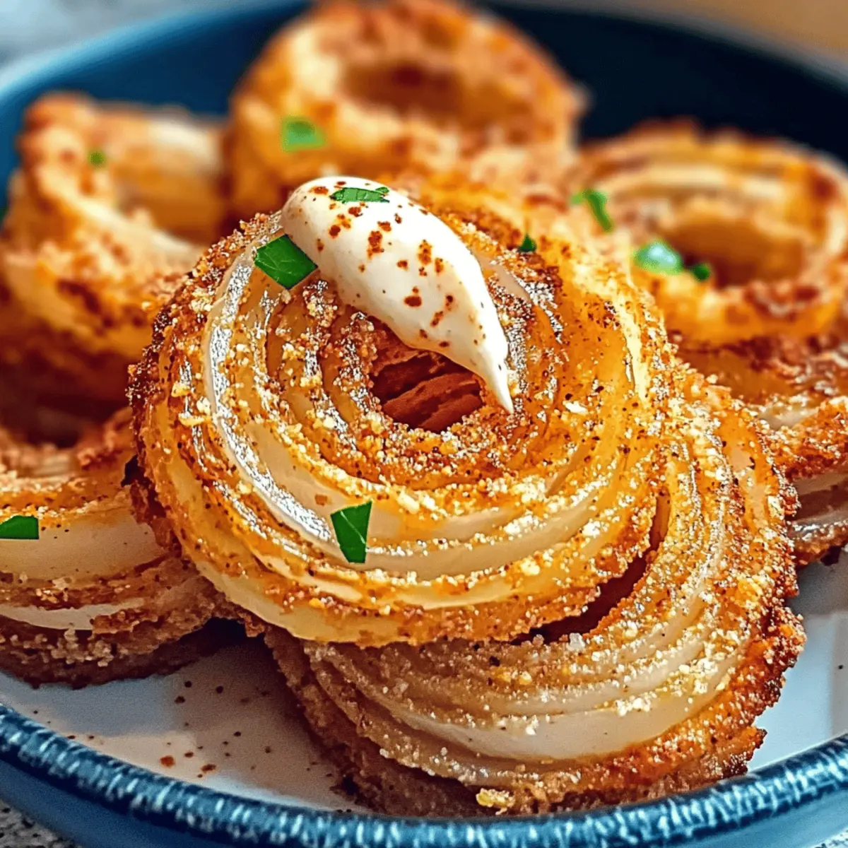 Jump to Recipe Print RecipeAs I was scrolling through my feed one evening, I stumbled upon a TikTok video showcasing a game-changing twist on a classic comfort food: crispy baked keto Parmesan onion rings. Intrigued, I couldn’t help but imagine the crunch of these delectable rings, beautifully golden and utterly satisfying. This mouthwatering recipe not only delivers that perfect crispy texture but is also low-carb and gluten-free, making it a guilt-free snack that’s sure to impress. With just a handful of ingredients and minimal prep time, you can whip up these irresistible onion rings in no time—ideal for sharing during game night or savored solo with your favorite dipping sauce. Are you ready to explore this crunchy delight that’s just a bake away? Why Are These Onion Rings a Must-Try? Crispy, Guilt-Free Snack: You won’t believe how satisfying these baked rings are without the extra calories! Quick & Easy: With minimal prep time, you can have these delicious rings ready in just 20 minutes. Versatile Addition: Pair them with a spicy dipping sauce or serve alongside a juicy burger for a delightful meal. Low-Carb Delight: Perfect for those on a keto diet, these Parmesan onion rings fit into your healthy lifestyle beautifully. If you love parmesan cheese, you may also enjoy other tasty dishes like Garlic Parmesan Chicken Skewers or Garlic Parmesan Pasta. Crowd-Pleasing Flavor: Impress your friends and family with a snack that’s sure to be a hit at any gathering! Parmesan Onion Rings Ingredients For the Onion Rings • White Onions – These are your base, so select medium-sized onions for the best thickness. • Shredded Parmesan Cheese – This cheese acts as the crispy coating; fresh shredded cheese creates the most delightful texture. • Salt – A little goes a long way to enhance the flavor of your Parmesan onion rings. • Garlic Powder – This adds a savory kick that complements the onions beautifully. • Paprika – A sprinkle introduces a subtle smokiness; smoked paprika works wonderfully here! • Optional Italian Seasoning – Toss this in for an herby twist that elevates the overall taste. Step‑by‑Step Instructions for Crispy Baked Keto Parmesan Onion Rings Step 1: Preheat Oven Start by preheating your oven to 400°F (200°C). While it heats up, line a baking sheet with parchment paper; this will help the cheesy coating get crispy without sticking. The parchment will also make cleanup a breeze! Step 2: Prepare Onions Peel and slice two medium white onions into ¼-inch thick rings, using a mandoline if available for uniformity. Uniform thickness ensures even cooking and a consistent crunch throughout your Parmesan onion rings. Set the rings aside once sliced. Step 3: Form Cheese Molds On the lined baking sheet, grab a tablespoon of shredded parmesan cheese and form it into a flat circle about 3 inches in diameter, leaving enough space between each. This cheese base will create a delightful crispy coating for each onion ring once baked. Step 4: Assemble Onion Rings Take each onion ring and gently place it on top of the cheese circle you formed. Next, sprinkle another tablespoon of shredded parmesan on top of each onion ring, covering it completely to help achieve that crunchy crown in your Parmesan onion rings. Step 5: Press and Season With a spoon, gently press down on each assembled onion ring to adhere the cheese to the onion. This step is key for getting that luscious, crispy texture. Sprinkle a generous amount of salt, garlic powder, and paprika over all rings to enhance their flavor and introduce warmth to the dish. Step 6: Bake Carefully place the baking sheet in your preheated oven and bake for 15-20 minutes. Keep a close eye during the last few minutes; you want the cheese to turn golden brown and crispy without burning. The aroma will tell you they’re almost ready! Step 7: Cool Once baked to perfection, remove the baking sheet from the oven and let the rings cool for about 10-15 minutes. This cooling period is essential for achieving maximum crunch, allowing the cheese to firm up while the rings cool on the sheet. Make Ahead Options These crispy baked keto Parmesan onion rings are ideal for meal prep enthusiasts looking to save time during busy weeknights! You can slice your onions and assemble the rings up to 24 hours in advance. To prepare ahead, simply layer the onion rings on the baking sheet as instructed, then cover tightly with plastic wrap or foil and refrigerate. This helps the flavors meld and the cheese adhere better. When you’re ready to bake, just preheat your oven and pop them in for 15-20 minutes. They’ll come out just as delicious, making it easy to enjoy a guilt-free snack with minimal effort! Variations & Substitutions for Parmesan Onion Rings Customize these crunchy wonders to suit your taste and dietary preferences! Spicy Twist: Add a pinch of chili flakes to the seasoning mix for an extra kick that complements the savory rings. Cheese Swap: Experiment with different cheeses such as sharp cheddar or creamy mozzarella for a unique flavor variation. Herbaceous Touch: Swap in fresh herbs like rosemary or thyme instead of Italian seasoning for a vibrant herbal finish. Cauliflower Alternative: For a low-carb twist, use slices of cauliflower instead of onions. They bake into surprisingly delicious bites! Gluten-Free Crunch: If you’re looking for a gluten-free option, simply ensure your cheese is certified gluten-free and keep the seasoning blend simple. Dipping Sauce Variety: Pair your onion rings with diverse dips! Consider ranch, yogurt-based dips, or a tangy buffalo sauce for a flavor explosion. Breading Options: Add ground almond or coconut flour to the parmesan for a thicker, crunchier coating, perfect for something heartier. Smoked Flavor: Try using smoked paprika instead of regular paprika for a delightful smoky undertone that enhances every bite. Whether you’re making these to share or to indulge solo, these variations