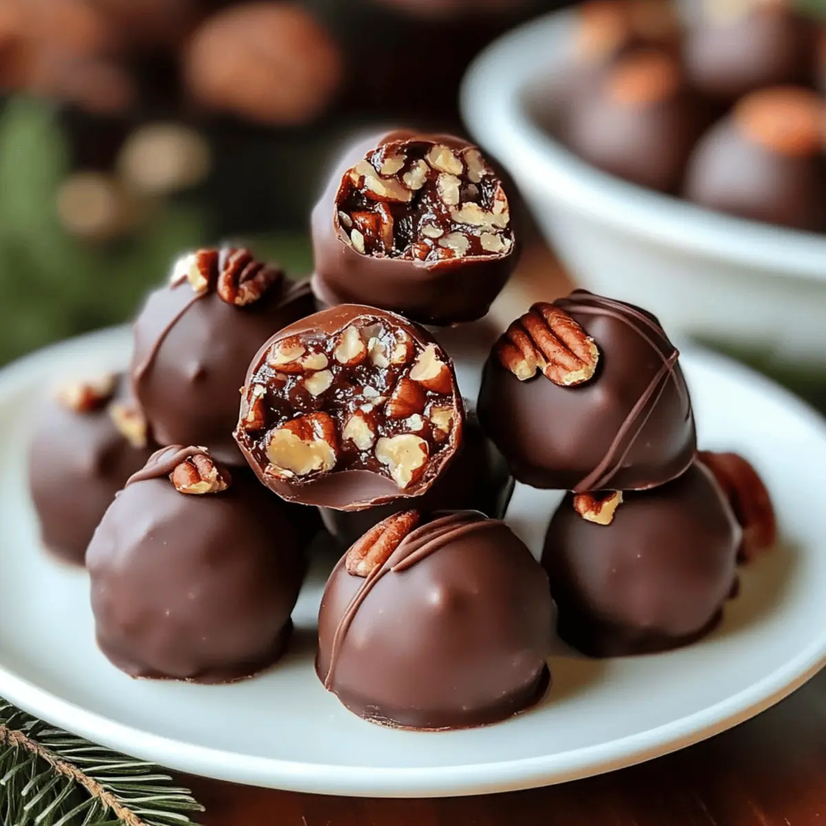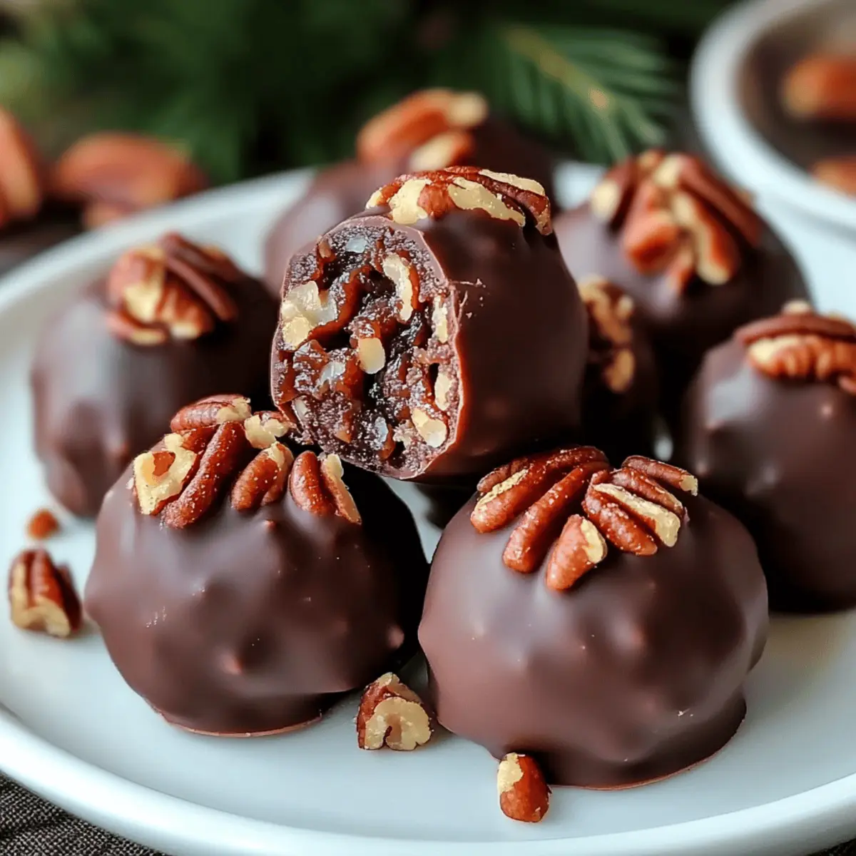 Indulge in Pecan Pie Balls, a delightful no-bake treat featuring a chewy texture, crunchy pecans, and rich chocolate, perfect for festive gatherings.
