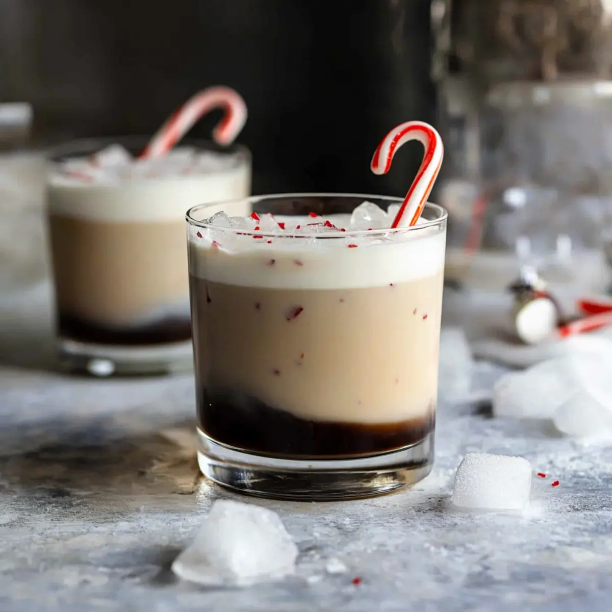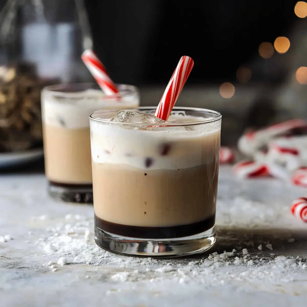 Enjoy a Peppermint White Russian Mocktail, a creamy and refreshing non-alcoholic drink that's perfect for holiday celebrations.