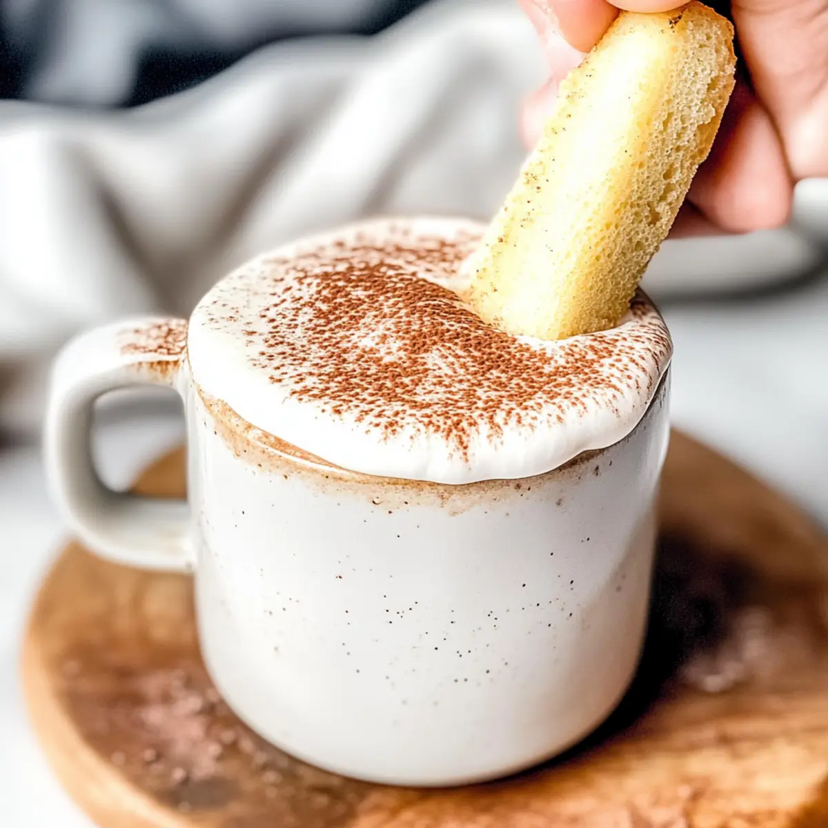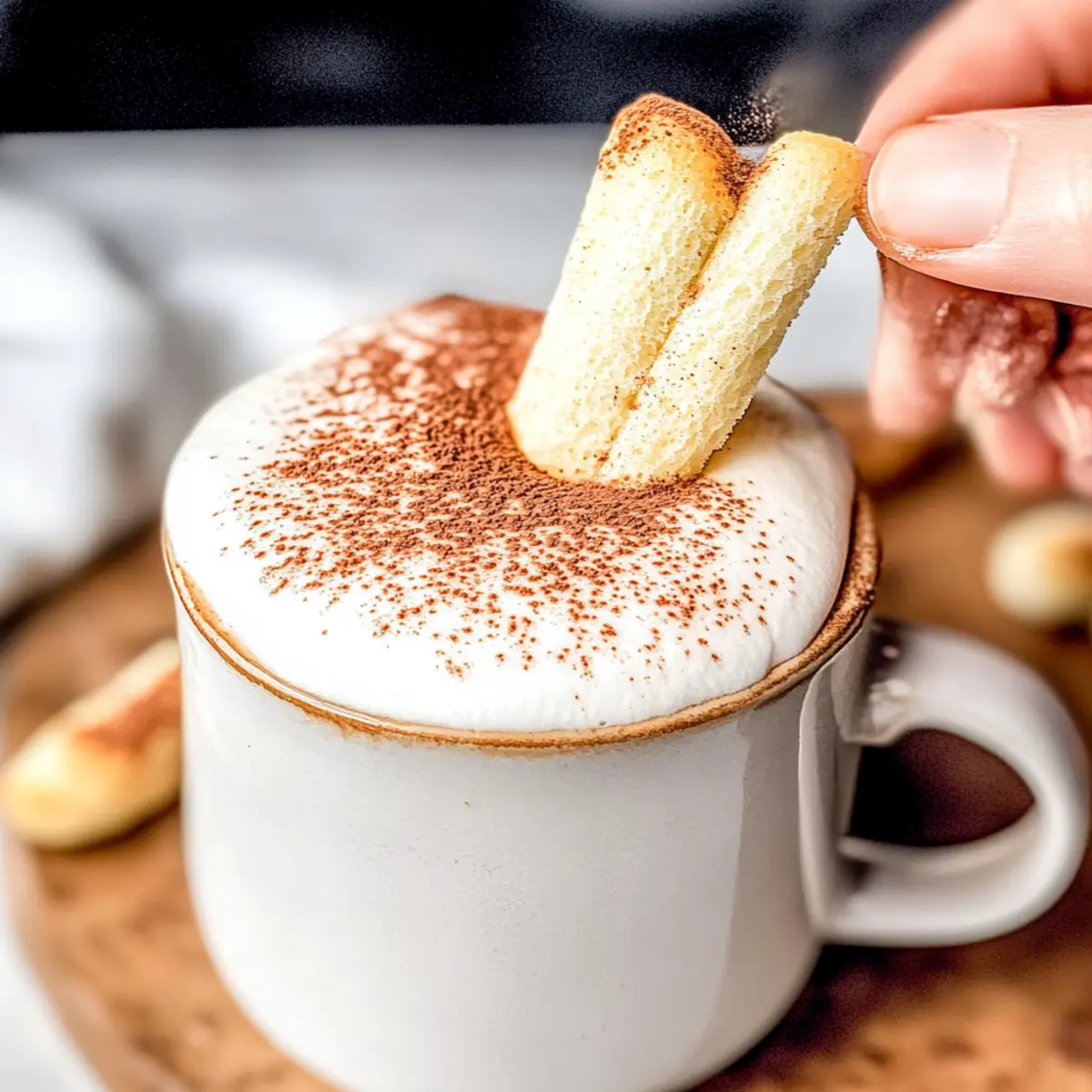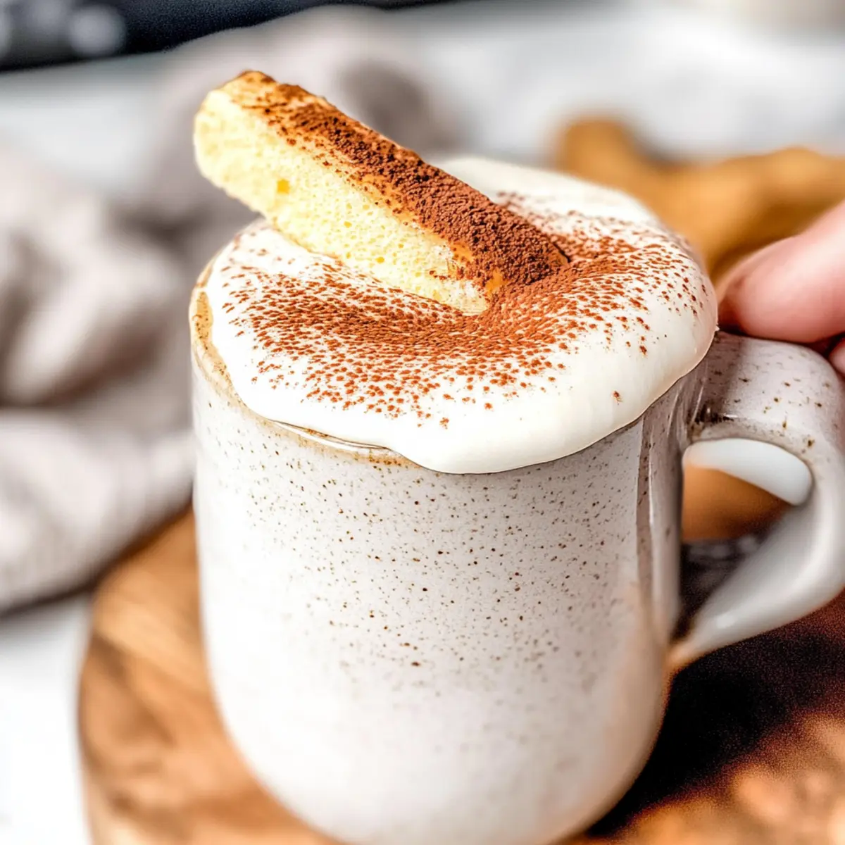 Jump to Recipe Print RecipeAs I stirred the rich espresso and watched it twirl into a swirl of velvety milk, anticipation bubbled within me. The creation of the Perfectly Creamy Tiramisu Latte was right around the corner! This delightful coffee and dessert mashup transforms your morning routine into a mini celebration, featuring just seven simple ingredients. Not only is it quick to prepare, but it also offers a luscious, indulgent twist on your everyday latte that’s bound to impress. Imagine a cozy afternoon with friends, each sip transporting you straight to an Italian café, complete with the delightful flavors of creamy mascarpone and a hint of cocoa. Are you ready to whisk your way to coffee heaven? Why is Tiramisu Latte a Must-Try? Indulgent Flavor: The rich combination of espresso and creamy mascarpone foam brings the classic tiramisu experience right to your cup. Quick Preparation: In just a few simple steps, you can whip up this delightful drink, making it perfect for busy mornings or an afternoon pick-me-up. Versatile Delight: Feel free to customize with different syrups or experiment with chilling it for a refreshing twist. Crowd-Pleaser: Serve it at your next brunch gathering, and watch as everyone falls in love with this decadent drink. Café Comfort at Home: With every sip, you’ll feel like you’ve just stepped into an Italian café, ready to indulge and savor the moment. For more delightful coffee treats, check out my Lemon Chicken Pasta or the luscious Tiramisu Cookies Melt! Perfectly Creamy Tiramisu Latte Ingredients For the Mascarpone Foam • Mascarpone Cheese – Adds that signature creaminess and richness; cream cheese works well as a substitute. • Heavy Cream – Provides stability and a luscious texture for the foam; consider using half-and-half for a lighter version. • Whole Milk – The base that brings everything together; any milk alternative can be used, though it may tweak the flavor. • Vanilla Syrup – Adds sweetness and depth; feel free to swap it with simple syrup or maple syrup if desired. For the Latte Base • Espresso or Freshly Brewed Coffee – The heart of your latte, infusing bold coffee flavor; instant coffee can save time but may alter the taste. • Unsweetened Cocoa Powder – Brings a rich chocolate essence; Dutch-processed cocoa offers a subtler flavor. • Rum Extract (optional) – Gives an extra layer of warmth; almond extract is a perfect substitute if you’re feeling adventurous. For Garnish • Lady Finger Cookie – A classic touch for visual appeal and added texture; biscuits can work in a pinch or you can simply omit it. This Perfectly Creamy Tiramisu Latte is not just a drink; it’s an experience that transports you to a charming café with every sip! Step‑by‑Step Instructions for Perfectly Creamy Tiramisu Latte Step 1: Prepare Mascarpone Foam Begin by softening 1 cup of mascarpone cheese in the microwave for about 10-15 seconds until it’s just warm and easier to mix. In a bowl, combine the mascarpone with 1 cup of heavy cream, ½ cup of whole milk, and 2 tablespoons of vanilla syrup. Using a milk frother or a whisk, froth the mixture until it’s light, fluffy, and holds soft peaks, about 2-3 minutes. Step 2: Make Latte Base In a saucepan, combine 1 cup of whole milk, 2 tablespoons of vanilla syrup, 1 tablespoon of unsweetened cocoa powder, and 1 teaspoon of optional rum extract. Heat over medium heat, whisking continuously until the mixture is warm and frothy, but avoid boiling it to prevent curdling, approximately 5 minutes. Once ready, remove from heat and set aside. Step 3: Brew Coffee Prepare 1-2 shots of espresso or ¾ cup of freshly brewed coffee in your favorite mug. Ensure that the coffee is hot enough to blend beautifully with the creamy milk mixture. The richness of the coffee will create the perfect base for your Perfectly Creamy Tiramisu Latte. Step 4: Assemble Latte Pour the warm chocolate milk mixture over the brewed coffee in your mug, letting it blend together. The combination of rich espresso and cocoa will create a delightful swirled effect that’s inviting and warm. Stir gently to mix flavors without losing the lovely layers developed in the drink. Step 5: Top and Serve Gently spoon the fluffy mascarpone foam over the latte, allowing it to float on top like a delicious cloud. For an extra touch, dust the foam with cocoa powder to enhance both flavor and visual appeal. If desired, add a lady finger cookie on the side for a traditional finish, completing your Perfectly Creamy Tiramisu Latte experience. How to Store and Freeze Perfectly Creamy Tiramisu Latte Fridge: Store any leftover Tiramisu Latte in an airtight container in the refrigerator for up to 2 days. Rewhip the mascarpone foam before serving to restore its delightful texture. Freezer: For longer storage, freeze the coffee base (without mascarpone foam) in an airtight container for up to 1 month. Thaw in the fridge overnight before reheating. Reheating: Gently reheat the latte base in a saucepan over low heat, avoiding boiling. Stir well before adding the mascarpone foam for a creamy finish. Foam Storage: The mascarpone foam can be made ahead and stored in the fridge for up to 2 days. Whip it lightly again to achieve the perfect texture before adding it to your latte. Expert Tips for Perfectly Creamy Tiramisu Latte • Frothing Technique: Ensure your mascarpone foam is properly frothed; use a milk frother for the best texture, creating a pillowy topping for your latte. • Temperature Matters: Heat the milk mixture gently and avoid boiling; boiling can cause curdling, ruining the smooth texture you want in your Perfectly Creamy Tiramisu Latte. • Flavor Customization: Don’t hesitate to experiment with flavored syrups like hazelnut or caramel; they can add a unique twist to your latte experience. • Coffee Quality: Use freshly brewed espresso or quality coffee to enhance the overall flavor. Instant coffee is convenient but may comp