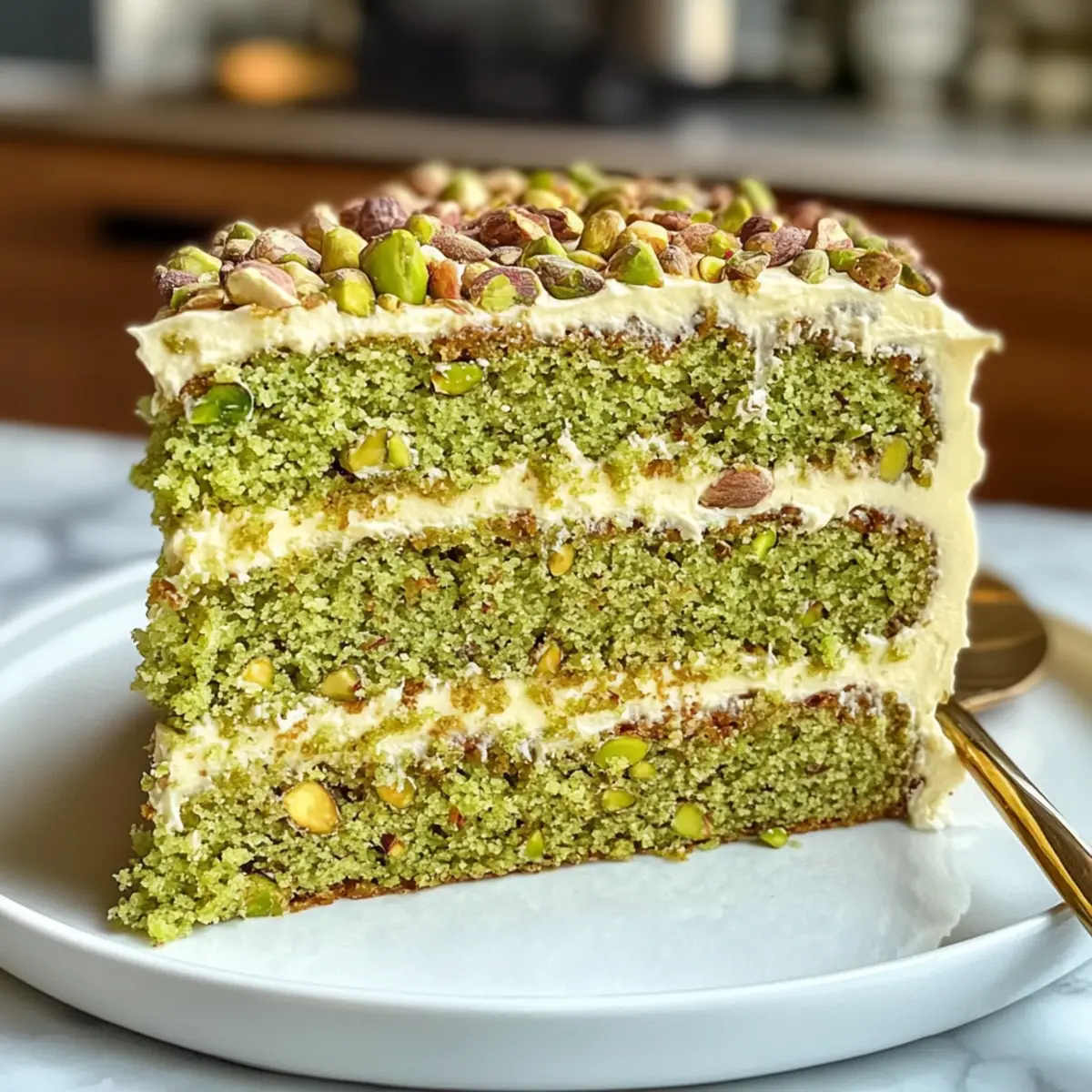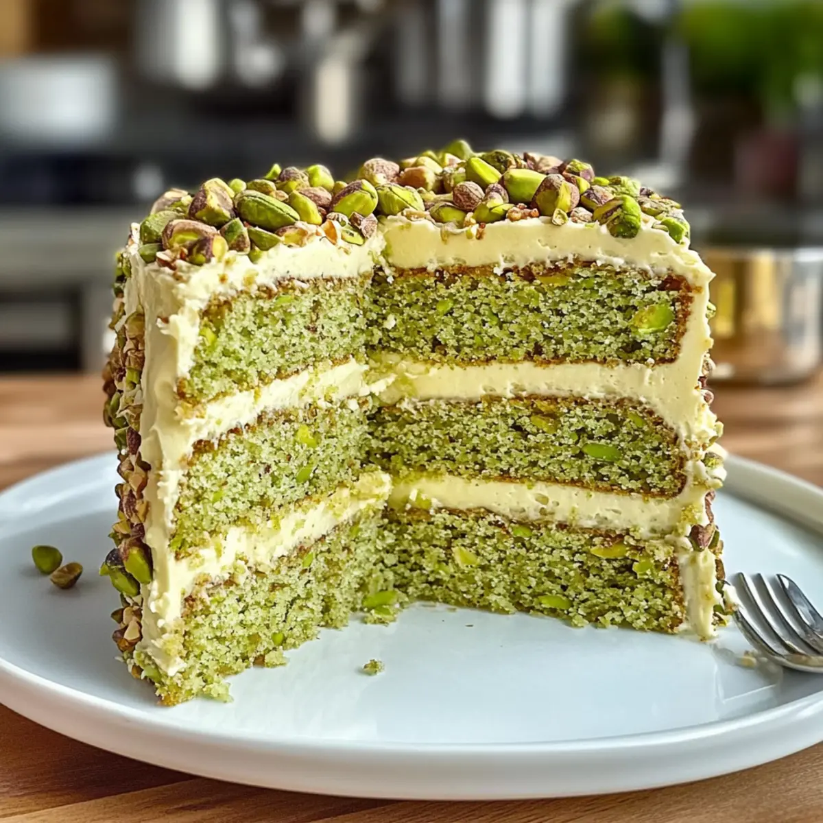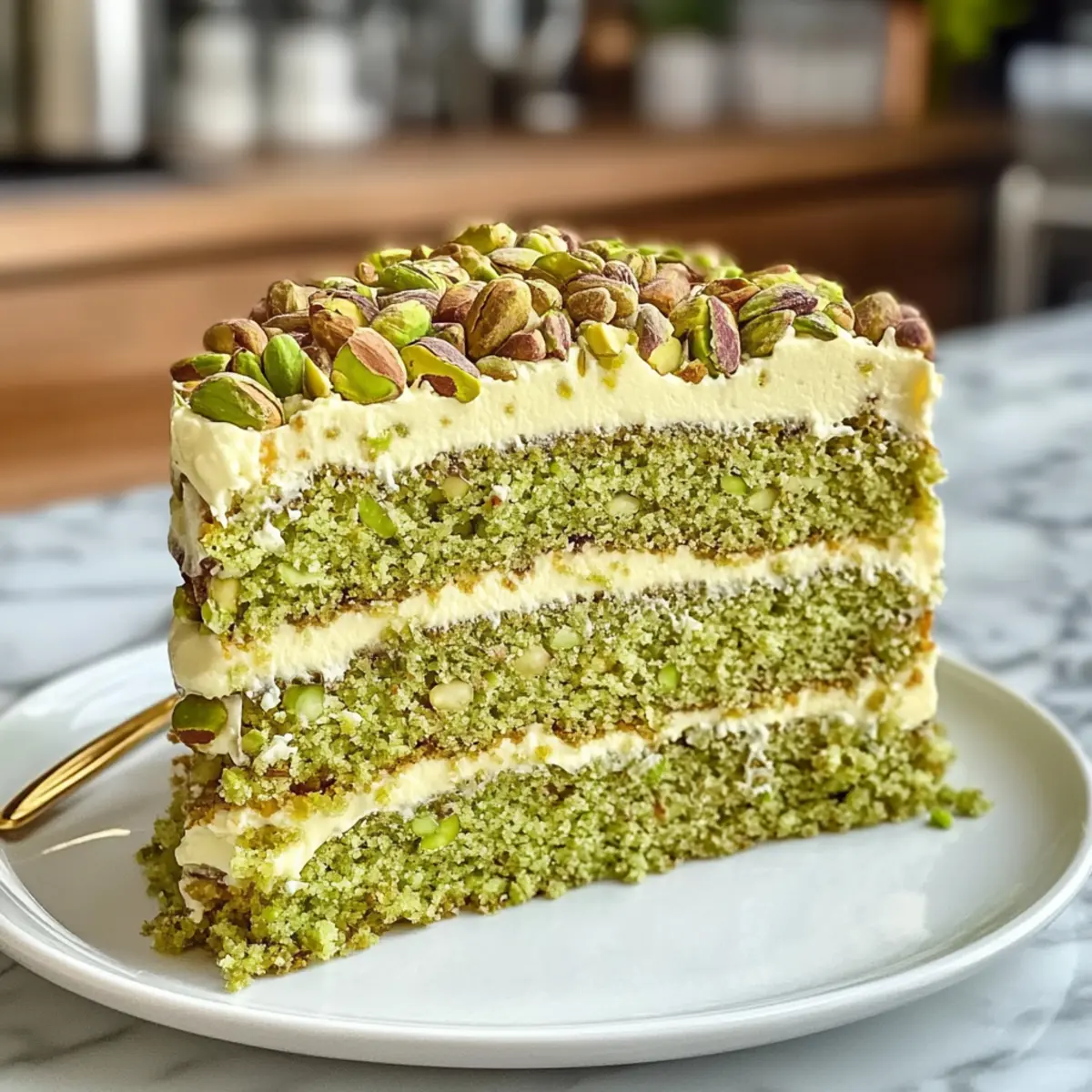 Jump to Recipe Print RecipeAs I sifted through my pantry, a handful of vibrant green pistachios caught my eye, igniting a spark of creativity. This led me to create the Pistachio Mascarpone Layer Cake, a stunning centerpiece that elevates any occasion into a festive celebration. With its rich, nutty sponge and a luxurious, creamy mascarpone frosting, this delightful dessert not only impresses visually but also delights the taste buds. What makes this cake truly special is its quick preparation and vegetarian-friendly ingredients, making it perfect for both novice bakers and seasoned chefs. Whether you’re looking to dazzle guests at a dinner party or surprise a loved one with a delicious homemade treat, this cake is sure to become a favorite in your baking repertoire. Ready to whip up this dreamy delight and create memorable moments? Let’s bake! Why is this cake a must-try? Deliciously Unique: The combination of pistachios and mascarpone creates a flavor profile that’s both nutty and creamy, setting it apart from ordinary cakes. Easy to Make: With straightforward steps, even beginner bakers can master this recipe without worry! Visually Stunning: The vibrant green layers and elegant frosting make it a centerpiece at any gathering, ensuring all eyes are on this cake. Versatile Pairings: Serve it with coffee, tea, or even sparkling wine for an indulgent experience. Celebratory Feel: Perfect for birthdays, anniversaries, or just because, it transforms any occasion into something special. Pistachio Mascarpone Layer Cake Ingredients For the Cake Pistachios – A key ingredient for moisture and nutty richness; substitute with almonds for a different flavor. All-purpose flour – Provides structure; use gluten-free flour for a gluten-free variation. Baking powder – Essential for leavening; ensure it’s fresh for best results. Salt – Enhances flavor; use kosher salt for a more robust taste. Unsalted butter – Adds richness and moisture; can substitute with margarine for a dairy-free option. Granulated sugar – Sweetens the cake and helps achieve a fluffy texture; coconut sugar can be used for a healthier alternative. Eggs – Binds ingredients and contributes moisture; use flax eggs for a vegan alternative. Whole milk – Contributes moisture; almond milk works as a non-dairy substitute. Vegetable oil – Adds moisture; any neutral oil will suffice. Vanilla extract – Adds flavor depth; almond extract can enhance the nutty profile. For the Frosting Heavy cream – Whipped into the frosting for a light texture; use coconut cream for a dairy-free version. Powdered sugar – Sweetens the mascarpone cream and stabilizes it; can be substituted with a stevia blend for a lower sugar option. Mascarpone cheese – The star ingredient for a creamy texture; substitute with cream cheese mixed with heavy cream if mascarpone isn’t available. For Decoration Chopped pistachios – Adds a delightful crunch and visual appeal; consider using chopped walnuts or almonds for variety. Embrace the deliciousness of this Pistachio Mascarpone Layer Cake and watch it become the star of your celebrations! Step‑by‑Step Instructions for Pistachio Mascarpone Layer Cake Step 1: Prep Pistachios Begin by preheating your oven to 175°C (350°F). In a food processor, pulse shelled pistachios until finely ground, resembling a coarse flour. This will enhance the nutty flavor of your Pistachio Mascarpone Layer Cake. Make sure to measure after grinding for the best consistency in your batter. Step 2: Mix Dry Ingredients In a large mixing bowl, combine the ground pistachios, all-purpose flour, baking powder, and salt. Whisk them together until well integrated; this ensures an even distribution of flavor. Set this dry mixture aside while you work on the wet ingredients, allowing the flavors to meld. Step 3: Cream Butter and Sugar Using a stand mixer or hand mixer, beat together softened unsalted butter and granulated sugar in another bowl for about 3 minutes until the mixture is light and fluffy. This creaming process is crucial for creating an airy texture in your cake layers, which will elevate the overall mouthfeel of your Pistachio Mascarpone Layer Cake. Step 4: Add Eggs and Liquid Ingredients Incorporate the eggs into your creamed mixture one at a time, mixing well after each addition to ensure a smooth batter. Then, gently stir in the whole milk, vegetable oil, and vanilla extract until just combined. This will add moisture and richness to your cake, creating a delicious foundation for your layers. Step 5: Combine Mixtures Carefully fold the dry ingredient mixture into the wet ingredients using a spatula. Be gentle to prevent overmixing, which can toughen the cake. When just combined, the batter will be thick and slightly lumpy, ready for the baking process that transforms it into the delightfully moist Pistachio Mascarpone Layer Cake you desire. Step 6: Bake Cake Layers Grease three 8-inch round cake pans and evenly distribute the batter among them. Place the pans in the preheated oven and bake for 22-25 minutes, or until a toothpick inserted in the center comes out clean. Once baked, transfer the pans to a wire rack and let the layers cool completely before frosting. Step 7: Make Frosting In a chilled mixing bowl, whip the heavy cream until soft peaks form, which should take about 3 minutes. Gradually add in the mascarpone cheese, powdered sugar, and a splash of vanilla extract. Beat the mixture until it is smooth and thick; this creamy frosting will beautifully layer your cake and complement the pistachio flavor. Step 8: Assemble Cake Once the cake layers are completely cooled, place one layer on a serving plate. Spread a generous amount of the mascarpone cream on top, then add the second layer and repeat. Finish with the third layer, then frost the top and sides of the cake with the remaining mascarpone cream, ensuring a luxurious finish for your Pistachio Mascarpone Layer Cake. Step 9: Decorate To add an ele
