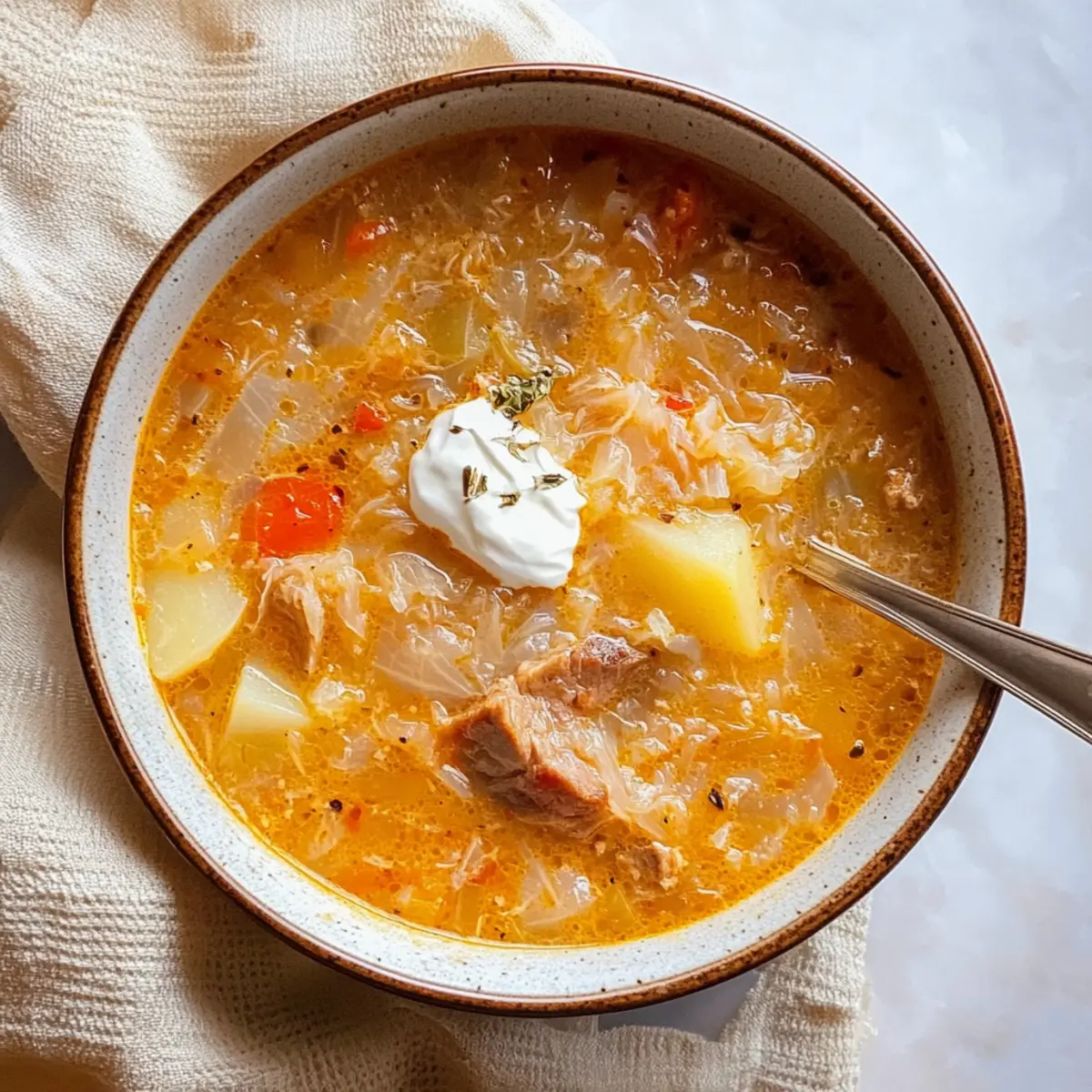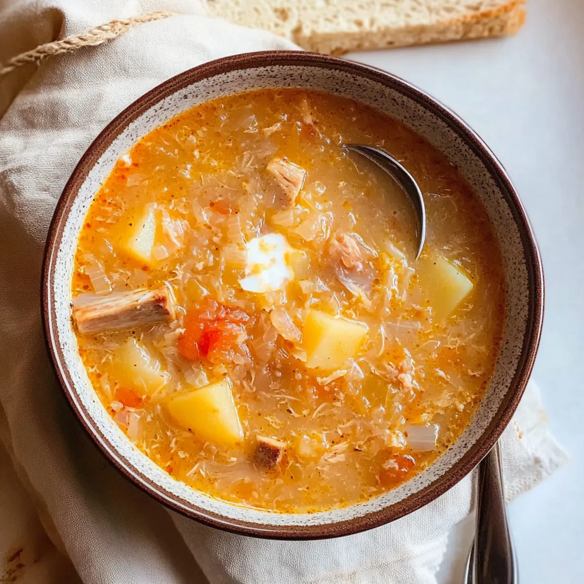 As the chilly winds of autumn sweep in, my kitchen transforms into a haven of warmth and nostalgia, especially when I whip up a pot of Authentic Polish Sauerkraut Soup, or Kapusniak. This hearty comfort food brings together tender pork ribs in a rich, tangy broth, perfectly paired with fluffy potatoes. Each bowl is not only a delicious journey through traditional Polish cuisine but also a quick and satisfying meal that can easily be customized with chicken if you prefer a lighter touch. With just a handful of wholesome ingredients, this recipe is not only gluten-free but also an effortless way to impress a crowd or indulge in cozy family dinners. Are you ready to bring this delightful taste of Poland into your home?