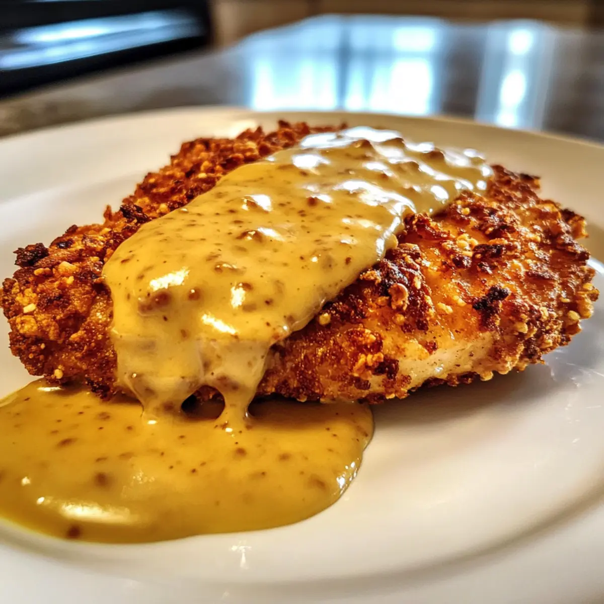 Reheating: Reheat chicken in the oven at 350°F (175°C) for about 10–15 minutes to restore its crunchiness. The mustard-cheddar sauce can be warmed in the microwave with a splash of milk for a creamy consistency.