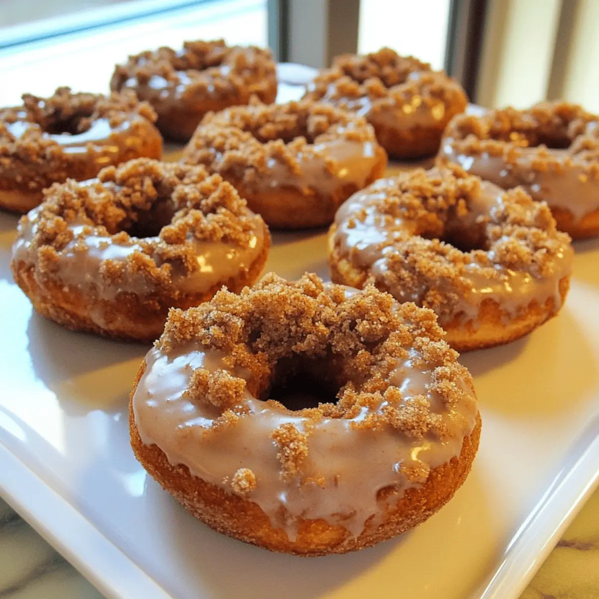 • Crumb Topping Texture: Don’t over-mix the crumb topping. You want a sandy consistency that clumps together nicely, giving a delightful crunch to your donuts.