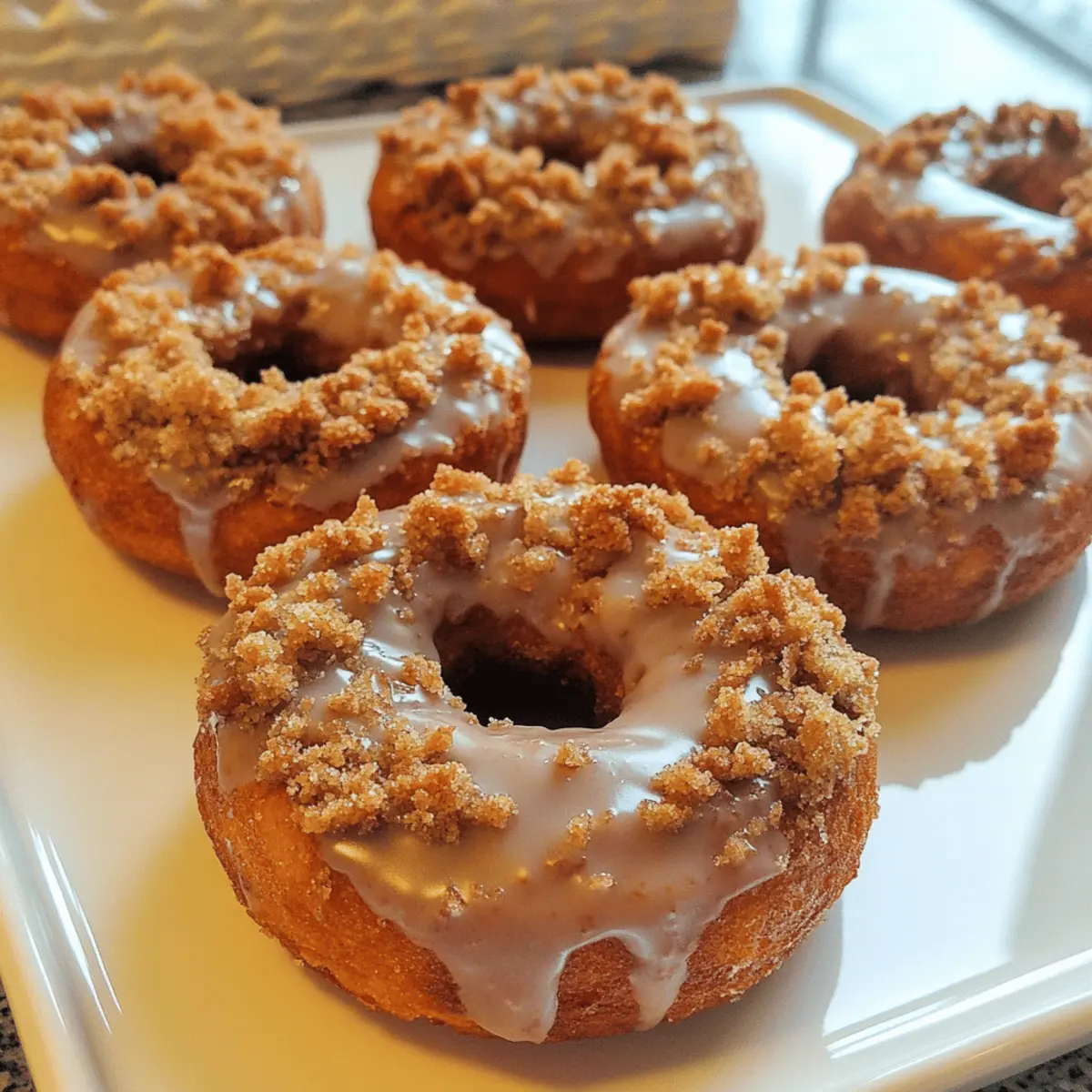 Indulge in these Pumpkin Glazed Donuts with Crumb Topping, a delightful fall treat capturing cozy flavors.