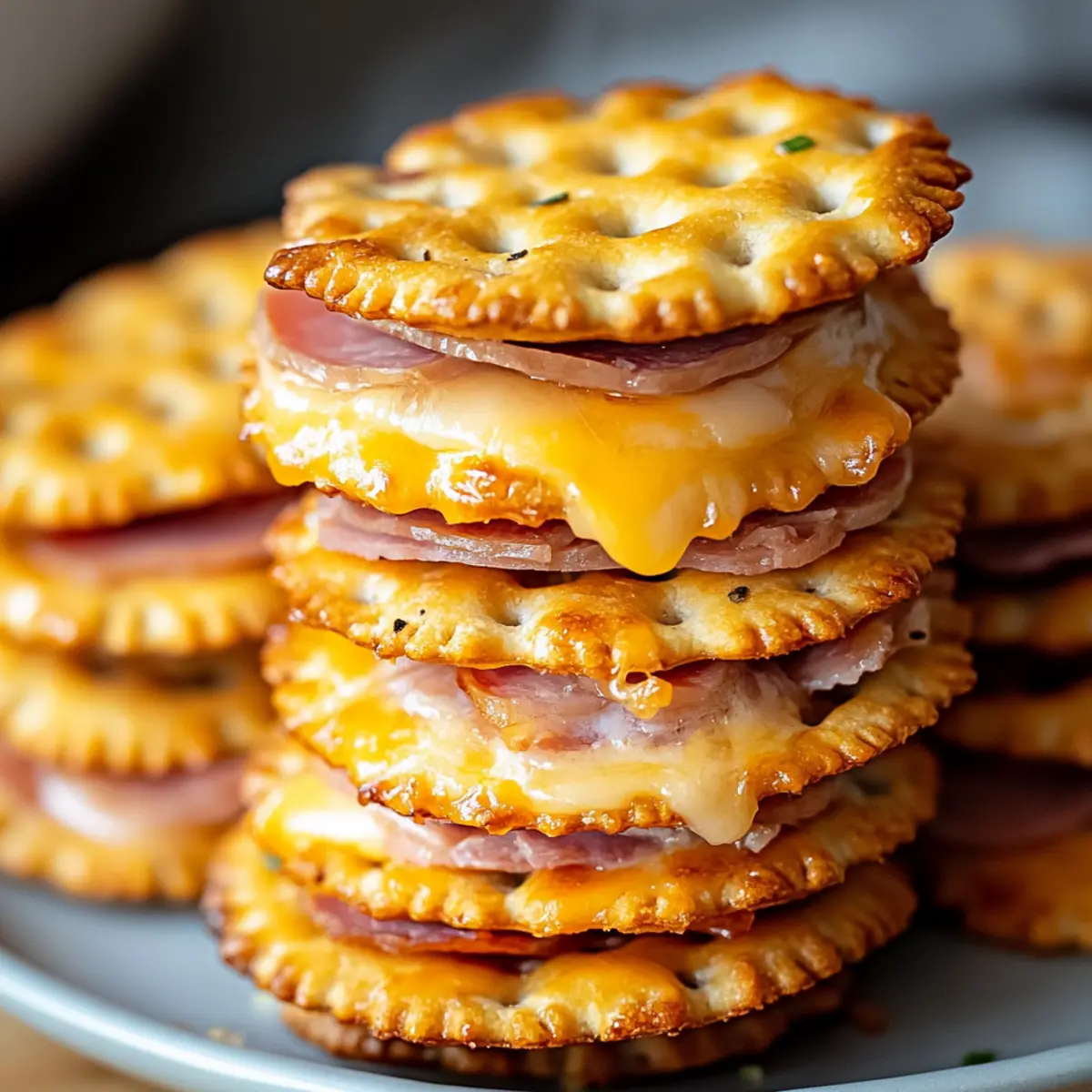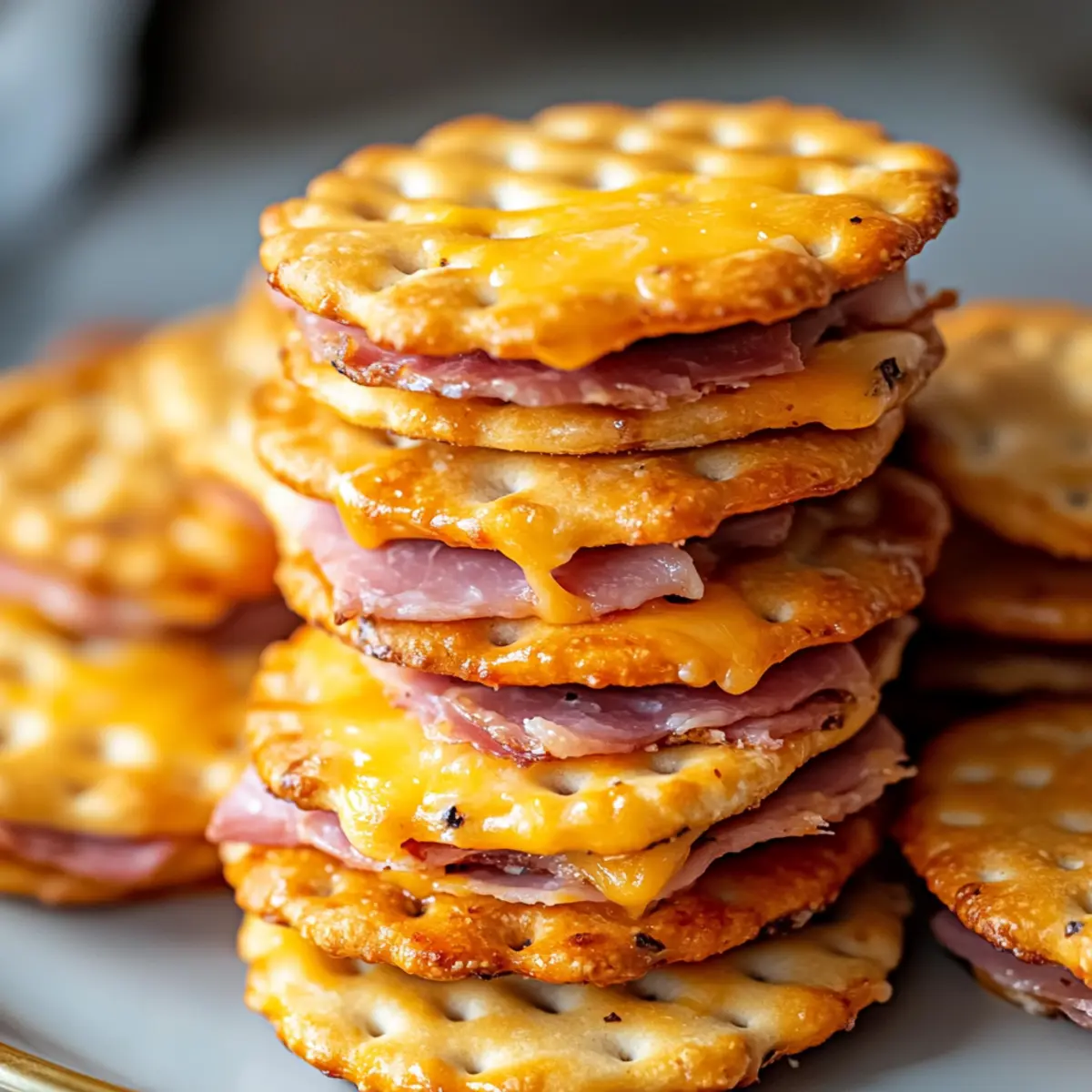 Carefully place the baking sheet in the preheated oven and bake for 8–10 minutes. Keep a close eye on the sandwiches; you’re looking for the cheese to melt and the crackers to turn a lovely golden color. This process will bring all the flavors together, creating an irresistible crunch that’s hard to resist!