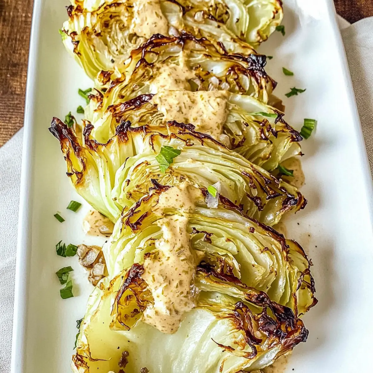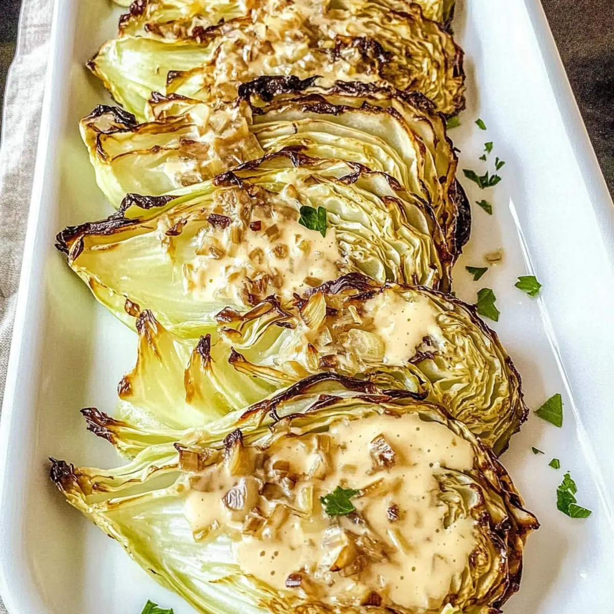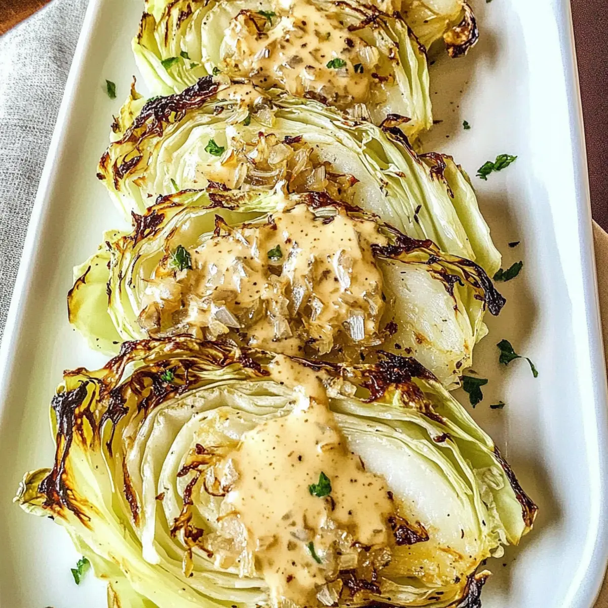Jump to Recipe Print RecipeAs I sliced through the crisp green leaves of cabbage, I couldn’t help but feel like I was unearthing a hidden treasure. This Easy Roasted Cabbage with Amazing Onion Dijon Sauce elevates a simple vegetable into a gourmet experience. With its smoky, caramelized edges and a tender heart, this dish not only dazzles the palate but also delights those who might typically shy away from cabbage. Ready in under 30 minutes, it’s perfect for busy weeknight dinners or when you want to impress your friends at the next dinner party. Plus, it’s gluten-free and vegetarian, making it a versatile side dish that everyone at the table can enjoy. Are you curious to discover how a few simple ingredients can transform your cooking routine? Let’s dive in! Why Try Roasted Cabbage Today? Simplicity at Its Best: This roasted cabbage dish comes together in under 30 minutes, making it an ideal choice for busy weeknights or last-minute gatherings. Flavor Explosion: The rich onion-Dijon sauce transforms ordinary cabbage into a gourmet delight that will dazzle your taste buds. Healthy & Wholesome: Packed with vitamins C, A, and K, this gluten-free, vegetarian recipe ensures you can maintain a balanced diet without sacrificing taste. Crowd-Pleasing Side: Whether paired with roasted chicken, sausages, or enjoyed as a standalone dish, this cabbage is sure to impress everyone at the table. Versatile & Customizable: Experiment with different flavor variations, like adding cauliflower or herbs, to keep your meals exciting. Try it alongside a robust dish like Cajun Pasta with Sausage for a deliciously unique combination! Roasted Cabbage with Amazing Onion Dijon Sauce Ingredients For the Cabbage • Cabbage – Use a medium green cabbage (1½ pounds) as the hearty base of this roasted dish to achieve that ideal texture. • Olive Oil – Provides fat for roasting; consider garlic-infused olive oil for a flavorful twist. • Salt and Pepper – Essential seasonings; adjust quantities to suit your taste preferences. For the Amazing Onion Dijon Sauce • Butter or Margarine – Adds a rich creaminess; for a dairy-free option, margarine works perfectly. • Minced Onion or Shallot – Adds savory depth to the sauce; green onions can also be used, setting aside the green parts for garnish. • Dijon Mustard – Offers the perfect tang to elevate the flavors of this roasted cabbage with amazing onion Dijon sauce—adjust to taste! • Minced Garlic – Imparts aromatic flavor; dried garlic can be substituted if necessary. For Garnish • Chives or Parsley – Optional garnishes for a fresh final touch that brightens the dish. Feel free to explore the variations suggested to customize your roasted cabbage experience! Step‑by‑Step Instructions for Roasted Cabbage with Amazing Onion Dijon Sauce Step 1: Preheat the Oven Begin by preheating your oven to 450°F (232°C). While the oven is heating, prepare a baking sheet by lining it with parchment paper. This will ensure the cabbage doesn’t stick and will help achieve beautifully roasted edges that are essential for this Roasted Cabbage with Amazing Onion Dijon Sauce. Step 2: Prepare the Cabbage Next, take your medium green cabbage and slice it into wedges, about 4-5 per half, depending on size. Brush the cut sides generously with olive oil, then sprinkle with salt and pepper. This seasoning will enhance the flavors and help achieve that crispy surface while roasting. Step 3: Roast the Cabbage Place the cabbage wedges cut side down on the prepared baking sheet. Roast them in the preheated oven for 10-12 minutes, watching for the edges to start turning dark brown and crispy. After that, carefully flip the wedges and roast for an additional 8-10 minutes until they are tender and well caramelized, providing the perfect base for our sauce. Step 4: Make the Onion Dijon Sauce While the cabbage is roasting, grab a small saucepan and combine butter, minced onion, Dijon mustard, minced garlic, and a pinch of salt and pepper over medium heat. Stir gently until the butter has melted and the mixture is smooth. Keep this luscious sauce warm, as it will soon be drizzled over your roasted cabbage. Step 5: Serve and Garnish Once the cabbage is perfectly roasted, transfer the wedges to a serving platter. Generously drizzle the warm Onion Dijon sauce over the cabbage. For an eye-catching finish, sprinkle chopped chives or parsley on top. This not only adds a fresh burst of color but also enhances the flavors of your Roasted Cabbage with Amazing Onion Dijon Sauce. How to Store and Freeze Roasted Cabbage Fridge: Store leftover roasted cabbage in an airtight container for up to 3 days to maintain its delicious flavors and texture. Freezer: Freeze the roasted cabbage in a single layer on a baking sheet before transferring to an airtight container or freezer bag. It can be stored for up to 2 months. Reheating: To reheat, place the roasted cabbage in a preheated oven at 350°F (175°C) until heated through. This will help crisp up the edges again, enhancing the experience of the roasted cabbage with amazing onion Dijon sauce. Make-Ahead Tips: If you prepare the onion Dijon sauce in advance, store it separately in the fridge for up to a week. Just warm it up when you’re ready to serve! Expert Tips for Roasted Cabbage Crispy Edges Essential: Ensure the cabbage wedges are cut evenly for uniform cooking; crispy edges are where the flavor truly shines. Flavor Variations: Don’t hesitate to get creative! Try adding different herbs like thyme or dill for unique flavors in your roasted cabbage with amazing onion Dijon sauce. Sauce Emulsification: If the sauce separates while warming, whisk it vigorously before drizzling over the cabbage to restore that creamy blend. Double Up on Sauce: Love extra flavor? Consider doubling the onion-Dijon sauce recipe if you enjoy a generous drizzle on your roasted veggies. Watch Your Roast Time: Keep an eye on the cabbage while roasting. Depe