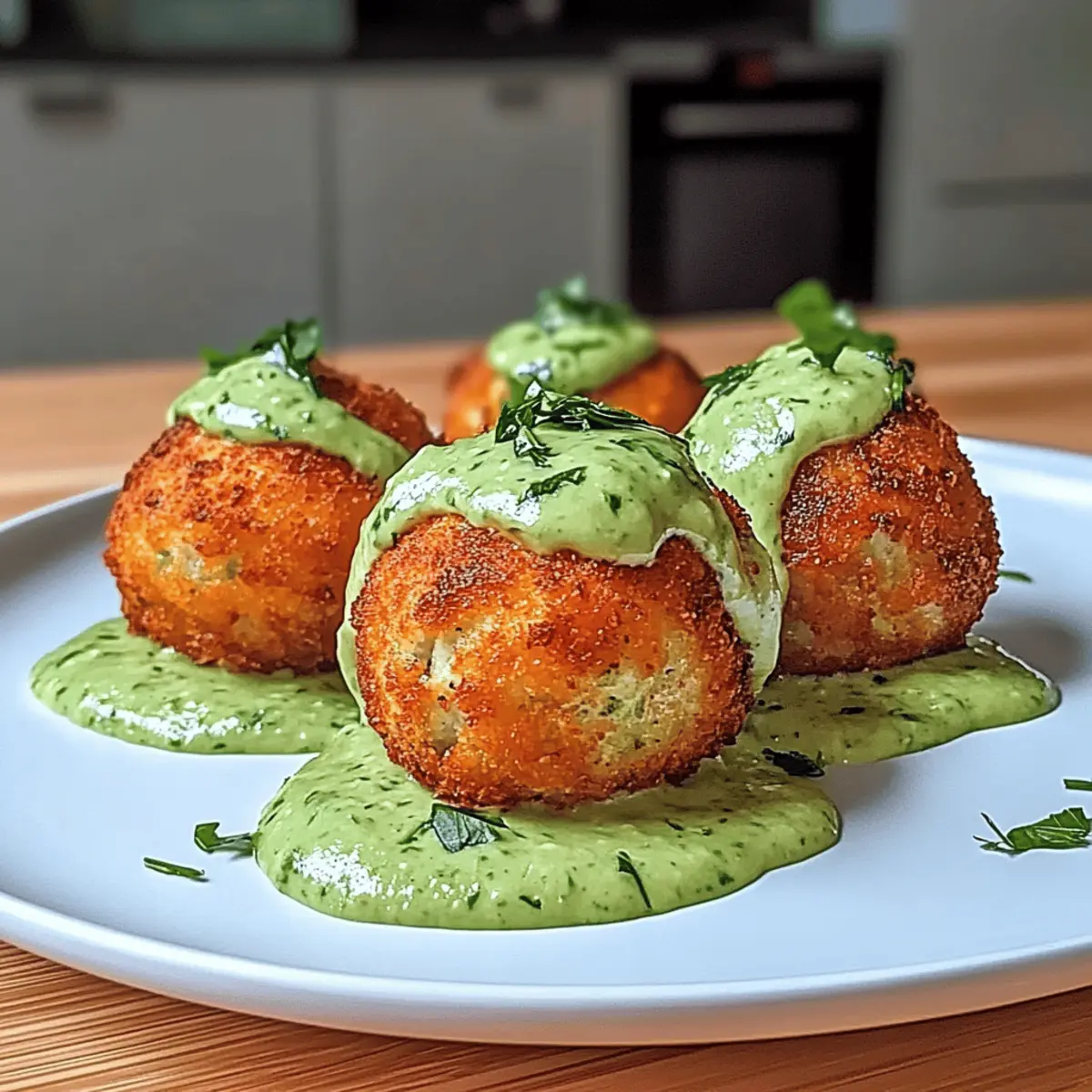 Jump to Recipe Print RecipeAs the savory aroma of baking seafood wafts through my kitchen, my mind drifts to those cozy gatherings with friends where delicious bites are a must. Today, I’m thrilled to share my recipe for Crispy Salmon Balls with Creamy Avocado Sauce—a dish that seamlessly blends flavor and nutrition in every delightful bite. These easy-to-make salmon balls are not just high in protein, but they also offer a gluten-free option for those looking to switch things up. Plus, whether you prefer fresh salmon or canned for a quick fix, the variations allow for endless possibilities. So, who’s ready to add a bit of zest to your meal prep? Let’s dive into this irresistible recipe! Why are Salmon Balls a Must-Try? Irresistible Flavor: These salmon balls are not just a snack; they’re a flavor explosion with perfectly seasoned, tender salmon and a creamy avocado dip that takes them over the top. Quick Prep: Using simple, wholesome ingredients, you can whip these up in no time, allowing you to enjoy homemade goodness without the hassle. Versatile Delight: Serve them as a main dish or appetizer, and don’t hesitate to pair them with fresh veggies or a light salad for a wholesome meal. Healthy Options: With high-protein and gluten-free variations available, these bites cater to all dietary preferences, making meal planning easy and nutritious. You can also explore more delicious ideas like Steak Tacos Avocado for an exciting twist on your menu. Crowd-Pleaser: These crispy treats are not only loved by health-conscious eaters but will also have everyone raving at gatherings or family dinners, proving that homemade can be both delicious and delightful! Salmon Balls with Creamy Avocado Sauce Ingredients For the Salmon Balls Fresh Salmon – This serves as the main protein source; wild-caught is preferred for a richer flavor. Breadcrumbs – Binds the mixture and provides a delightful crunch; choose plain or seasoned as you like. Egg – Acts as a binding agent to hold those delicious salmon balls together. Fresh Herbs (Dill or Parsley) – Adds a fragrant touch and enhances overall flavor; don’t be shy with the herbs! Lemon Juice – Brings acidity and brightness to the recipe, perfectly elevating the flavors. For the Creamy Avocado Sauce Avocado – The star ingredient for an irresistibly smooth sauce; ripe avocados will yield the best results. Greek Yogurt – Provides creaminess and a slight tang without overwhelming heaviness; it’s a lighter alternative to sour cream. Garlic Powder – Intensifies the flavor profile; substitute with fresh garlic if you prefer a more robust taste. Salt and Pepper – Essential for seasoning; adjust according to your taste for the best experience. These Salmon Balls with Creamy Avocado Sauce will become your go-to recipe for delightful bites that everyone loves! Step‑by‑Step Instructions for Salmon Balls with Creamy Avocado Sauce Step 1: Preheat the Oven Begin by preheating your oven to 375°F (190°C). This step is essential for ensuring that your salmon balls cook evenly and achieve that lovely golden-brown exterior. While the oven heats, gather your ingredients so you’re ready to create these delightful salmon balls with creamy avocado sauce. Step 2: Prepare the Salmon Take your fresh salmon and place it in a mixing bowl. Using a fork, gently flake the salmon into small, bite-sized pieces. You want to ensure there are no large chunks remaining, as this will help the salmon balls hold together nicely when you mix in the other ingredients. Step 3: Combine the Mixture To the bowl with flaked salmon, add breadcrumbs, an egg, and your choice of fresh herbs like dill or parsley. Squeeze in some lemon juice for brightness, and sprinkle in garlic powder, salt, and pepper to enhance the flavors. Mix everything together until well combined, but be cautious not to overmix, as this could make the salmon balls tough. Step 4: Shape the Balls Using your hands or a cookie scoop, form the mixture into 1-inch balls. Arrange them on a parchment-lined baking sheet, giving each ball some space to cook evenly. The visual texture should be slightly lumpy but easily hold its shape. This step is crucial for achieving both a crispy exterior and a tender interior in your salmon balls. Step 5: Bake the Salmon Balls Place the baking sheet in the preheated oven and bake the salmon balls for 20 to 25 minutes. You’ll know they are ready when they turn a beautiful golden brown and are firm to the touch. Keep an eye on them to ensure they cook perfectly and develop a nice crispy finish on the outside. Step 6: Make the Creamy Avocado Sauce While the salmon balls are baking, prepare the creamy avocado sauce. In a blender, combine ripe avocado, Greek yogurt, a splash of lemon juice, and a pinch of salt and pepper. Blend until smooth and creamy, scraping down the sides as needed. The sauce should be velvety, creating a perfect complement to your salmon balls. Step 7: Serve and Enjoy Once the salmon balls are out of the oven and slightly cooled, serve them warm alongside the creamy avocado sauce for dipping. Feel free to arrange them on a beautiful platter to impress your guests. These salmon balls with creamy avocado sauce are sure to be a hit, whether enjoyed as an appetizer or a main dish! What to Serve with Salmon Balls with Creamy Avocado Sauce Elevate your dining experience by pairing these delightful bites with complementary sides that will tantalize your taste buds. Crispy Green Salad: A fresh salad with crisp greens and a tangy vinaigrette offers a palate-cleansing contrast to the rich salmon balls and creamy sauce. Roasted Vegetables: Sweet and caramelized vegetables like carrots and bell peppers bring hearty, earthy flavors that beautifully enhance the lightness of the salmon balls. Quinoa Pilaf: This nutty, fluffy side dish adds a delightful texture and is packed with nutrients, making it a wholesome addition to your meal. Garlic Herb Rice: Fragrant garlic