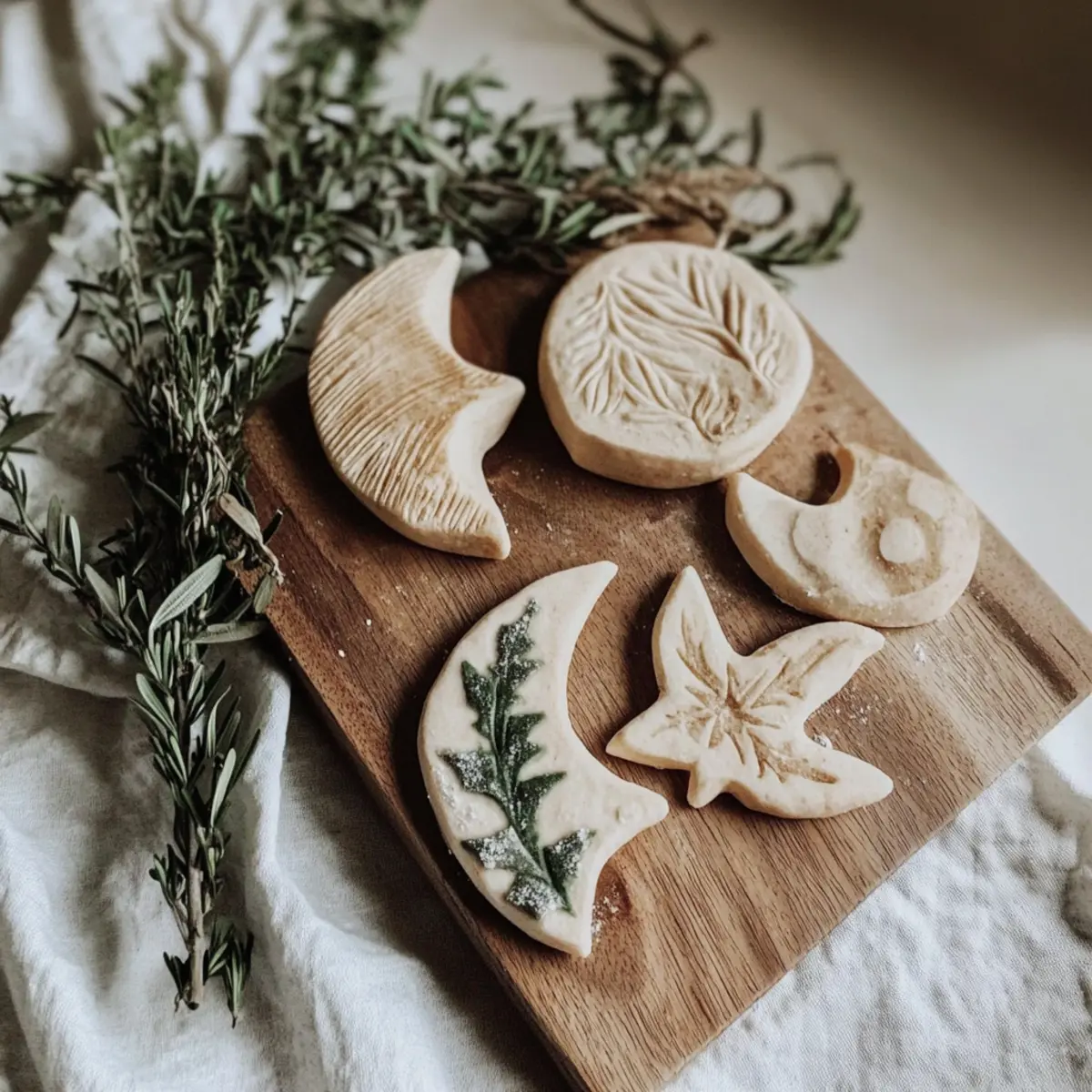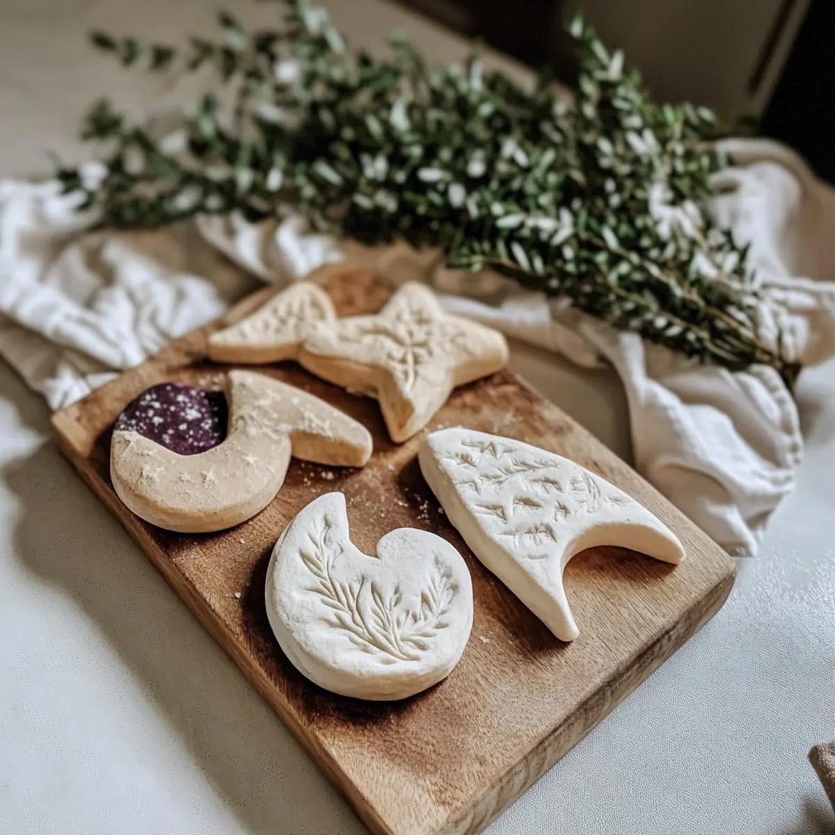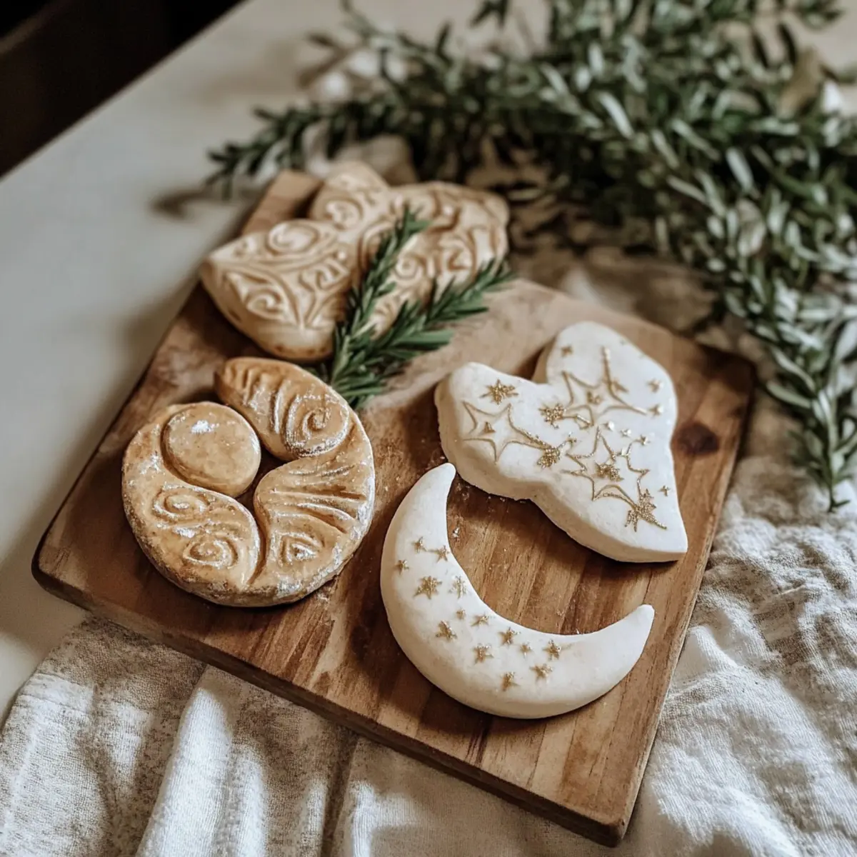 Jump to Recipe Print RecipeEvery winter, as the chill sets in and the days grow shorter, I find a delight in getting my hands busy with something truly special—crafting Salt Dough Ornaments. This season, I invite you to join me in this comforting tradition, where simple pantry staples transform into rustic decorations that resonate with the essence of the Winter Solstice. Not only is this project a creative outlet, but it also offers a meaningful way to commemorate the return of light. Plus, it’s a wonderful opportunity to indulge your creativity without breaking the bank! Whether you’re a seasoned crafter or just trying it out for the first time, these ornaments can be personalized with various shapes and colors to reflect your unique spirit. So, are you ready to embrace this joyful crafting experience together? Why Make Salt Dough Ornaments? Endless Creativity: Transform simple ingredients into unique holiday treasures that can be customized for your style. Inexpensive Fun: Using pantry staples means this craft is budget-friendly while providing hours of enjoyment, perfect for families or solo crafters alike. Meaningful Gifts: Create heartfelt ornaments to share with loved ones, adding a personal touch to holiday giving. Seasonal Tradition: Engage in a rewarding ritual that connects you to the Winter Solstice and the themes of light and renewal. Each ornament can tell a story, making your crafting efforts even more special. Simple Techniques: With just a few easy steps, you’ll create impressive results, making this project approachable for all skill levels, just like our other festive DIY projects. Fun for Everyone: From kids to adults, this activity fosters creativity for all ages—set aside an afternoon for some quality family time! Salt Dough Ornaments Ingredients For the Dough • All-Purpose Flour – Provides structure for the dough; use whole wheat for a rustic twist. • Table Salt – Enhances preservation and adds texture; sea salt works too. • Warm Water – Binds the mixture; warm—not hot—water ensures a smooth consistency. For Optional Decorations • Non-Toxic Acrylic Paints – Ideal for bringing your Salt Dough Ornaments to life with vibrant colors. • Natural Herbs or Textures – Press them into the dough for unique, organic designs. • Varnish – Seal your finished ornaments to protect and preserve their beauty. Step‑by‑Step Instructions for Simple Salt Dough Ornaments Step 1: Mix Dry Ingredients In a large mixing bowl, combine 2 cups of all-purpose flour and 1 cup of table salt. Stir these dry ingredients together with a whisk or a fork until they are evenly blended. This will ensure that your Salt Dough Ornaments have a consistent texture, so take a moment to mix well before adding any wet ingredients. Step 2: Add Water Gradually Slowly pour in 3/4 cup of warm water into the dry mixture while continuously stirring. This gradual addition will help to prevent clumping and will allow the flour and salt to absorb the water evenly. As you mix, you should see the dough begin to form, becoming sticky yet malleable, so keep stirring until no dry bits remain. Step 3: Knead the Dough Once the dough forms, transfer it to a floured surface. Begin kneading the dough by pushing it down with your palm and folding it over itself. Knead for about 5 to 8 minutes, or until the dough is smooth and elastic. Avoid adding too much flour; the final texture should be soft, but not too sticky, perfect for shaping your Salt Dough Ornaments. Step 4: Shape the Dough Roll the kneaded dough out using a rolling pin to a thickness of about 1/4 inch on your floured workspace. Use cookie cutters, molds, or your hands to cut out unique shapes for your ornaments. Remember to keep them at a uniform thickness for even baking, allowing your creativity to shine through in each Salt Dough Ornament you create. Step 5: Create Holes Before baking, use a straw or skewer to poke small holes at the top of each ornament, ensuring you can easily hang them later. This step is vital for making your Salt Dough Ornaments functional decorations, so be gentle but firm, achieving a clean hole that won’t crack when baked. Step 6: Bake Preheat your oven to 200°F (93°C). Carefully place the shaped ornaments onto a parchment-lined baking sheet, leaving a little space in between each piece. Bake in the oven for 2 to 3 hours, checking periodically. The ornaments should feel hard and dry to the touch when done, resembling a light ceramic texture. Step 7: Cool and Decorate Once baked, allow your Salt Dough Ornaments to cool completely on the baking sheet for about 30 minutes. After they are cool, unleash your creativity by painting or decorating them with non-toxic acrylic paints or natural textures. This is your chance to personalize each ornament, making them truly special for your Winter Solstice celebrations. What to Serve with Simple Salt Dough Ornaments? Creating Salt Dough Ornaments is just the start of a delightful Winter Solstice celebration; let’s elevate your crafting experience with thoughtful pairing ideas! Festive Hot Cocoa: A warm cup topped with marshmallows embodies the cozy spirit of the season, making crafting even more enjoyable. Crispy Gingerbread Cookies: The sweet spice of gingerbread offers a comforting contrast to the artistic nature of your crafting, perfect for sharing. Mulled Wine or Cider: This aromatic drink not only warms you up but fills your home with the inviting scents of cinnamon and clove, creating a joyful atmosphere. Winter Fruit Salad: A fresh mix of seasonal fruits like pomegranate and oranges adds vibrant color and a refreshing crunch to your table, balancing the indulgent treats. Cheeseboard Extravaganza: Arrange an assortment of meats, cheeses, and crackers that cater to all preferences; this variety encourages guests to mingle while enjoying the crafting fun. Handmade Gift Tags: Create additional Salt Dough Ornaments as personalized gift tags—this multifu