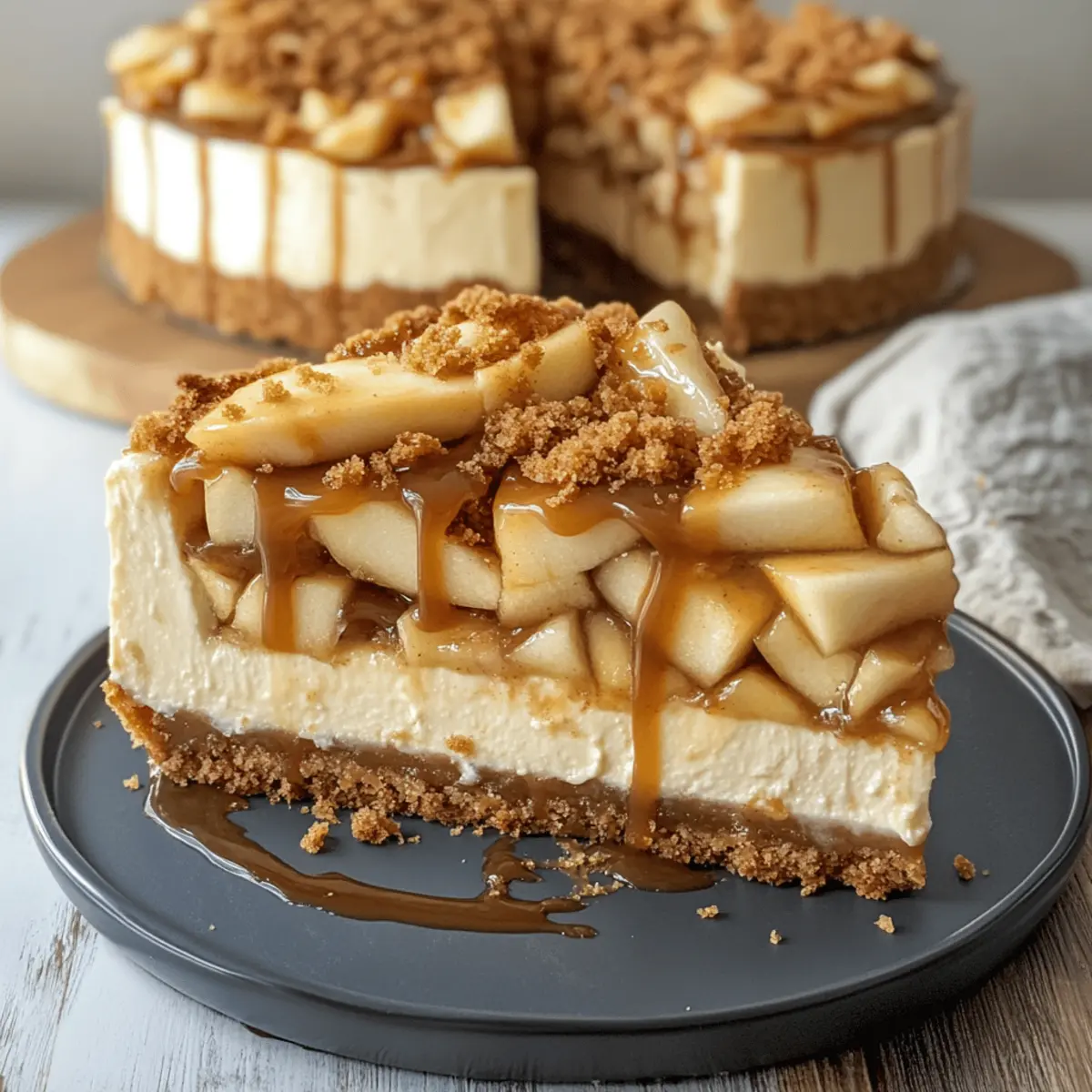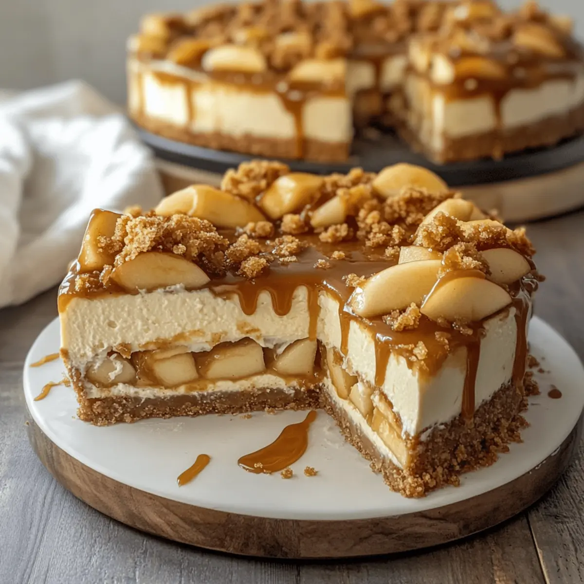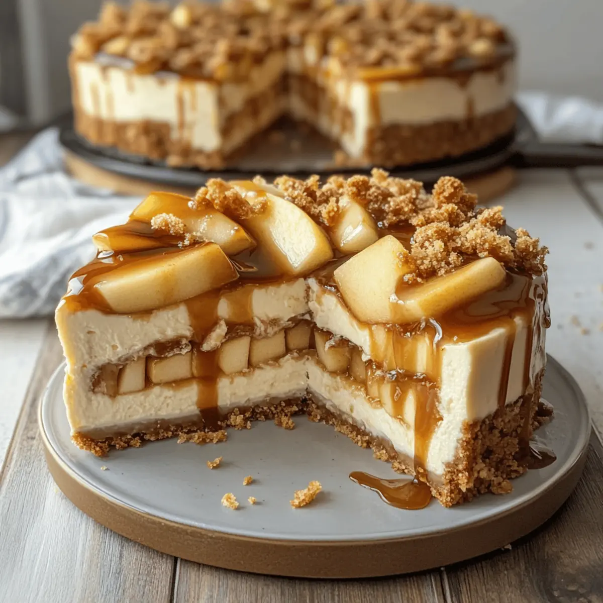 Jump to Recipe Print RecipeAs I was drifting through the bustling farmers’ market last Saturday, the scent of fresh apples filled the air, instantly whisking me back to cozy autumn evenings. That’s when the idea for my Salted Caramel Apple Pie Cheesecake was born—a creamy fusion where the classic American dessert meets velvety cheesecake bliss. This delightful crowd-pleaser not only showcases the warm spices of fall, but it also boasts a quick prep time that makes it perfect for any gathering. Imagine indulging in a slice with a crunchy graham cracker crust, tender apples warmed with cinnamon, and a drizzle of rich salted caramel—it’s the ultimate comfort dessert! Ready to transform your fall baking? Let’s dive into this creamy creation that’s sure to impress your friends and family! Why is this cheesecake a must-try? Decadent Flavor: This Salted Caramel Apple Pie Cheesecake marries the sweet and tangy notes of fresh apples with a creamy cheesecake base and luscious salted caramel, creating a taste that’s simply irresistible. Seasonal Delight: Perfectly embodying the flavors of fall, it makes any gathering feel cozy and festive, making it an essential dessert for autumn celebrations. Quick Preparation: With just a few straightforward steps, you’ll have a stunning dessert without spending all day in the kitchen. Versatile Variations: Whether you prefer sweeter Honeycrisps or spicier Granny Smith apples, you can easily adapt the recipe to suit your taste. Crowd-Pleaser: Ideal for family dinners or holiday parties, this cheesecake is sure to impress and leave everyone clamoring for seconds, just like my beloved Berry Peach Cheesecake. Showstopper Presentation: With its beautiful layers and salted caramel drizzle, it’s not only delicious but visually stunning, making it a perfect centerpiece for your dessert table. Salted Caramel Apple Pie Cheesecake Ingredients For the Crust Graham Cracker Crumbs – Base for the crust; substitute with crushed cookies for a different flavor. Granulated Sugar – Sweetens the crust for a delightful flavor. Unsalted Butter – Binds crust ingredients; be sure to use it melted for better consistency. For the Cheesecake Filling Cream Cheese – Main component for creaminess; ensure it’s softened at room temperature for easy mixing. Granulated Sugar – Sweetens the cheesecake filling, balancing the cream cheese. Eggs – Provides structure and richness; use at room temperature for better incorporation. Vanilla Extract – Enhances the overall flavor profile beautifully. Sour Cream – Adds creaminess and a hint of tanginess to the filling. For the Apple Layer Peeled and Sliced Apples – Adds fruitiness and warmth; substitute Honeycrisp apples for a sweeter filling. Brown Sugar – Sweetens the apples while enhancing caramel notes. Ground Cinnamon – Adds warmth and spice, essential for that fall flavor. All-Purpose Flour – Helps to thicken the apple filling and keep it from becoming too runny. For the Salted Caramel Sauce Granulated Sugar for Caramel – Base for your homemade salted caramel sauce. Unsalted Butter for Caramel – Enriches the caramel sauce, making it silky smooth. Heavy Cream – Gives body and richness to the caramel sauce. Sea Salt – Balances the sweetness of the caramel, enhancing its flavor. This Salted Caramel Apple Pie Cheesecake is your ticket to a cozy fall gathering, combining the best elements of cheesecake and classic apple pie. Step‑by‑Step Instructions for Salted Caramel Apple Pie Cheesecake Step 1: Preheat the Oven Start by preheating your oven to 325°F (163°C). This step ensures that your Salted Caramel Apple Pie Cheesecake bakes evenly, creating a creamy texture. While the oven warms up, gather your ingredients and prepare your 9-inch springform pan for easy removal later. Step 2: Make the Crust In a mixing bowl, combine graham cracker crumbs, granulated sugar, and melted unsalted butter. Stir until the mixture resembles wet sand, then press it firmly into the bottom of your prepared springform pan. Bake the crust for 10 minutes until lightly golden, then take it out and let it cool completely as you move on to the apple layer. Step 3: Prepare the Apple Layer Toss the peeled and sliced apples in a separate bowl with brown sugar, ground cinnamon, and all-purpose flour, ensuring each slice is well coated. Spread this apple mixture evenly over the cooled crust, letting the warm spices fill your kitchen with the scent of fall. This layer will add sweetness and texture to your cheesecake. Step 4: Mix the Cheesecake Filling In another bowl, beat the softened cream cheese and granulated sugar together until smooth and fluffy. Gradually add the eggs, mixing well after each incorporation, followed by the vanilla extract and sour cream. The filling should be creamy and well combined, ready to pour over your apple layer for that rich Salted Caramel Apple Pie Cheesecake experience. Step 5: Bake the Cheesecake Carefully pour the cheesecake mixture over the apple layer in the springform pan, smoothing out the top with a spatula. Bake for 60 to 70 minutes, or until the edges are set but the center is still slightly jiggly. This ensures a creamy texture while baking. Once done, let the cheesecake cool completely at room temperature before transferring it to the refrigerator. Step 6: Chill the Cheesecake Refrigerate the cooled cheesecake for at least 4 hours, or overnight if you can wait! Chilling allows the flavors to meld beautifully and helps achieve that perfect creamy texture. While you wait, your anticipation will build for this incredible Salted Caramel Apple Pie Cheesecake. Step 7: Make the Salted Caramel Sauce To prepare the salted caramel sauce, heat granulated sugar in a medium saucepan over medium heat until it melts and turns a beautiful amber color. Carefully stir in unsalted butter until melted, then slowly whisk in heavy cream. Remove from heat and stir in sea salt to enhance the flavor. Set it a