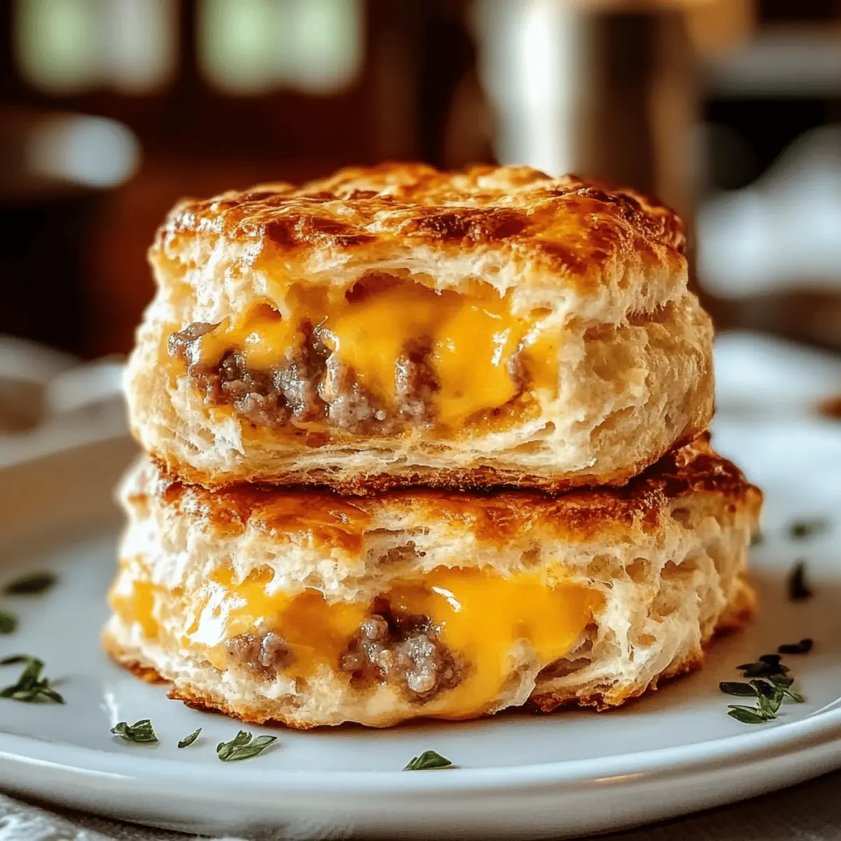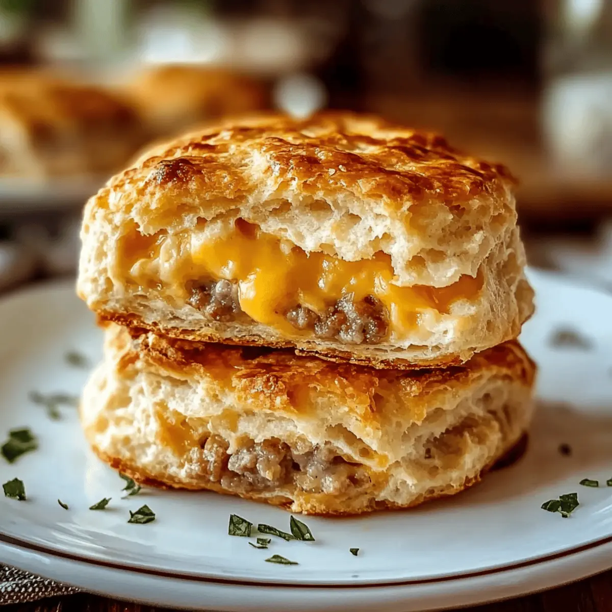 Jump to Recipe Print RecipeThe scent of warm, buttery biscuits wafting through the kitchen is like a cozy hug on a chilly morning. I still recall the first time I whipped up these Sausage Cheese Butter Swim Biscuits; it instantly transformed a regular breakfast into something spectacular. This recipe is a delightful blend of flaky, tender biscuits packed with savory sausage and gooey cheddar cheese, making it perfect for weekend brunch or a comforting breakfast treat. Not only are they incredibly easy to make—requiring minimal effort for maximum flavor—but they also satisfy everyone at the table, bringing family and friends together like a heartwarming tradition. Plus, you can easily customize them to suit your cravings or dietary needs! Want to add a twist of heat or a hint of sweetness? Let’s dive into how you can create your own delicious version of these biscuits! Why Will You Crave These Biscuits? Comforting Flavor: The combination of savory sausage and sharp cheddar cheese makes each bite an explosion of hearty flavor that feels like a warm hug. User-Friendly: With minimal cooking skills required, these biscuits are perfect for anyone looking to whip up a quick, satisfying dish. Versatile Options: Customize them by adding jalapeños for a spicy kick or switch up the cheese for a unique twist, as in our Butter Chicken Comfort recipe. Crowd-Pleaser: These biscuits will impress even the pickiest eaters, making them an ideal choice for brunch gatherings or cozy family breakfasts. Quick Prep Time: Ready in just 20 minutes, you’ll spend less time in the kitchen and more time enjoying fluffy goodness! Make your breakfast memorable with these delightful biscuits, and don’t forget to try pairing them with options like Mashed Potato Cheese for an ultimate comfort experience! Sausage Cheese Butter Swim Biscuits Ingredients For the Biscuits Breakfast Sausage – Adds savory flavor and hearty texture. Substitution: Use turkey sausage for a lighter option. Unsalted Butter – Provides richness and moisture to the biscuits. Use cold butter for better texture. All-Purpose Flour – Forms the structure of the biscuits. For a gluten-free option, substitute with a 1:1 gluten-free flour blend. Baking Powder – Ensures leavening for fluffy biscuits. Do not substitute with baking soda directly, as the ratio differs. Baking Soda – Works with acidity in buttermilk for additional leavening. Omit if not using buttermilk. Salt – Enhances flavor. Use kosher salt for more balanced seasoning. Garlic Powder – Adds subtle garlicky notes. Fresh minced garlic can be used, but adjust quantity as it is stronger in flavor. Black Pepper – Provides mild heat and depth. Cracked black pepper is a great substitute for a fresher taste. Buttermilk – Adds moisture and tang, crucial for biscuit texture. Make a substitute with regular milk mixed with a bit of vinegar. Sharp Cheddar Cheese – Contributes a rich, sharp flavor. Substitute with Gruyere or mozzarella for variation. Heavy Cream (optional) – Brush for added richness on top. Omit if looking to reduce fat content. For Serving Butter – Perfect for spreading on warm biscuits. Consider using flavored butters for an extra touch. Jam or Honey – Offer a sweet contrast to the savory biscuits. Try strawberry jam for a fruity flavor boost. Step‑by‑Step Instructions for Sausage Cheese Butter Swim Biscuits Step 1: Cook Sausage In a large skillet over medium heat, crumble the breakfast sausage and cook for 8-10 minutes until browned and cooked through. Stir occasionally to ensure even cooking, and once done, drain any excess grease to prevent soggy biscuits. Allow the sausage to cool slightly while you prepare the other ingredients. Step 2: Mix Sausage and Cheese In a mixing bowl, combine the cooled cooked sausage with shredded sharp cheddar cheese, ensuring the sausage is evenly distributed within the cheese. Set this mixture aside as you move on to the dry ingredients, bringing out the savory flavors that will elevate your Sausage Cheese Butter Swim Biscuits. Step 3: Combine Dry Ingredients In a large bowl, whisk together all-purpose flour, baking powder, baking soda, salt, garlic powder, and black pepper until fully blended. This step is crucial for creating the perfect biscuit structure, as these dry ingredients will provide the base for your comforting biscuits. Step 4: Cut in Butter Add cold, unsalted butter cut into small cubes to the dry mixture. Using a pastry cutter or your fingers, work the butter into the flour until the mixture resembles coarse crumbs. This creates the flaky texture characteristic of Sausage Cheese Butter Swim Biscuits, so take your time to get it right! Step 5: Add Buttermilk Pour in the cold buttermilk, stirring gently with a spatula until just combined. Avoid overmixing at this stage; you want a slightly shaggy dough that will transform into tender biscuits once baked. The buttermilk adds moisture and tang, enhancing the overall flavor profile of your biscuits. Step 6: Fold in Sausage Mixture Gently fold the sausage and cheese mixture into the biscuit dough, being careful not to overmix. You want to see pockets of sausage and cheese throughout the dough without fully combining them. This will ensure that each bite of your Sausage Cheese Butter Swim Biscuits is packed with flavor. Step 7: Shape Biscuits Turn the dough out onto a lightly floured surface and pat it into a rectangle, about 1 inch thick. This thickness will help the biscuits rise beautifully while maintaining a soft texture. Use your hands to shape the dough, ensuring a consistent thickness for even baking. Step 8: Cut Biscuits Using a biscuit cutter, cut out biscuits from the dough, pressing straight down without twisting the cutter. This ensures the biscuits rise properly. You should aim for about 10 biscuits, depending on your cutter size. Place the cut biscuits on a parchment-lined baking sheet, leaving space between them. Step 9: Re-roll Scraps Collec