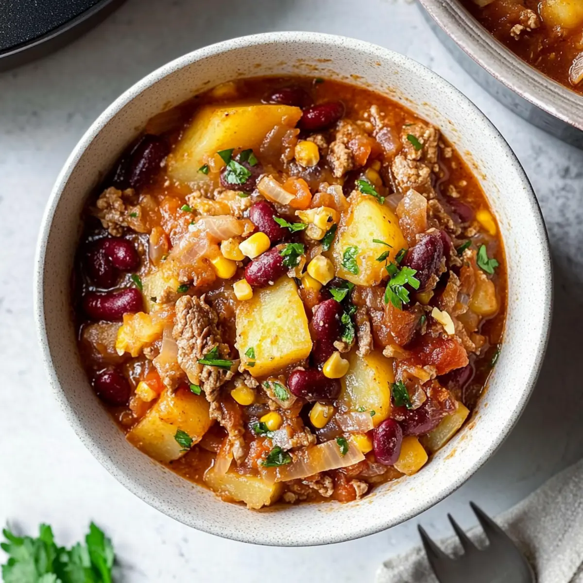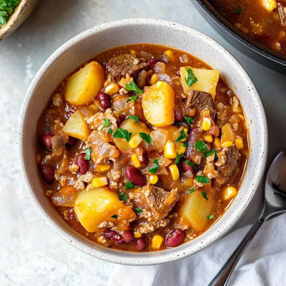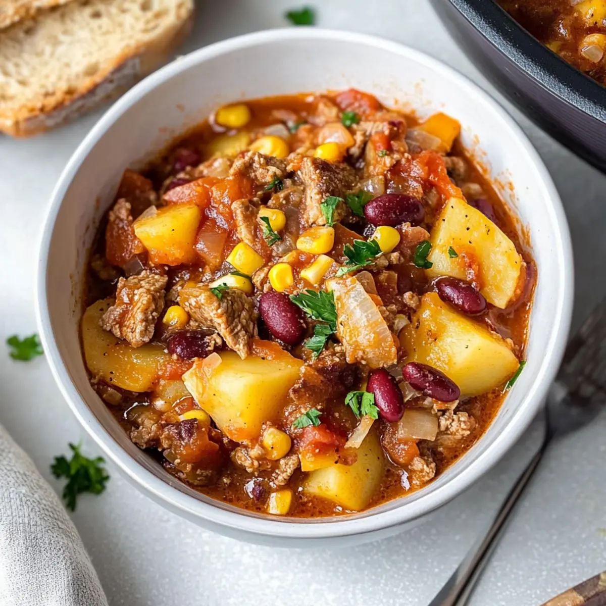 Jump to Recipe Print RecipeAs I stood in my kitchen, the scent of simmering vegetables and spices wafted toward me, wrapping me in a warm embrace of nostalgia. There’s something undeniably comforting about a hearty bowl of Shipwreck Stew in the Crock Pot. This gluten-free and dairy-free dish is a treasure trove of flavors, with tender russet potatoes, savory ground beef, and a vibrant mix of beans and corn all nestled in a rich tomato base. Whether you’re juggling a busy weeknight schedule or just looking for an easy meal prep solution, this stew has you covered. It’s a family-friendly delight that pleases even the pickiest eaters, leaving everyone satisfied and craving seconds. Ready to embrace the cozy vibes while creating a meal that brings everyone together? Let’s dive into the details of this mouthwatering recipe! Why Is Shipwreck Stew a Must-Make? Comforting and Hearty: This stew is like a warm hug in a bowl, perfect for chilly evenings. Easy to Prepare: With two methods—Crock Pot and stovetop—you can choose what fits your schedule best. Versatile Ingredients: Swap out ground beef for turkey or lentils, or throw in your favorite veggies. Family-Friendly: Kid-approved flavors ensure every meal is a hit, making it great for busy families. Budget-Friendly Meal Prep: It’s affordable and makes a large batch, ideal for cooking in advance and enjoying later! For more delicious ideas, explore Cheesy Ranch Potatoes that pair perfectly with this stew or try Potato Wedges Inside for a delightful side. Shipwreck Stew Ingredients A hearty dish perfect for family dinners! For the Stew • Ground Beef – Provides protein and heartiness; consider substituting with turkey or lentils for a lighter option. • Russet Potatoes – Adds texture and substance; peel for a smoother consistency or dice for quicker cooking. • Celery – Offers a fresh crunch; bell peppers work as a nice alternative for variation. • White Onion – Enhances flavor; yellow onions make an acceptable substitute. • Whole Kernel Corn – Introduces sweetness and vibrant color; feel free to use frozen corn as a convenient option. • Red Kidney Beans – Contributes protein and fiber; any beans like black or pinto can be swapped. • Campbell’s Tomato Soup – Provides a creamy tomato base; you can substitute with additional diced tomatoes or V8 juice. • Diced Tomatoes – Adds texture; keep the liquid from canned tomatoes for a heartier stew. • Garlic Powder, Chili Powder, Salt, and Pepper – These spices enhance flavor depth; adding fresh garlic can intensify the taste. Feel free to get creative with this Shipwreck Stew recipe, tailoring it to your family’s preferences! Step‑by‑Step Instructions for Shipwreck Stew in the Crock Pot Step 1: Brown the Ground Beef In a large skillet over medium-high heat, add the ground beef and cook for about 5–7 minutes, breaking it apart with a spatula until it’s fully browned. Make sure it’s no longer pink, then carefully drain any excess grease to keep your Shipwreck Stew flavorful without the heaviness. Transfer the browned beef to your Crock Pot. Step 2: Layer the Ingredients Next, slice the russet potatoes into even rounds and layer them over the ground beef in the Crock Pot. Follow with chopped celery and diced onions, ensuring an even spread to capture all those delightful flavors. Add the corn and kidney beans, making sure to drain the beans before adding. These layers set the stage for a hearty Shipwreck Stew. Step 3: Add the Tomatoes Open the cans of diced tomatoes, including their juices, and pour them over the layered vegetables and beef. This will add a rich acidity that perfectly complements the other ingredients in your Shipwreck Stew. Take your tomato soup and pour it evenly over the top, ensuring it covers the entire mixture to create a luscious and cohesive stew. Step 4: Season Generously Sprinkle garlic powder, chili powder, salt, and pepper across the top of the mixture. This is where you build flavor for your Shipwreck Stew. Feel free to adjust the seasoning to suit your taste. Stir gently with a wooden spoon to combine, making sure not to disturb the layered ingredients too much. Step 5: Slow Cook Now, cover the Crock Pot with its lid and set it to cook on low for 6–8 hours. As it cooks, the potatoes will become tender, and the flavors will blend beautifully. To check for doneness, lift the lid after about 6 hours; the potatoes should be easily pierced with a fork when it’s ready to serve. Step 6: Serve and Enjoy Once your Shipwreck Stew is finished cooking, give it a good stir to mix everything together. Ladle the hearty stew into bowls and serve hot. You might find it delicious topped with cheese, oyster crackers, or a dollop of sour cream for an extra layer of flavor. Enjoy the comforting warmth of this family-friendly dish! Expert Tips for Shipwreck Stew Browning Matters: Ensure you brown the ground beef well before adding it to the Crock Pot. It’s essential for richer flavor in your Shipwreck Stew. Consistency Control: If you prefer a thinner stew, stir in a couple of cups of beef broth toward the end of cooking. Adjust to your desired thickness! Ingredient Flexibility: Feel free to mix in your favorite vegetables or beans. The versatility of this Shipwreck Stew makes it easy to customize based on what you have on hand. Layering Technique: When adding ingredients to the Crock Pot, layer them as suggested. This helps each component cook evenly and enhances the overall flavor. Taste as You Go: Don’t forget to taste your stew! Adjust seasonings like chili powder and salt according to your family’s preference for a perfect dish. What to Serve with Hearty Gluten-Free Shipwreck Stew in a Crock Pot Comfort food perfection awaits when you pair warm and hearty dishes that bring your family together around the dinner table. Crusty Bread: Ideal for dipping, this rustic bread complements the stew’s rich tomato base and adds textur