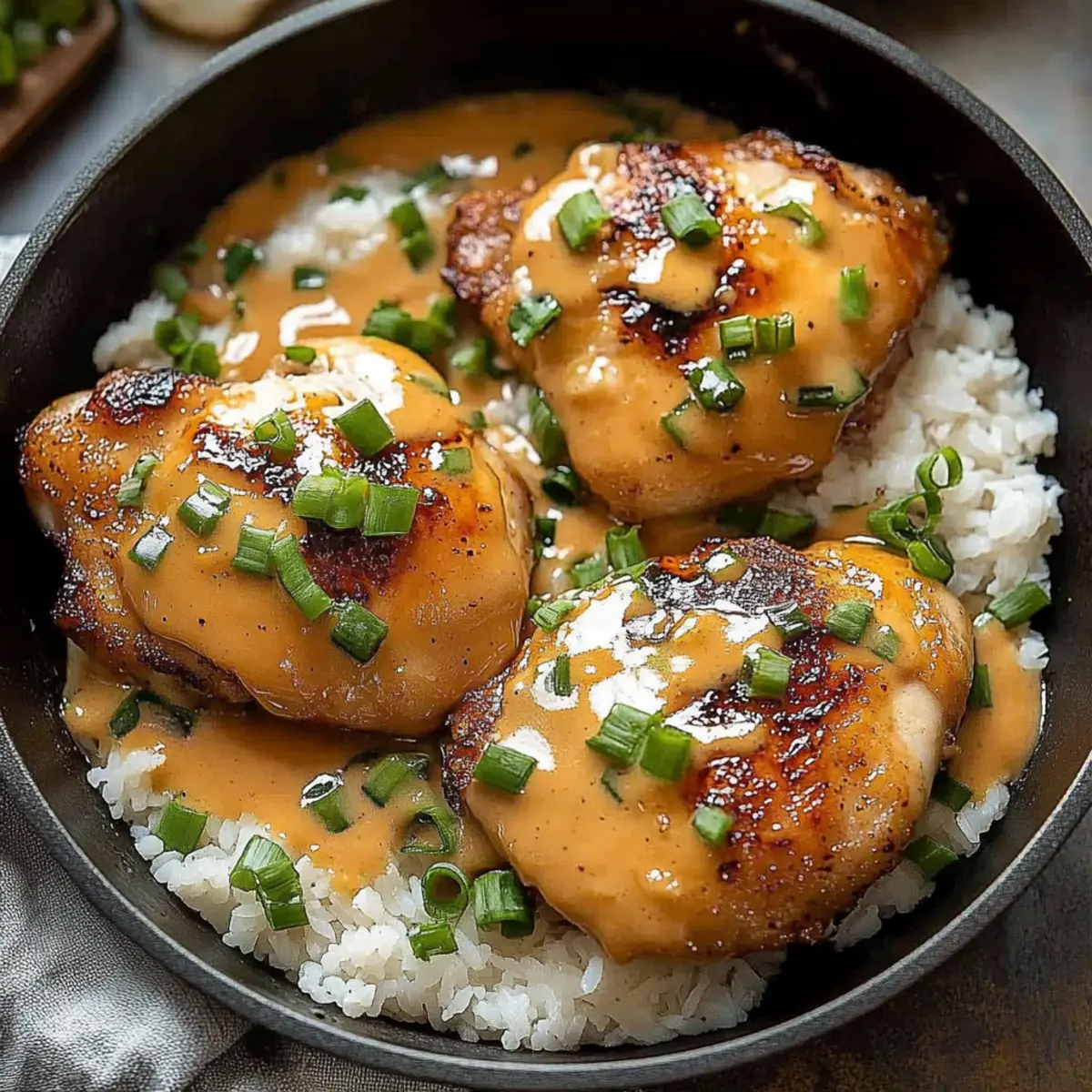 Delicious Skillet Bang Bang Chicken Thighs combine creamy, sweet, and spicy flavors, perfect for a quick dinner.
