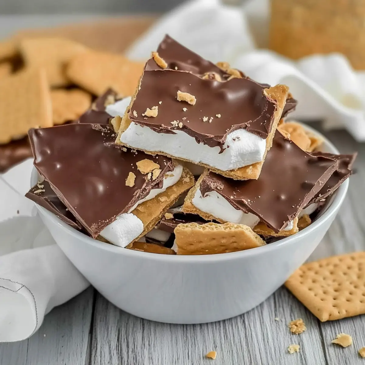 This S'mores Bark combines layers of chocolate and marshmallow for a quick and delightful no-bake dessert.