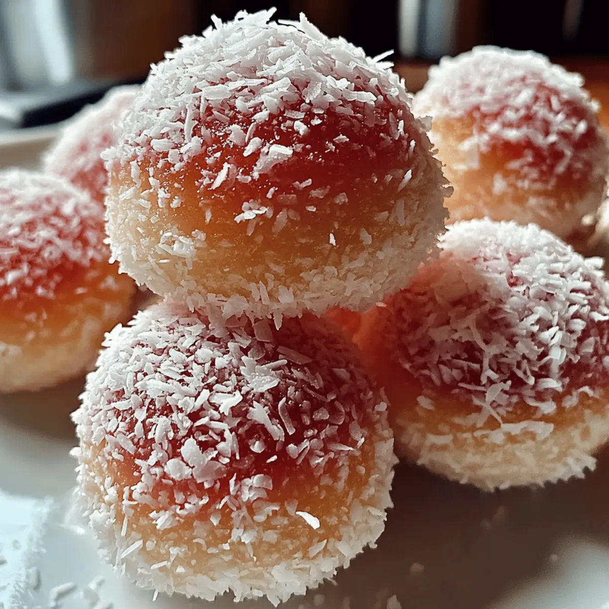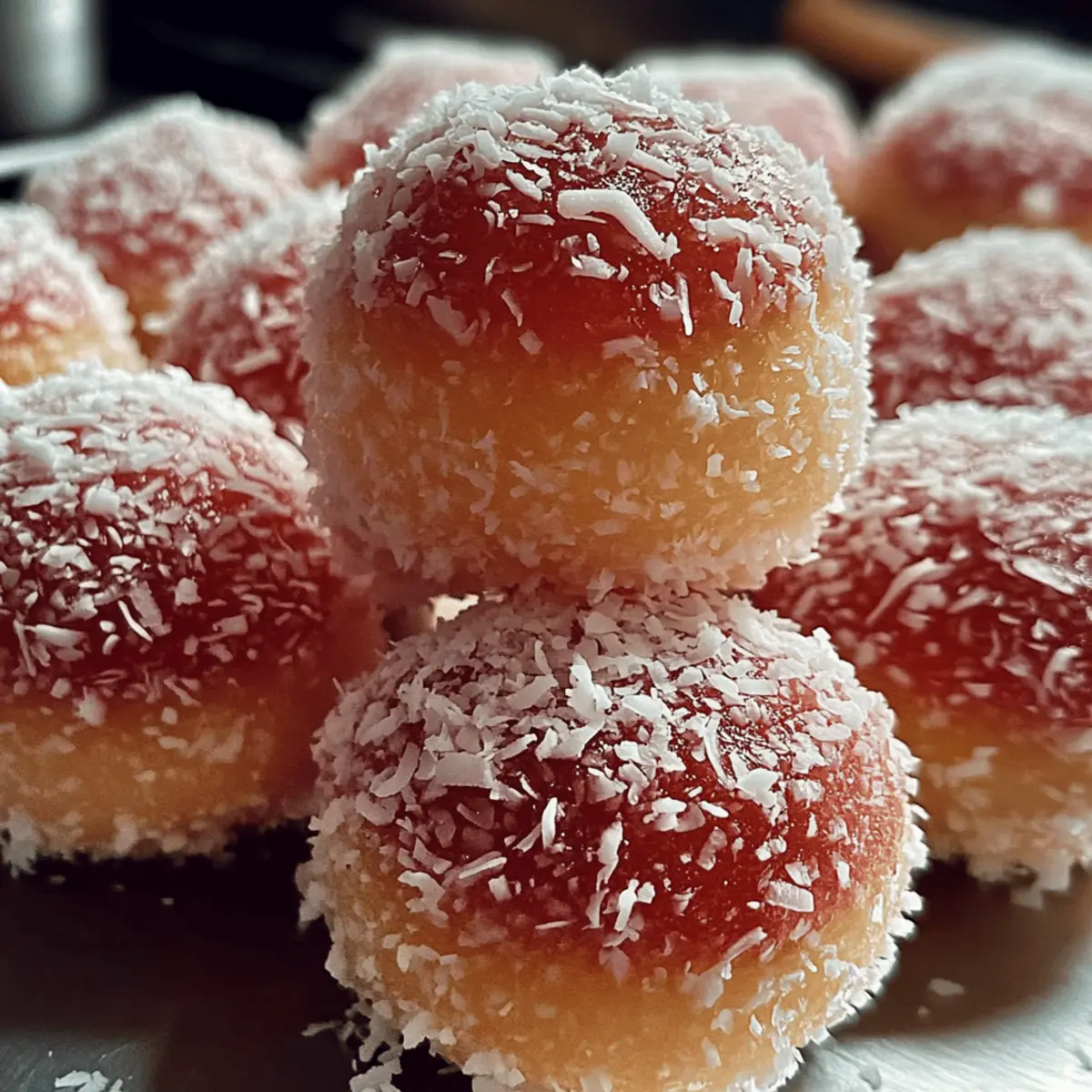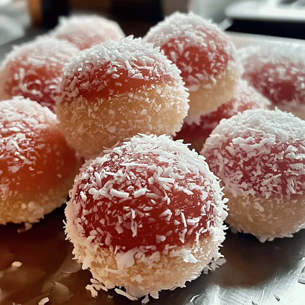 Jump to Recipe Print RecipeThe aroma of baking goodies brings a flood of memories, like the warmth of a family gathering or a cozy childhood afternoon. That’s precisely what these Easy Snowballs evoke—delightful coconut desserts that transport you back in time with each soft, chewy bite. With a simple assembly using everyday ingredients, they’re not just a nostalgic indulgence; they offer a quick treat to brighten up any day. Perfect for sharing or enjoying solo, these sweet delights are a fantastic escape from the fast-food routine. Ready to bring a little sweetness into your life with these snowballs? Let’s dive into the recipe! Why are Snowballs a must-try treat? Nostalgic flavors: Each bite of these Easy Snowballs whisks you back to joyful childhood memories. Simplicity personified: Crafted with everyday ingredients, this quick recipe is perfect for busy days. Crowd-pleaser appeal: Their delightful sweet coating and chewy interior will charm everyone, making them ideal for gatherings. Versatile options: Customize your snowballs with variations like almond extract or gluten-free flour to suit any palate. Irresistible texture: Enjoy the fluffy cake bites nested under a fluffy coconut layer—pure bliss! With these treats, you’ll elevate any occasion while making memories in the kitchen. Get the full experience with coconut dessert ideas! Snowballs Ingredients • Making these Easy Snowballs is a breeze with just a few ingredients! For the Cake Batter Eggs – Provides structure and moisture. Use room-temperature eggs for better aeration. Sugar – Sweetens the cake and syrup. Can be reduced for a less sweet version. Vanilla Essence – Enhances flavor. Can swap with almond extract for variation. Oil – Adds moisture and tenderness. Melted butter can be substituted for a richer flavor. Cake Flour – Creates a light texture. All-purpose flour can be used; sift well to maintain lightness. Baking Powder – Leavening agent for fluffy texture. Ensure it’s fresh for best results. Salt – Balances sweetness. No substitutions here. Milk – Adds moisture and richness. Dairy-free milk works in place of regular milk. For the Syrup Sugar (for syrup) – Sweetens and gives the outer coating its stickiness. Adjust based on desired sweetness and thickness. Water – Used in the syrup preparation. No alternatives needed. Food Coloring – Optional for visual appeal. Natural colorants can be used. For Rolling Desiccated Coconut – Provides texture and flavor. Toast for an added flavor twist. Step‑by‑Step Instructions for Easy Snowballs Step 1: Preheat the Oven Begin by preheating your oven to 180°C (350°F). While it warms up, take a moment to grease your baking pan, preferably 9×13 inches or 11×7 inches. This will ensure that your Easy Snowballs come out effortlessly after baking. You might want to line the pan with parchment paper for extra assurance! Step 2: Prepare the Batter In a large mixing bowl, beat the room-temperature eggs and sugar together with an electric mixer for about 3-4 minutes. You’re aiming for a pale, fluffy mixture that doubles in volume. Once you achieve that light frothy texture, add in the vanilla essence and oil, mixing until everything is well combined and you can see a smooth surface. Step 3: Combine Dry Ingredients In a separate bowl, sift together the cake flour, baking powder, and salt. Sifting is key for a light texture in your Easy Snowballs. Once combined, gradually fold the dry ingredients into your egg mixture, alternating with the milk. Be gentle here—mix until just combined to avoid overworking the batter, which can lead to tougher treats. Step 4: Bake the Cake Pour your batter into the prepared baking pan, spreading it evenly. Slide it into the preheated oven and bake for 25-30 minutes. To check for doneness, insert a toothpick into the center; it should come out clean or with a few moist crumbs. This means your cake base for Easy Snowballs is perfectly baked! Step 5: Make the Syrup While your cake cools, prepare the syrup. In a saucepan, combine sugar, water, and food coloring if desired, bringing it to a boil over medium heat. Stir occasionally until the mixture slightly thickens, resembling the consistency of runny honey. Once ready, remove it from heat and let it cool to room temperature. Step 6: Shape the Snowballs Once the cake has cooled, it’s time to cut it into squares or shape it into balls. You can use a cookie scoop for uniform snowball shapes. As you cut or scoop, be gentle to maintain the moisture in your Easy Snowballs. Step 7: Dip and Roll Dip each cake piece into the cooled syrup, ensuring they’re coated generously. Afterward, roll them in desiccated coconut, covering every inch for that delightful sweet finish. Use one hand for syrup and the other for coconut to keep things mess-free and efficient. Step 8: Serve and Enjoy If desired, you can stack pieces together using icing for layered snowballs. Place your finished Easy Snowballs on a serving platter and let them rest briefly to allow the syrup to set. Enjoy these nostalgic treats with family or friends, or simply savor them yourself! Storage Tips for Snowballs Room Temperature: Store your Easy Snowballs in an airtight container for up to 2 days; this keeps them soft and delicious. Fridge: If you want to extend freshness, refrigerate your snowballs in a sealed container for up to one week. This helps maintain their chewy texture. Freezer: For longer storage, freeze uncoated snowballs in an airtight bag or container for up to 3 months. Thaw at room temperature before dipping and rolling in syrup and coconut. Reheating: To revive their freshness, microwave thawed snowballs for a few seconds — just enough to warm them slightly without compromising their delightful texture. What to Serve With Easy Snowballs Indulging in these delightful coconut treats creates moments worth savoring, making it essential to pair them perfectly. Creamy Vanilla Ice Cream: The cold cre