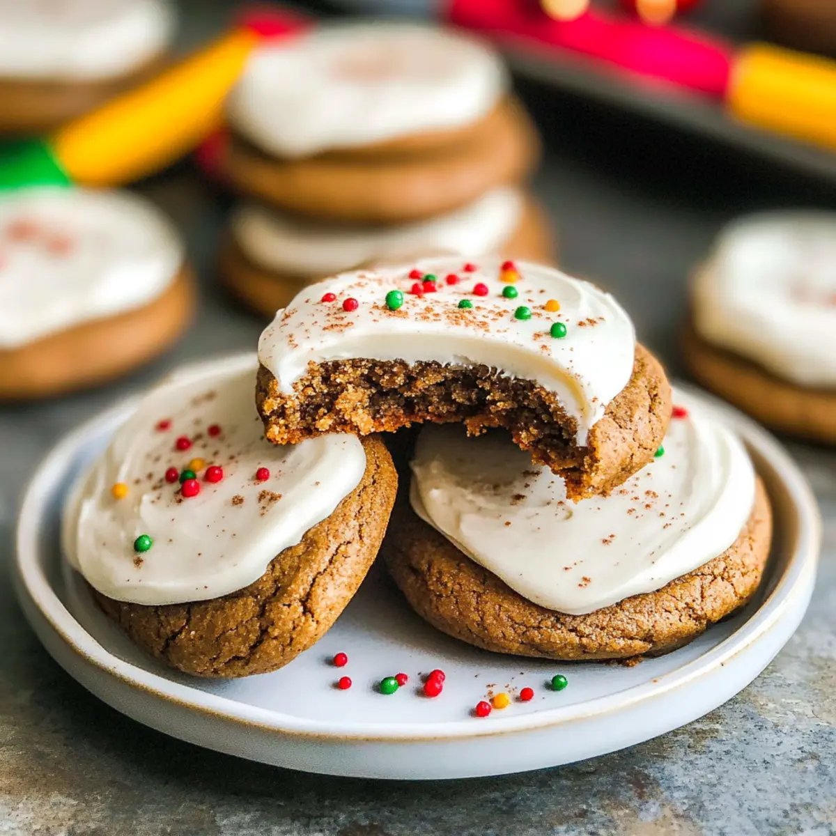 Once the cookies are completely cooled, use a knife or spatula to frost each cookie generously with the cream cheese mixture. If desired, sprinkle some festive decorations on top to add a touch of holiday cheer. These soft gingerbread cookies are now ready to impress your friends and family with their delightful, chewy texture and delicious flavor!