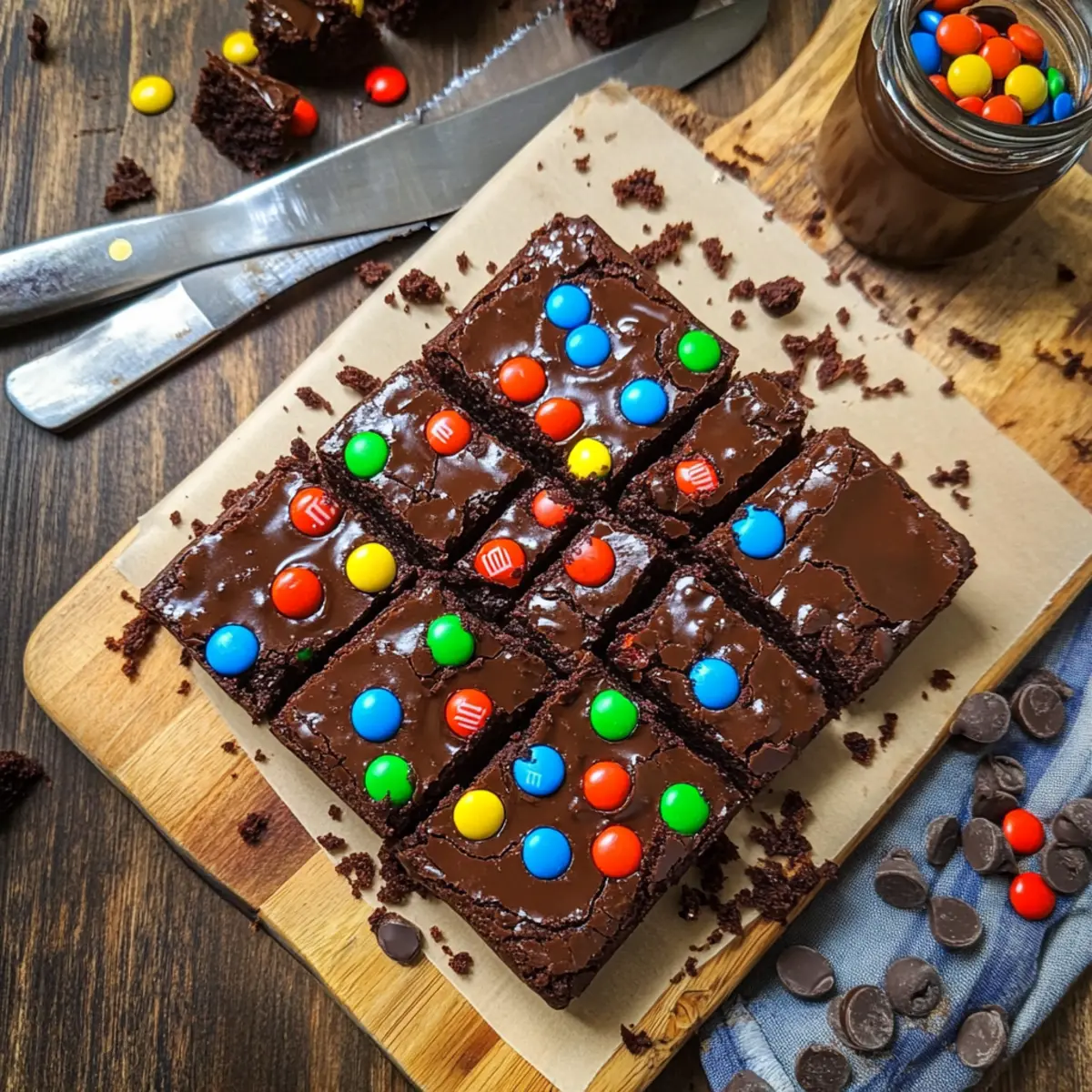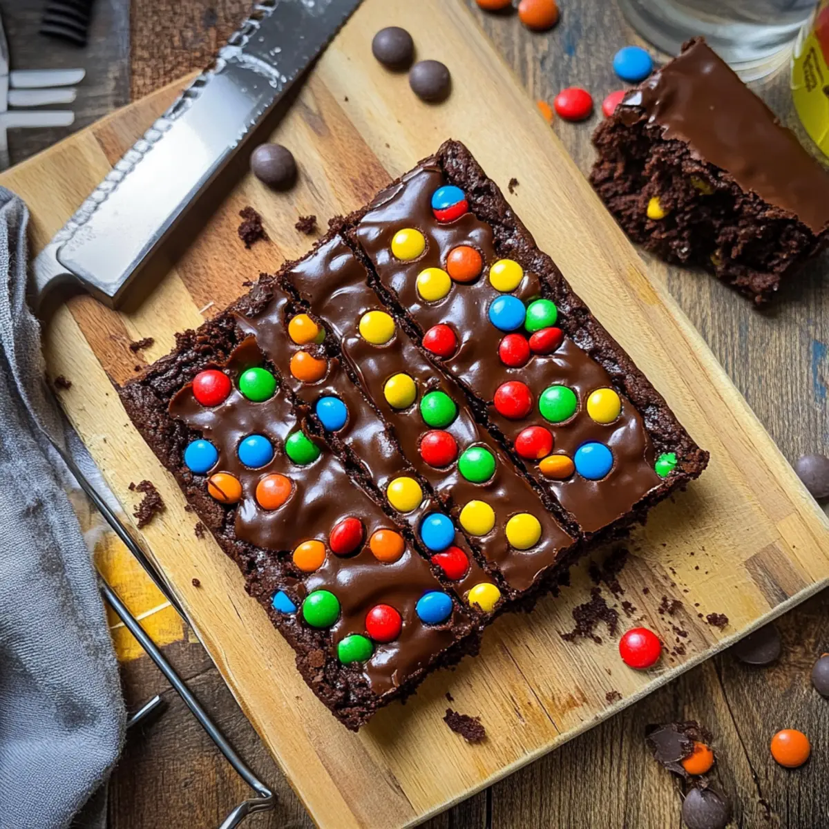 Jump to Recipe Print RecipeJust when I thought I’d discovered all the ways to enjoy chocolate, I stumbled upon a delightful twist: Sourdough Cosmic Brownies. These fudgy, rich chocolate treats combine the nostalgic appeal of childhood and the unique tang of sourdough, creating a flavor experience that feels both comforting and adventurous. With just 10 minutes of prep time, you can whip up a batch that not only satisfies your sweet cravings but also puts your sourdough discard to good use. Plus, the addition of crunchy mini M&Ms on top takes them from delicious to downright irresistible! What if I told you these brownies could become your new guilty pleasure? Let’s dive into the world of baking and see for yourself! Why are Sourdough Cosmic Brownies special? Irresistible Fudginess: Each bite offers a rich, deeply chocolatey experience that is oh-so-satisfying! Nostalgic Touch: Combining traditional cosmic brownies with a modern sourdough twist, they bring back that childhood joy you crave. Simple Prep: With just 10 minutes of hands-on time, you’ll have delicious brownies ready to bake! Versatile Ingredient Use: By utilizing your sourdough discard, not only do you reduce waste, but you also enhance flavor. Crunchy Surprise: Topped with mini M&Ms, these brownies add a delightful crunch, making them perfect for gatherings or cozy nights in. You won’t want to miss making these Sourdough Cosmic Brownies, and if you’re keen on other unique recipes, check out our guide on delicious chocolate desserts. Sourdough Cosmic Brownie Ingredients • Get ready to indulge with these unique treats! For the Brownies All Purpose Flour – Provides structure to the brownies; swap for whole wheat flour for added fiber. White Sugar – Adds sweetness; coconut sugar can be used for a lower glycemic option. Cocoa Powder – Delivers rich chocolate flavor; opt for Dutch-processed cocoa for deeper color. Salt – Balances sweetness and enhances flavor; pink Himalayan salt adds a lovely touch. Baking Powder – Acts as a leavening agent for a lighter texture; baking soda can be substituted with adjustments. Chocolate Chips – Adds rich texture; semi-sweet is recommended, but dark chocolate adds depth. Butter – Provides moisture and richness; substitute with coconut oil for a dairy-free alternative. Eggs – Binds ingredients and adds moisture; flax eggs make a great vegan substitute. Vanilla Extract – Enhances the chocolate flavor; using pure vanilla yields the best results. Sourdough Starter – Adds unique tang while enhancing chocolate flavors; unfed or active starter works well. For the Ganache Heavy Whipping Cream – Used for making ganache; coconut cream can work for a dairy-free version. Mini M&Ms – Adds a crunchy, nostalgic touch; consider chocolate-coated candies for a similar effect. With these Sourdough Cosmic Brownie ingredients, you’re well on your way to creating a fudgy and delicious treat that will surely impress! Step‑by‑Step Instructions for Sourdough Cosmic Brownies Step 1: Preheat the Oven Begin by preheating your oven to 160°C (320°F). While the oven warms up, prepare a 9″ x 9″ baking pan by greasing it lightly or lining it with parchment paper. This ensures easy removal of your Sourdough Cosmic Brownies once baked. Step 2: Combine Dry Ingredients In a large mixing bowl, whisk together the all-purpose flour, white sugar, cocoa powder, salt, and baking powder. This mixture will create a base full of rich chocolate flavor. Make sure there are no lumps, and enjoy the chocolatey aroma wafting as you blend these ingredients. Step 3: Coat Chocolate Chips Take your chocolate chips and toss them gently in the dry mixture until they’re well-coated. This step not only helps prevent the chips from sinking to the bottom but also adds a delightful burst of chocolaty goodness to each bite of your Sourdough Cosmic Brownies. Step 4: Mix Wet Ingredients In a separate bowl, combine the melted butter, eggs, vanilla extract, and sourdough starter. Whisk these ingredients together until thoroughly blended. The sourdough starter will enhance the brownies’ flavor, adding a unique tang that contrasts beautifully with the sweetness of the other ingredients. Step 5: Combine Wet and Dry Mixtures Pour the wet ingredients into the bowl with the dry mixture. Gently mix until just combined; your batter will be thick and luscious. Be careful not to overmix, as this could result in dense brownies rather than the fudgy texture we desire in our Sourdough Cosmic Brownies. Step 6: Spread the Batter Transfer the brownie batter into the prepared baking pan, using a spatula to spread it evenly. Aim for a smooth surface to ensure even baking. Place the pan in the preheated oven and bake your Sourdough Cosmic Brownies for 35 minutes, or until the edges are set. Step 7: Check for Doneness After 35 minutes, check the brownies for doneness using a toothpick. Insert it into the center; it should come out with moist crumbs clinging, but not wet batter. Look for a slightly crackly top that denotes a perfect bake for your rich Sourdough Cosmic Brownies. Step 8: Cool Before Ganache Once done, remove the pan from the oven and let the brownies cool in the pan for about an hour. This cooling period allows the brownies to set properly, making them easier to slice later on when you add the ganache. Step 9: Prepare the Ganache For the ganache, place the heavy whipping cream and semi-sweet chocolate chips in a microwave-safe bowl. Heat it in increments, stirring in between, until melted and glossy. This creamy ganache will provide a decadent topping that brings your Sourdough Cosmic Brownies to the next level. Step 10: Assemble and Chill Pour the glossy ganache over the cooled brownies, smoothing it out evenly. Sprinkle mini M&Ms on top for that classic cosmic touch! After assembling, refrigerate the brownies for two hours, allowing the ganache to set perfectly before slicing into irresistible squares. Sourdough Cosm