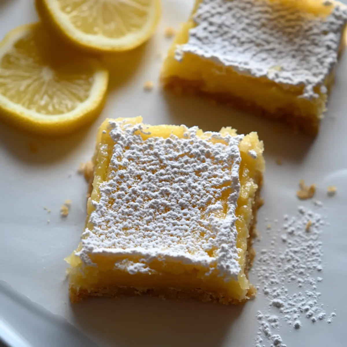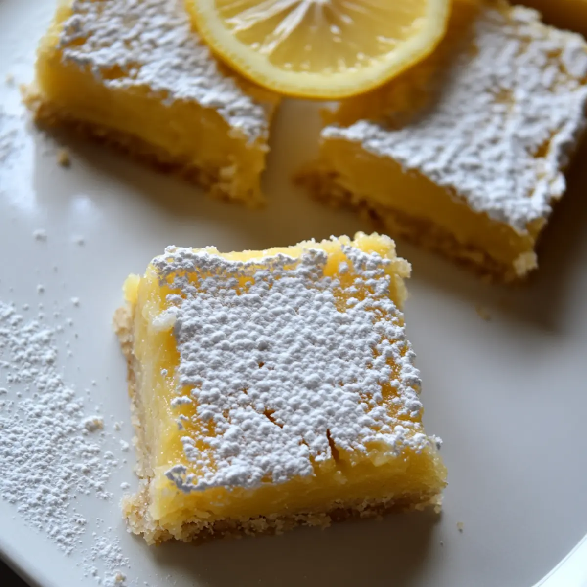 Jump to Recipe Print RecipeThe scent of zesty lemons sparkling in the air can instantly transport you to a sunlit kitchen, where magic happens with just a few simple ingredients. If you’ve ever found yourself with sourdough discard and a craving for something sweet, you’re in for a treat! These Easy Sourdough Lemon Bars combine the unique tang of sourdough with a buttery shortbread crust, creating a delightful dessert that’s both refreshing and comforting. Best of all, this recipe is perfect for anyone short on time yet eager to impress, making it a crowd-pleaser at family gatherings or casual get-togethers. So, are you ready to whip up a batch of these tangy delights that will brighten up any day? Let’s get baking! Why are Sourdough Lemon Bars a Must-Try? Uniqueness: These bars put a delightful twist on traditional lemon bars by incorporating sourdough discard, adding a subtle tang. Simplicity: With only a few ingredients and straightforward steps, even novice bakers can create this heavenly dessert. Crowd-Pleaser: Serve them at your next gathering, and watch as they become the star of the dessert table! Versatile Options: Feel free to experiment with zest or alternative citrus juices for a fun variation that suits your taste. Storage Friendly: Easily make ahead and store for later, allowing you to enjoy fresh treats at your convenience. So, why not serve these alongside some other lemon favorites like Lemon Cake Deliciously or Lemon Cobbler Tangy? Sourdough Lemon Bars Ingredients For the Crust Unsalted Butter – Adds richness and moisture to the crust; substitute with vegan butter for a dairy-free version. Powdered Sugar – Sweetens the crust without grittiness; granulated sugar can be used but will alter texture slightly. All-Purpose Flour – Provides structure for the crust; can substitute with a gluten-free blend for a gluten-free version. Sourdough Discard – Incorporates tanginess and improves texture; fresh sourdough starter can be used for an extra boost in flavor. For the Filling Large Eggs – Binds the filling and helps it set; no substitute recommended for a vegan version. Granulated Sugar – Provides sweetness to balance tartness; can use coconut sugar for a lower glycemic option. Fresh Lemon Juice – The star ingredient delivering the characteristic tart flavor; bottled lemon juice may not yield the same freshness. Flour – Thicken the lemon filling; use the same type of flour as the crust for consistency. Step‑by‑Step Instructions for Sourdough Lemon Bars Step 1: Preheat and Prepare Preheat your oven to 350°F (175°C). Line a glass 9×13 baking dish with parchment paper, allowing some overhang for easy removal later. Set aside while you gather the ingredients to make the buttery shortbread crust for your Sourdough Lemon Bars. Step 2: Prepare the Crust Mixture In a medium bowl, combine 3/4 cup of melted unsalted butter with 1/2 cup of sourdough discard. Whisk until the mixture is smooth and slightly frothy. This tangy addition will give the crust a unique flavor that perfectly complements the lemon filling. Step 3: Mix Dry Ingredients In another bowl, whisk together 1.5 cups of all-purpose flour and 1/3 cup of powdered sugar, ensuring they are well combined. Gradually mix the dry ingredients into the wet mixture, stirring until the dough resembles a soft pie crust. The texture should be slightly crumbly but hold together when pressed. Step 4: Press and Bake the Crust Transfer the dough into the lined baking dish and evenly press it into the bottom, creating a compact layer. Bake in the preheated oven for 25-30 minutes or until the crust edges are lightly golden and firm to the touch. The aroma of buttery goodness will fill your kitchen! Step 5: Prepare the Lemon Filling While the crust is baking, prepare the zesty filling. In a large bowl, beat 6 large eggs until frothy, then gradually add 3 cups of granulated sugar. Mix until fully incorporated, then stir in 1/2 cup of flour and 8 tablespoons of fresh lemon juice until the mixture is smooth and silky, with a delightful citrus scent. Step 6: Combine and Bake Again Once the crust is baked, pour the lemon filling over the hot crust, spreading it out evenly. Return the dish to the oven and bake for an additional 25-30 minutes. The filling should be set with a slight jiggle in the center and a light golden top. A toothpick inserted should come out clean. Step 7: Cool and Dust Remove the Sourdough Lemon Bars from the oven and let them cool on a wire rack. Once completely cool, dust the top generously with powdered sugar for a sweet finish. This will not only add flavor but also enhance the beautiful presentation of your delicious dessert. Make Ahead Options These Sourdough Lemon Bars are perfect for meal prep enthusiasts looking to save time on busy days! You can prepare the buttery shortbread crust up to 24 hours in advance. Simply follow the initial baking steps and let it cool completely before tightly wrapping it in plastic wrap or storing it in an airtight container. The lemon filling can also be prepped and refrigerated for up to 3 days; just mix the ingredients as directed and store them in a covered bowl. When you’re ready to serve, simply pour the filling over the crust and bake as instructed. This way, you’ll have delightful dessert ready with minimal effort on the day of serving! Storage Tips for Sourdough Lemon Bars Fridge: Store Sourdough Lemon Bars in an airtight container for up to 4-5 days to maintain freshness and flavor. Freezer: For longer storage, slice and freeze the bars wrapped tightly in plastic wrap, then place in a freezer-safe bag for up to 2-3 months. Thawing: When ready to enjoy, thaw the frozen bars overnight in the refrigerator before serving for the best texture. Serving Temperature: Serve chilled for a refreshing treat, dusting with powdered sugar right before serving to maintain its sweet appearance. Expert Tips for Sourdough Lemon Bars Perfect Baking Dish: Use a glass o