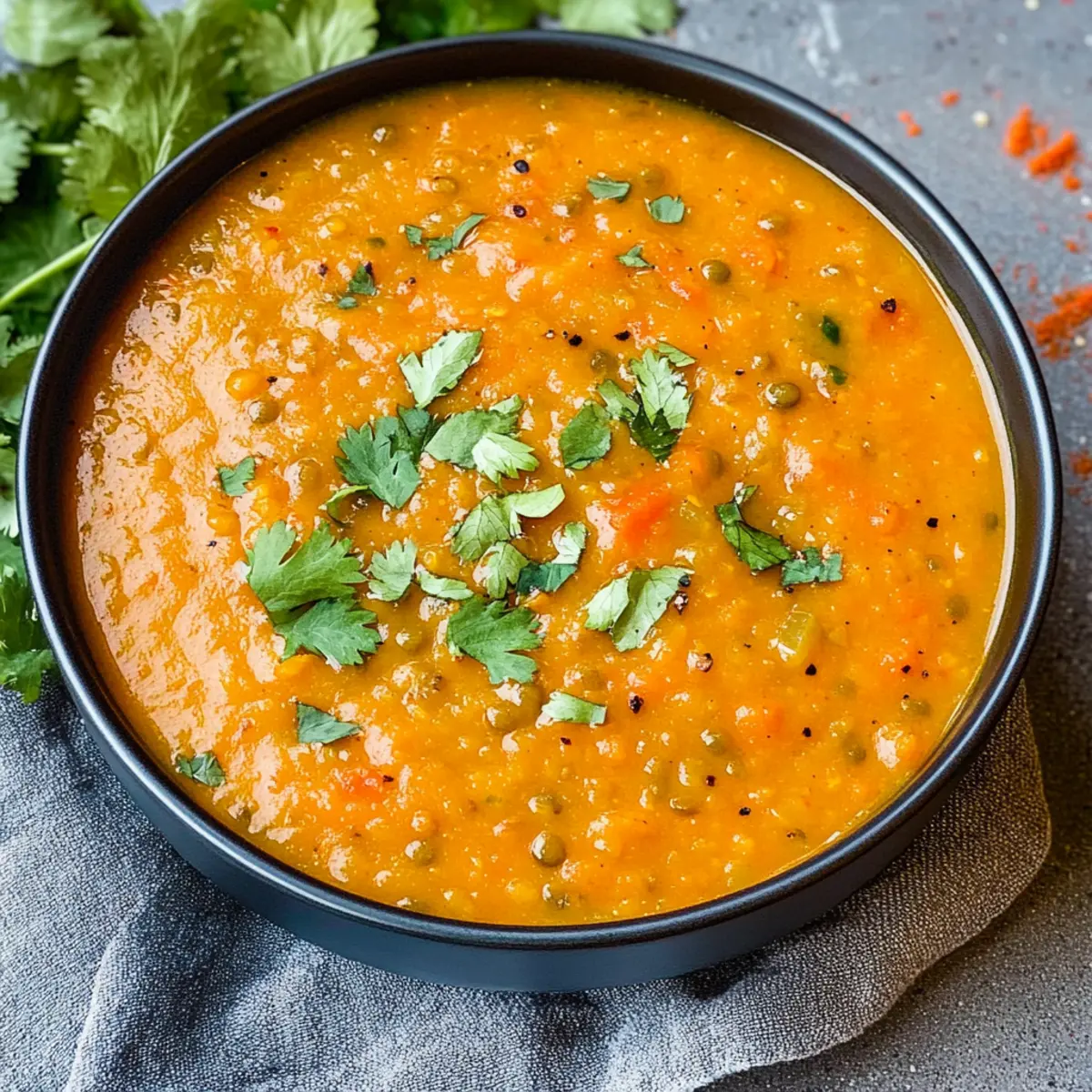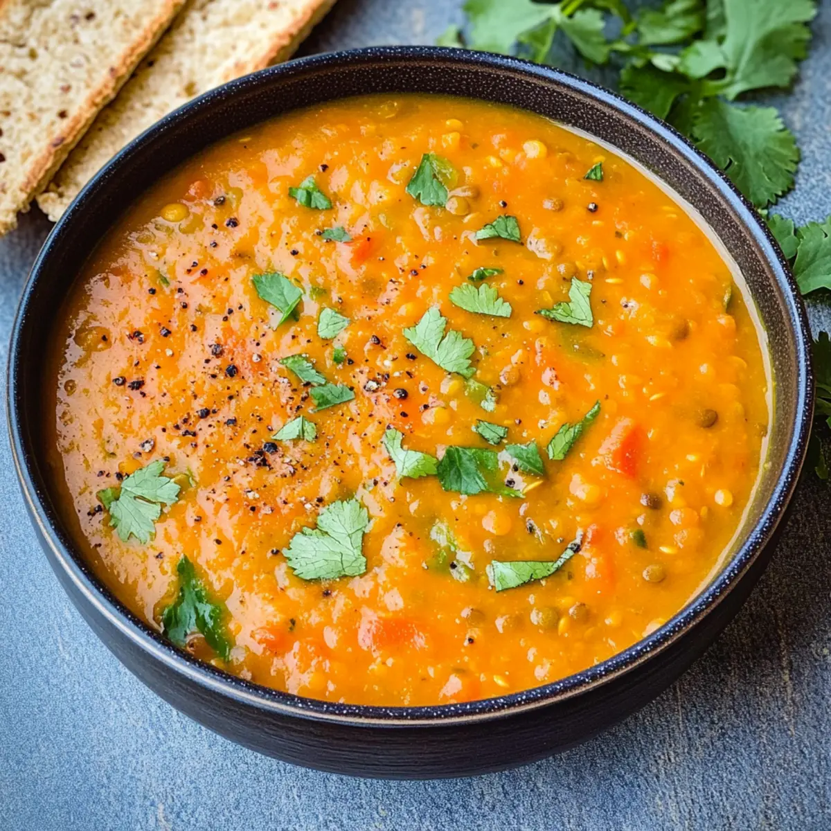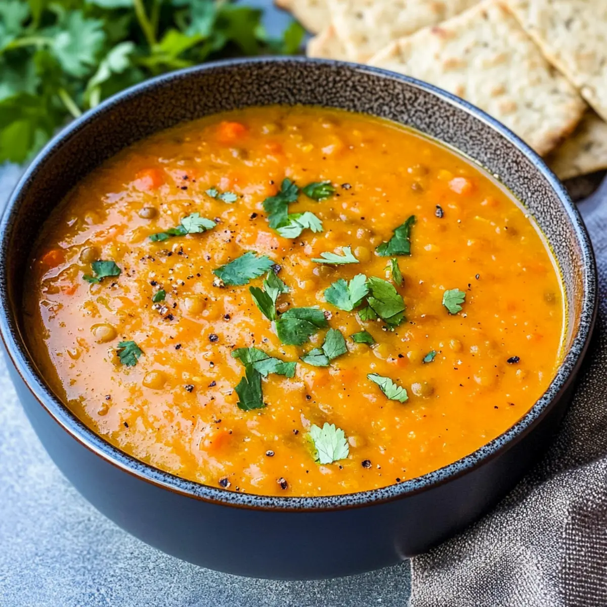 Jump to Recipe Print RecipeAs the crisp air settles in, there’s nothing quite like the warm embrace of a hearty bowl of soup to lift your spirits. This Spiced Carrot and Lentil Soup is not just any soup; it’s a colorful, nutritious haven packed with sweet carrots and protein-rich lentils—perfect for cozy evenings. The best part? This one-pot meal combines comfort and health seamlessly, making it an ideal solution for busy weeknights while being entirely vegan. Plus, you can easily adjust the spice levels to suit everyone’s palate, ensuring that every family member can enjoy it. Ready to discover how to create this delightful dish that warms both the body and soul? Let’s dive in! Why is This Soup a Must-Try? Unforgettable Flavor: This Spiced Carrot and Lentil Soup bursts with vibrant spices and sweet carrots, creating a bowl of comfort that awakens your taste buds. Easy One-Pot Meal: With minimal clean-up required, this recipe is perfect for busy weeknights. Vegan Delight: Completely plant-based, it meets the needs of vegans or anyone looking to boost their vegetable intake. Customizable Heat: You control the spice level, making it family-friendly—serve it mild or add an extra kick for those who dare! Healthy and Nourishing: Packed with protein and fiber, this soup is not only delicious but also satisfies your hunger in a wholesome way. Pair it with a slice of crusty bread or a refreshing side salad for a complete meal that your family will love—just like my Cheesy Ranch Potatoes or Chaffle Egg Cheese! Spiced Carrot and Lentil Soup Ingredients For the Base Olive Oil – Base fat for sautéing aromatics; substitute with coconut oil or avocado oil for a different flavor. Onion – Adds sweetness and depth; can be replaced with red onion or shallots for variety. Garlic – Provides robust flavor; use fresh cloves or substitute with garlic powder (¼ tsp per clove). Fresh Ginger – Enhances warmth and flavor; can substitute with ½ tsp ground ginger if needed. For the Soup Spices – Ground cumin, coriander, turmeric, and smoked paprika deliver the soul of the soup; feel free to experiment with curry powder or garam masala for unique flavor profiles. Red Chili Flakes – Adds heat; adjust to taste or omit for a milder soup experience. Tomato Puree – Adds richness; canned crushed tomatoes or tomato sauce can work well as alternatives. Carrots – Provides natural sweetness and vibrant color; sweet potatoes or butternut squash are tasty substitutes. Red Lentils – Cook quickly and break down for a creamy texture; brown lentils can be used but may yield a different consistency. Vegetable Broth – Delivers a flavorful soup base; opt for low-sodium versions if preferred. Salt and Pepper – Essential for seasoning to taste. For Garnish Fresh Cilantro (optional) – Adds a burst of freshness; sprinkle before serving for a pop of color. Step‑by‑Step Instructions for Spiced Carrot and Lentil Soup Step 1: Sauté Aromatics In a large pot, heat 2 tablespoons of olive oil over medium heat. Add one chopped onion and sauté for about 5–7 minutes until the onion is translucent and aromatic. This step lays the flavor foundation for your Spiced Carrot and Lentil Soup, filling your kitchen with a comforting aroma. Step 2: Add Garlic and Ginger Next, stir in 2 minced garlic cloves and 1 tablespoon of grated fresh ginger. Cook for an additional 1–2 minutes, stirring frequently, until the mixture becomes fragrant. The garlic and ginger add depth and warmth, making your soup invitingly aromatic. Step 3: Incorporate Spices Sprinkle in 1 teaspoon each of ground cumin, coriander, turmeric, and smoked paprika, along with a pinch of red chili flakes. Cook the spices for 1–2 minutes, allowing them to bloom in the oil. You’ll notice their vibrant colors and rich scents enveloping your kitchen, enhancing the essence of your Spiced Carrot and Lentil Soup. Step 4: Add Tomato Puree Mix in a 14-ounce can of tomato puree and cook for about 1 minute, stirring to combine. This will thicken the soup base and introduce a tangy richness that complements the spices. The mixture should look smooth and slightly darker in color. Step 5: Combine Carrots Add 4 chopped carrots to the pot, stirring them into the aromatic mixture. Sauté the carrots for 2–3 minutes, allowing them to slightly soften. Their natural sweetness will start to emerge, enriching the overall flavor profile of your Spiced Carrot and Lentil Soup. Step 6: Add Lentils and Broth Incorporate 1 cup of rinsed red lentils and 4 cups of vegetable broth into the pot. Bring the mixture to a boil, then reduce the heat to low. Simmer for about 25–30 minutes until the lentils are tender and the soup thickens, turning a beautiful orange hue. Step 7: Blend for Texture Using an immersion blender, carefully blend the soup to your desired consistency. Blend until the soup is smooth for a creamy texture, or pulse lightly for a chunkier version. This step allows you to achieve the perfect mouthfeel in your Spiced Carrot and Lentil Soup. Step 8: Season to Taste Remove the pot from heat and season with salt and pepper to taste. Stir well to ensure the seasoning is evenly distributed, enhancing the flavors of the soup. The final taste should be well-balanced, showcasing the warmth of the spices and sweetness of the carrots. Step 9: Serve and Garnish Ladle the hot soup into bowls and garnish with fresh cilantro, if desired. Serve your Spiced Carrot and Lentil Soup immediately, pairing it with a slice of crusty bread or a refreshing salad for a delightful meal. Enjoy the warmth you created in each spoonful! Spiced Carrot and Lentil Soup Variations Feel free to unleash your culinary creativity with these delightful twists to enhance your soup experience! Sweet Potato Swap: Replace carrots with sweet potatoes for a richer sweetness and creamier texture that pairs wonderfully with the spices. The natural sugars in sweet potatoes caramelize beautifully and enhan