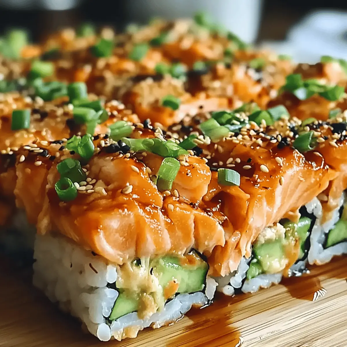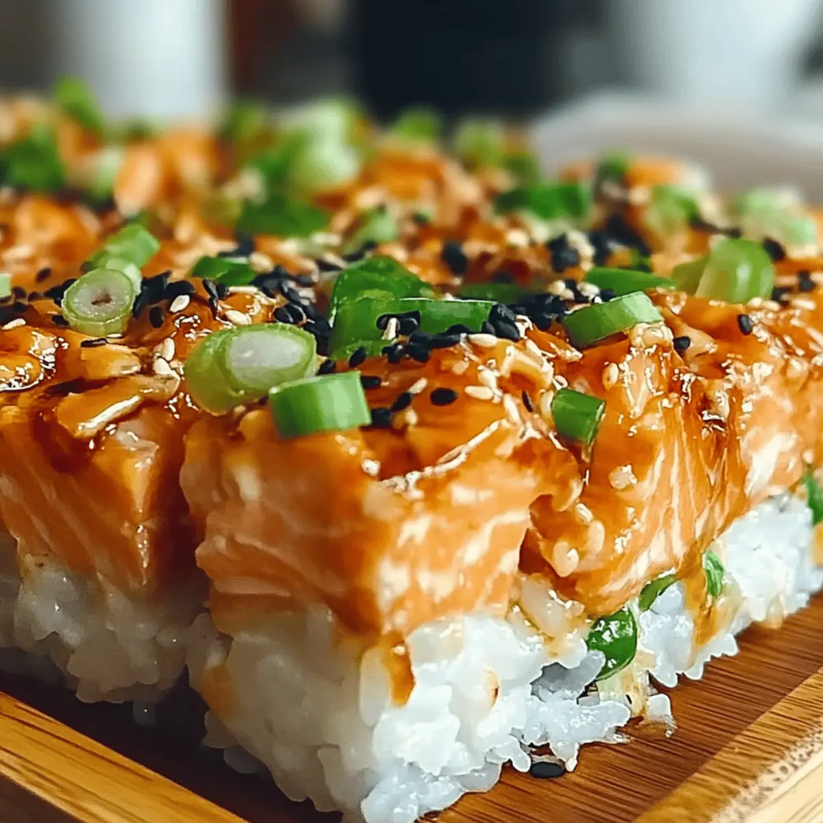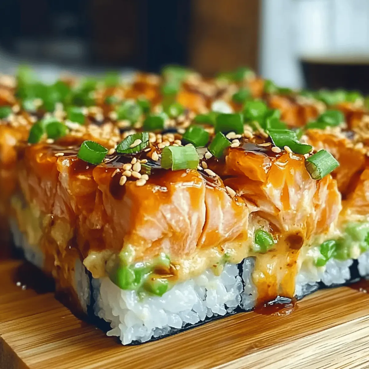Jump to Recipe Print RecipeThere’s a special type of comfort that comes from a warm, cheesy dish straight from the oven, especially when it’s packed with the irresistible flavors of sushi. My Spicy Salmon Sushi Bake takes everything you love about sushi—creamy textures, spicy kicks—and transforms it into an easy-to-make casserole that’s perfect for sharing. Ideal for weeknight dinners or potluck gatherings, you’ll appreciate the simplicity and the delightful tastes that come together effortlessly. Plus, it’s freezer-friendly, making it a great choice for meal prep. Ready to dive into this comforting sushi-inspired dish? Let’s get cooking! Why Will You Love This Bake? Simplicity at Its Best: You’ll love how easy it is to whip up this charming casserole without any sushi rolling skills required. Rich, Creamy Flavors: The blend of salmon, creamy mayonnaise, and melted cheese creates a mouthwatering experience that’s both indulgent and satisfying. Customizable Variations: Whether you prefer shrimp or want a vegetarian twist with tofu, this recipe is versatile enough to cater to any preference! Perfect for Sharing: Ideal for gatherings, this Spicy Salmon Sushi Bake is a showstopper that everyone will enjoy while keeping the clean-up minimal. Crowd-Pleasing Comfort: With the flavors of sushi in a cozy casserole form, this dish is sure to impress at your next potluck—just like my Chocolate Croissant Bake or Spicy Ramen Minutes that are equally delightful! Spicy Salmon Sushi Bake Ingredients Get ready to create this comforting masterpiece with the following ingredients! For the Rice Base • 2 cups cooked sushi rice – Use short-grain rice for a stickier texture that holds together beautifully. • 1 tablespoon rice vinegar – Adds a tangy element that balances the dish perfectly. • ½ teaspoon sugar – Enhances flavor; you can omit it for a less sweet version. • ½ teaspoon salt – Essential for seasoning the rice; adjust based on dietary needs. For the Salmon Mixture • 12 oz skinless salmon fillet, cooked and flaked – The star of this dish, providing rich protein and flavor; can substitute with cooked shrimp or tofu. • ¼ cup mayonnaise – Adds creaminess; Japanese mayo or Greek yogurt works well for a lighter option. • 2 tablespoons Sriracha sauce – Lends a delightful heat to the recipe; adjust according to your spice preference. • 1 tablespoon soy sauce – Brings umami flavor to the mix; tamari is a fantastic gluten-free swap. • 1 teaspoon sesame oil – Contributes depth; consider omitting if you need a nut-free option. For the Topping • ½ cup shredded mozzarella cheese – Creates a gooey texture on top; mixing it with cheddar can introduce a different flavor profile. • 2 sheets roasted seaweed (nori), cut into small squares – Adds authenticity and a crunchy element when serving. • 2 green onions, thinly sliced – These add a pop of color and flavor balance; chives can be used if green onions aren’t available. • 1 tablespoon toasted sesame seeds – Provides a nutty crunch as a garnish; consider omitting if you have a sesame allergy. With these ingredients, you’re well on your way to creating a Spicy Salmon Sushi Bake that’s both delicious and memorable! Step‑by‑Step Instructions for Spicy Salmon Sushi Bake Step 1: Preheat and Prepare Begin by preheating your oven to 400°F (200°C). While the oven warms, lightly grease an 8×8-inch baking dish with cooking spray or a touch of oil to prevent sticking. This will ensure your Spicy Salmon Sushi Bake comes out perfectly and is easy to serve later. Step 2: Mix the Rice Base In a large bowl, combine 2 cups of cooked sushi rice with 1 tablespoon of rice vinegar, ½ teaspoon of sugar, and ½ teaspoon of salt. Stir the mixture until evenly coated, allowing the rice to absorb all the flavors. Once well mixed, firmly press the seasoned rice into the bottom of your prepared baking dish, creating a solid base. Step 3: Combine the Salmon Mixture In another bowl, combine the 12 oz of flaked, cooked salmon with ¼ cup of mayonnaise, 2 tablespoons of Sriracha sauce, 1 tablespoon of soy sauce, and 1 teaspoon of sesame oil. Mix everything thoroughly until smooth and well incorporated. The texture should be creamy and spreadable, perfect for layering over the rice. Step 4: Layer and Top Spread the salmon mixture evenly over the rice layer in your baking dish, ensuring every corner is covered. Once smoothed out, sprinkle ½ cup of shredded mozzarella cheese on top, creating a luscious, gooey layer that will melt beautifully during baking. The coatings should look rich and inviting. Step 5: Bake the Dish Carefully place the baking dish in your preheated oven and bake for 18-20 minutes. Keep an eye on it until the cheese is melted and bubbly, achieving a golden hue. This is where the magic happens, transforming your Spicy Salmon Sushi Bake into a warm and comforting delight. Step 6: Cool and Garnish Once baked, remove the dish from the oven and let it cool for a few minutes. This allows the layers to set slightly, making it easier to serve. After cooling, garnish with thinly sliced green onions and a sprinkle of toasted sesame seeds for added flavor and color. Serve warm with the roasted seaweed squares on the side for an authentic touch. Storage Tips for Spicy Salmon Sushi Bake Fridge: Store any leftovers in an airtight container for up to 3 days. Make sure to cover the dish tightly to keep it fresh and prevent drying out. Freezer: This Spicy Salmon Sushi Bake can be frozen for up to 2 months. Cut it into portions, wrap each piece tightly in plastic wrap, and then in foil before placing it in a freezer-safe bag. Reheating: To reheat, thaw overnight in the fridge and bake in a preheated oven at 350°F (175°C) for 15-20 minutes until warmed through. Enjoy the creamy, spicy goodness! Make-Ahead: You can assemble the Spicy Salmon Sushi Bake in advance and store it in the fridge for up to 2 days be