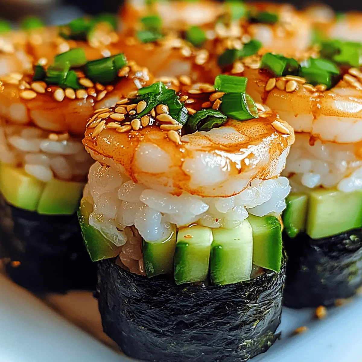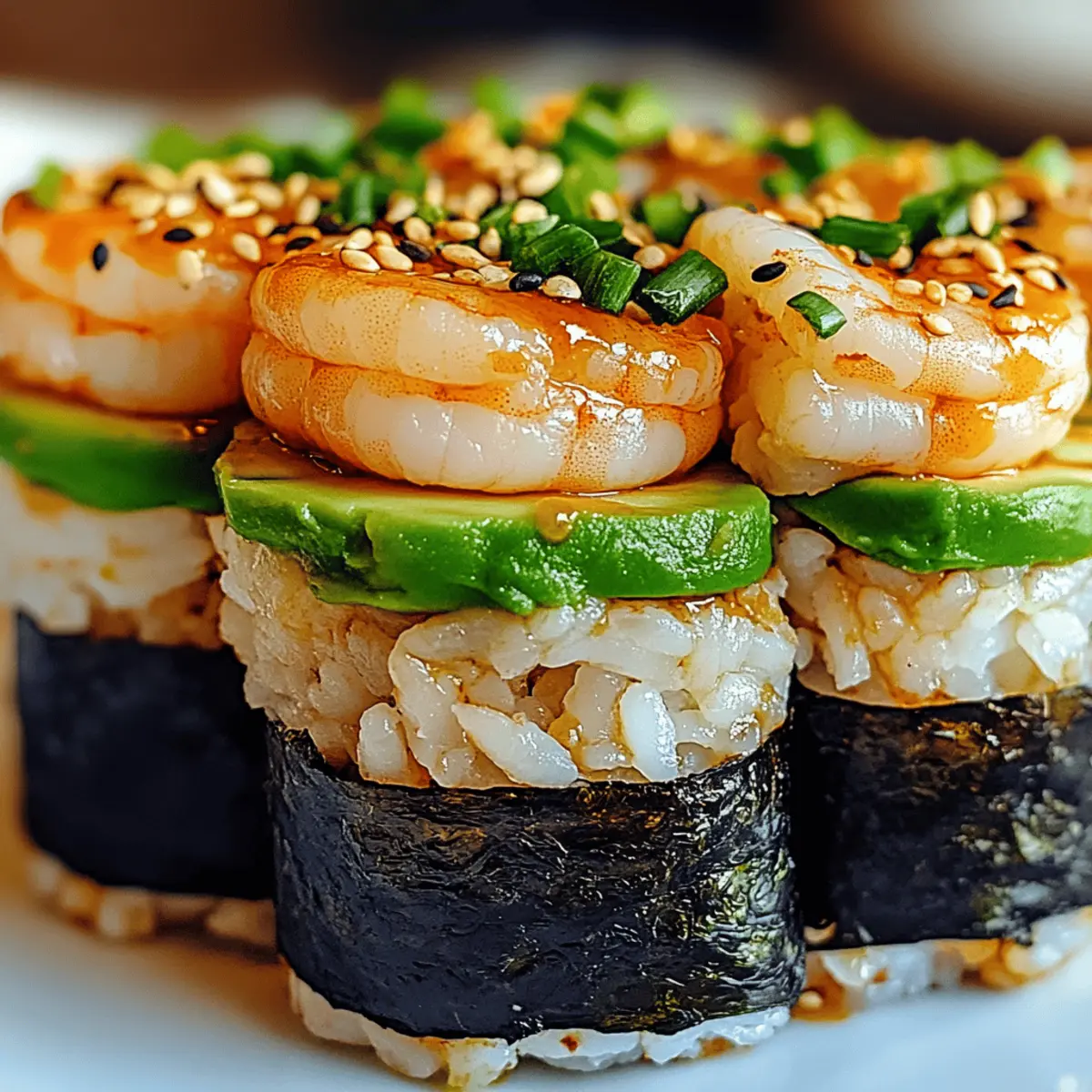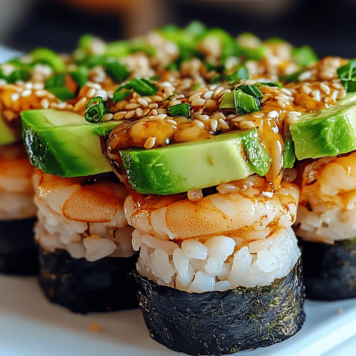 Jump to Recipe Print RecipeThe aroma of spicy shrimp sizzling in a pan perfectly captures the essence of culinary adventure. As I whisked together the creamy spicy mayo, excitement bubbled within me—what could transform a simple meal into a culinary masterpiece? Enter the Spicy Shrimp Sushi Stacks, a fun and impressive dish that balances heat and flavor while showcasing your kitchen skills. Not only are these stacks visually stunning, but they also come together with minimal fuss, making them a delightful option for gatherings or a cozy dinner at home. Imagine layering tender shrimp, creamy avocado, and crunchy cucumbers over seasoned sushi rice, all topped with a drizzle of spicy goodness. It’s the kind of dish that sparks joy and elevates any meal. Are you ready to roll up your sleeves and dive into this delicious seafood creation? Why Are Spicy Shrimp Sushi Stacks Exceptional? Flavor Explosion: Each bite bursts with a perfect blend of spicy shrimp, creamy avocado, and zesty mayo—an unforgettable taste journey. Visual Appeal: These stacks are not just food; they’re a stunning centerpiece for your table, impressing guests with their vibrant colors. Quick & Easy: With simple steps, you’ll have a gourmet dish ready in no time, making it perfect for busy weeknights or special occasions. Versatile Options: Customize your stacks by swapping shrimp for crab or adding extra veggies like bell peppers for a personal touch. Perfect for Sharing: Elevate your gatherings with this crowd-pleaser that’s fun to assemble and enjoy together, just like my Shrimp Sushi Stacks and Strawberry Shortcake Sushi. Spicy Shrimp Sushi Stacks Ingredients For the Spicy Shrimp • Shrimp – fresh or frozen, large, peeled, and deveined works best to deliver maximum flavor. • Spicy Mayo – a blend of mayonnaise and sriracha adds a creamy kick; adjust to your taste for more heat. For the Sushi Rice • Sushi Rice – seasoned with rice vinegar for flavor; remember to cook it sticky for easy stacking. For the Avocado & Veggies • Avocado – ripe and creamy; it beautifully balances the spiciness of the shrimp and mayo. • Cucumbers – thinly sliced for a refreshing crunch; jicama can be used alternatively for a slight variation. Optional Ingredients • Seaweed Sheets – use these for traditional sushi flair or a pop of color on your plate. Step‑by‑Step Instructions for SPICY SHRIMP SUSHI STACKS Step 1: Prepare the Sushi Rice Start by rinsing 1 cup of sushi rice under cold water until the water runs clear. Cook the rice according to package instructions, usually in a rice cooker or pot. Once cooked, transfer the rice to a bowl and gently fold in 2 tablespoons of rice vinegar while it’s still warm. Allow the rice to cool to room temperature, ensuring it’s sticky enough for easy stacking in your Spicy Shrimp Sushi Stacks. Step 2: Cook the Shrimp In a skillet over medium-high heat, add a drizzle of oil and line up your shrimp, cooking until they turn pink and opaque, about 2-3 minutes per side. Once cooked, remove them from heat and toss in a bowl with 2-3 tablespoons of spicy mayo until evenly coated. The heat and flavor will start to meld, creating the perfect addition to your sushi stacks. Step 3: Prepare the Vegetables While the shrimp cools, slice a ripe avocado and one cucumber into thin rounds or strips, ensuring they are ready for layering. For the avocado, a sharp knife will help catch the creamy texture, while the cucumber should be crisp for a refreshing crunch. Set these aside, ready to complement the spicy shrimp in your flavorful stacks. Step 4: Assemble the Stacks Using a serving ring or a round mold, start by placing a layer of sushi rice at the bottom, pressing gently to compact it. Next, add a layer of the spicy shrimp, followed by a layer of cucumber and avocado. Repeat these layers until the stacks reach your desired height. This process not only builds flavor but visually represents the delightful components of SPICY SHRIMP SUSHI STACKS. Step 5: Serve and Garnish Once assembled, carefully lift the ring to reveal your colorful stacks. Drizzle extra spicy mayo on top for an extra kick and add optional seaweed sheets for a touch of tradition. Serve your beautiful SPICY SHRIMP SUSHI STACKS with a side of soy sauce and pickled ginger for dipping, creating an impressive and mouthwatering presentation for your guests. Expert Tips for Spicy Shrimp Sushi Stacks Perfect Shrimp: Cook shrimp just until pink to keep them tender; overcooking leads to rubbery texture. Sticky Rice: Ensure sushi rice is sticky enough for stacking; rinse well and mix with vinegar while warm. Layering Technique: Use a mold for uniform heights—this keeps your SPICY SHRIMP SUSHI STACKS looking neat and appealing. Taste Fusion: Let spicy mayo sit for at least 15 minutes to enhance flavors before tossing with shrimp. Veggie Options: Add extra veggies like bell peppers or radishes for pops of color and crunch; create a personal twist! What to Serve with Spicy Shrimp Sushi Stacks The perfect accompaniment can elevate your Spicy Shrimp Sushi Stacks into a delightful dining experience that lingers in the memory. Crispy Seaweed Salad: This light and refreshing salad adds a salty crunch that pairs beautifully with the rich flavors of the stacks. Miso Soup: A warm bowl of miso soup complements the sushi stacks, providing a savory balance that enhances the meal’s overall experience. Edamame: Steamed and lightly salted, these green soybeans are a delightful snack that introduces a fresh pop of flavor and nutrition. Pickled Ginger: Serve alongside for a palate-cleansing bite between layers of spicy shrimp and creamy avocado, enhancing each taste sensation. Chilled Sake: A glass of chilled sake offers a sophisticated touch that matches the quality of your homemade dish, elevating your dining moment. Cucumber Mint Salad: The coolness of cucumber and the freshness of mint add a light touch, making every bite more vibrant and