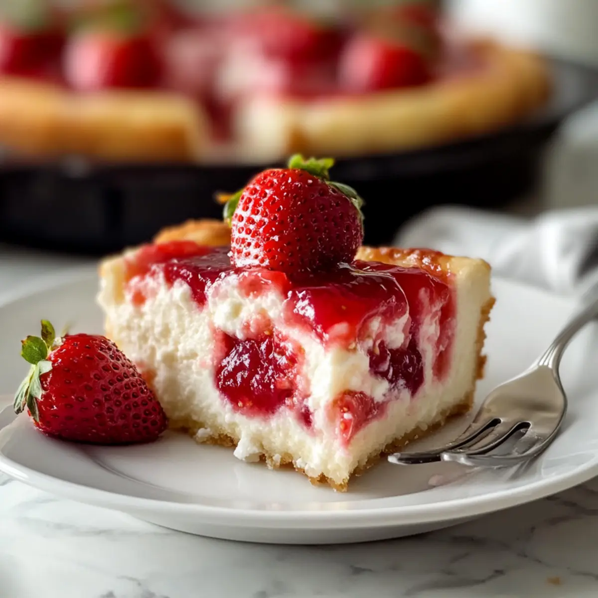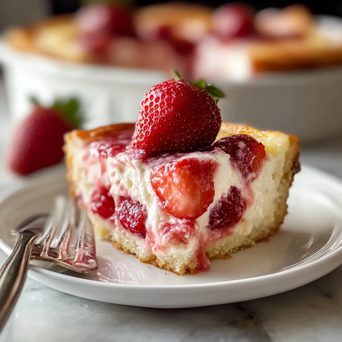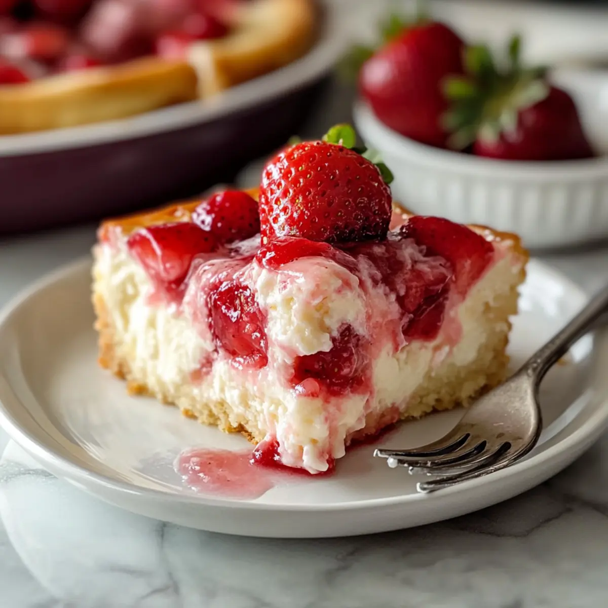 Jump to Recipe Print RecipeAs I pulled my first slice of Strawberry Cheesecake Dump Cake from the oven, the warm, inviting aroma of baked strawberries wrapped around me like a cozy hug. This delightful dessert is the perfect combination of creamy cheesecake and fruity sweetness, all wrapped in one easy-to-make treat. What makes this Strawberry Cheesecake Dump Cake special is not just its mouthwatering taste but also how quickly it comes together—ready in under an hour! Plus, its no-fuss “dump” method means you can enjoy homemade goodness without the stress of complicated baking. Whether you’re looking to impress at your next gathering or simply whip up something comforting for a quiet night at home, this dessert is a true crowd-pleaser. Ready to dive into the deliciousness? Let’s get baking! Why Is This Dessert So Irresistible? Quick and Easy: No need to spend hours in the kitchen; this Strawberry Cheesecake Dump Cake is put together in just about an hour! Delicious Layers: The creamy cheesecake base combined with fruity strawberry filling creates a flavor explosion that’s hard to resist. Versatile Options: Feel free to swap the strawberries for blueberries or cherries to switch things up, making it adaptable for any palate. Perfect for Any Occasion: Whether it’s a casual family dinner or a festive get-together, this cake is a showstopper that will leave your guests raving. Serve Warm: Enjoy it fresh from the oven for the ultimate indulgence—add a scoop of ice cream or a dollop of whipped cream for that extra touch! For more delicious recipes, don’t miss my Berry Peach Cheesecake or the delightful Churro Cheesecake Indulge. Strawberry Cheesecake Dump Cake Ingredients For the Cheesecake Layer • Cream Cheese – Provides a creamy, rich texture; Neufchâtel cheese can be used for a lighter version. • Granulated Sugar – Adds sweetness to the cheesecake layer; no substitutes recommended for this key ingredient. • Vanilla Extract – Infuses flavor and enhances sweetness; can be substituted with almond extract for a different flavor profile. For the Strawberry Base • Strawberry Pie Filling – Forms the fruity base of the cake; alternative options include blueberry or cherry pie fillings. • Fresh Strawberries – Adds freshness and a burst of flavor; can replace with other fresh fruits like raspberries. For the Cake Mixture • Yellow Cake Mix – Serves as the dry bulk of the cake; a gluten-free cake mix can be used for gluten-sensitive individuals. • Unsalted Butter – Provides moisture and richness to the cake mix; vegetable oil can be used for a dairy-free option. • Milk – Incorporates moisture into the cake mix; any non-dairy milk can be used if desired. • Cinnamon (optional) – Enhances flavor and adds warmth; omit if not preferred or add nutmeg for variation. Make sure these ingredients are on your shopping list to create the delightful Strawberry Cheesecake Dump Cake that everyone will love! Step‑by‑Step Instructions for Strawberry Cheesecake Dump Cake Step 1: Preheat and Prepare Begin by preheating your oven to 350°F (175°C). While the oven warms up, lightly grease a 9×13-inch baking dish with cooking spray or butter. This will ensure your Strawberry Cheesecake Dump Cake releases easily once baked. Gather all your ingredients for an efficient cooking experience! Step 2: Mix the Cream Cheese Filling In a mixing bowl, combine softened cream cheese, granulated sugar, and vanilla extract. Using a hand mixer or a spatula, blend the mixture until it becomes smooth and creamy. This should take about 2-3 minutes. Be sure there are no lumps; this will ensure a lovely texture in your cheesecake layer. Step 3: Layer the Strawberry Base Spread the strawberry pie filling evenly across the bottom of the prepared baking dish. Next, artfully layer fresh strawberries on top of the pie filling, ensuring they are distributed evenly. This vibrant layer not only adds flavor but also creates a beautiful presentation for your Strawberry Cheesecake Dump Cake. Step 4: Add the Cream Cheese Mixture Pour the creamy cream cheese mixture over the layered strawberries, gently spreading it to cover the fruit evenly. Take care not to disturb the fruit layer too much; you want those beautiful strawberries to shine through once baked. This will create a delightful creamy layer in your dessert. Step 5: Prepare the Cake Mixture In a separate bowl, combine the yellow cake mix with melted unsalted butter and milk. Stir until just combined, being cautious not to overmix; a few lumps are perfectly fine. This cake mix will form the topping for the Strawberry Cheesecake Dump Cake, lending it moisture and sweetness. Step 6: Top and Sprinkle Pour the cake mixture evenly over the cream cheese layer, using a spatula to smooth it out gently. If desired, sprinkle a touch of cinnamon over the top for an aromatic kick. This adds warmth to your cake, enhancing the overall flavor profile beautifully. Step 7: Bake to Perfection Place the baking dish in the preheated oven and bake for 40-45 minutes. Keep an eye on it; you’re looking for a golden brown top and bubbling edges. When done, the aroma will fill your kitchen, signaling that your Strawberry Cheesecake Dump Cake is ready to be enjoyed! Step 8: Cool and Serve Once baked, carefully remove the dish from the oven and allow it to cool for about 10-15 minutes. This cooling period helps the layers to set properly. Serve warm for the best flavor, and consider adding a dollop of whipped cream or a scoop of ice cream on top for a truly indulgent experience! Make Ahead Options These Strawberry Cheesecake Dump Cakes are a fantastic option for meal prep, allowing you to enjoy homemade indulgence with minimal hassle! You can prepare the cream cheese mixture and layer it over the strawberries up to 24 hours in advance; simply cover tightly and refrigerate to maintain freshness. Additionally, the cake mixture can be prepped and stored separately in