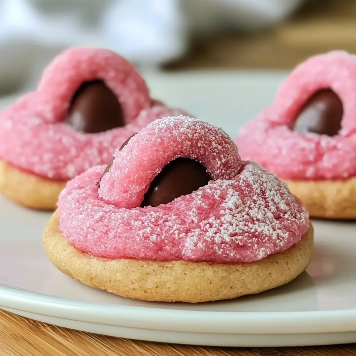 • Optional: Powdered sugar or pink granulated sugar – Roll your dough balls in this for an eye-catching finish; any decorative sugar adds a fun touch!