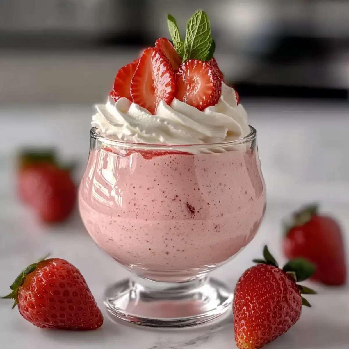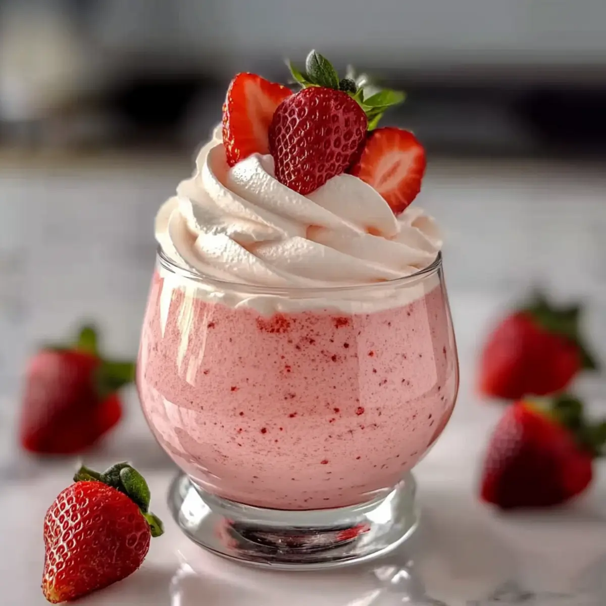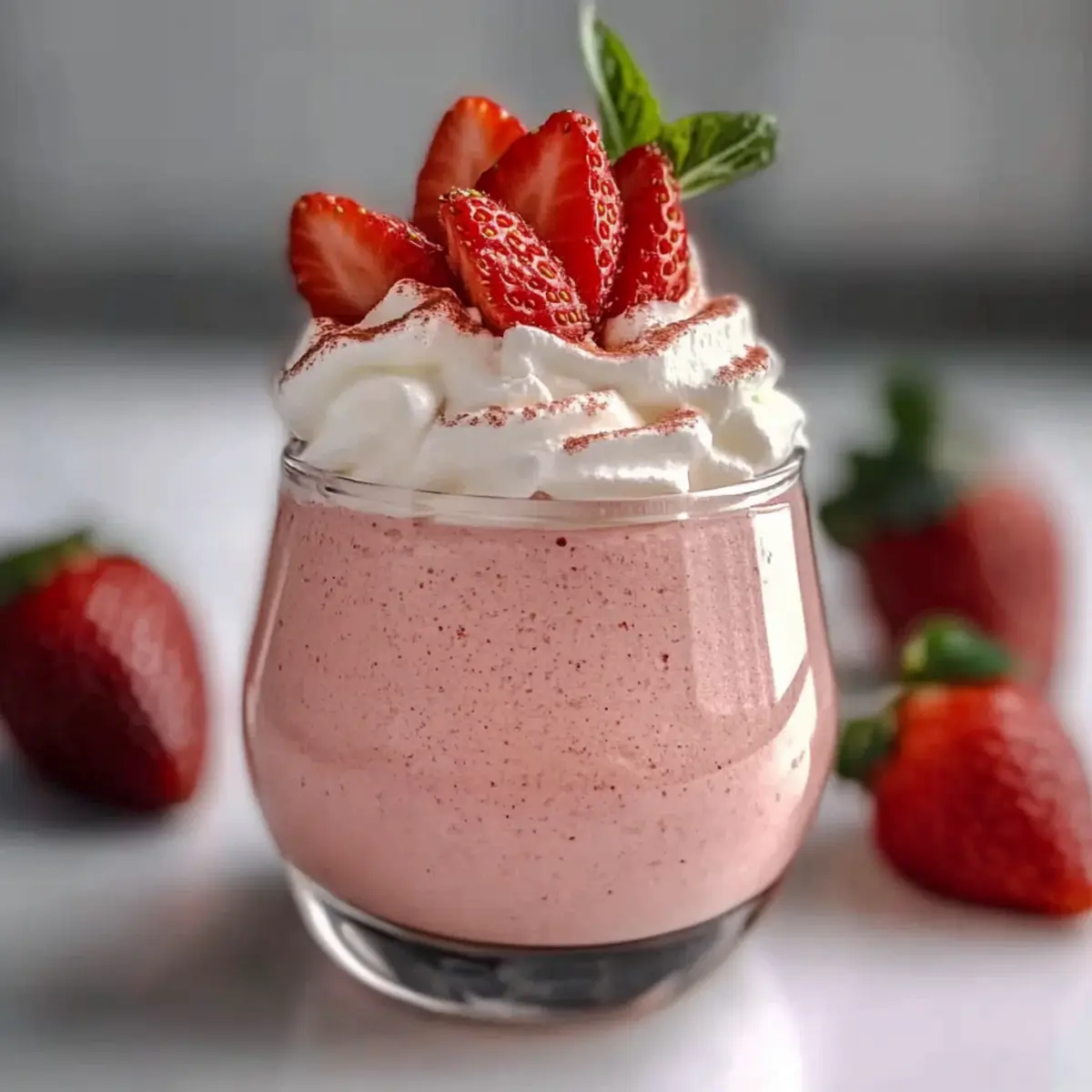 Jump to Recipe Print RecipeAs I savored my first spoonful of this elegant no-cook Strawberry Mousse, the light, airy texture transported me back to sun-soaked summer picnics filled with laughter and joy. This Strawberry Mousse Recipe captures the essence of fresh strawberries, offering a simple yet decadent dessert that requires no cooking at all. With minimal ingredients and just a bit of patience in chilling, you can whip up this delightful treat that’s perfect for warm days or as a sweet ending to any meal. Not only is it a crowd-pleaser, but it’s also vegetarian-friendly and easy to customize to fit your taste preferences. Curious about how to transform ripe strawberries into a fluffy masterpiece? Keep scrolling, and let’s dive into this delightful recipe together! Why is Strawberry Mousse a Must-Try? Simplicity at Its Best: This no-cook Strawberry Mousse is a breeze to create, making it perfect for both novice and experienced chefs. Decadent Flavor: Delight in the harmony of fresh strawberries and creamy whipped cream that dance together in every spoonful. Versatile Treat: Whether you’re serving it at a picnic or as a fancy dinner party dessert, this mousse complements any occasion beautifully. Crowd Appeal: With its stunning presentation and light texture, it’s sure to impress guests of all ages and palates. Make-Ahead Convenience: Prepare it in advance to save time, allowing you to enjoy your event without stress. For a refreshing salad to pair with your mousse, try this Strawberry Spinach Salad or whip up a fun dessert roll like the Strawberry Shortcake Sushi. Get ready to enjoy a truly unforgettable treat! Strawberry Mousse Recipe Ingredients For the Mousse Fresh Strawberries – Provides natural sweetness and essential flavor; frozen strawberries can substitute if fresh is unavailable. Granulated Sugar – Enhances sweetness and draws out juices from the strawberries; feel free to reduce the amount for a lighter touch. Heavy Cream – Creates the mousse’s rich texture and volume; ensure it’s cold for the best whipping results. Vanilla Extract – Adds depth of flavor, enhancing the overall sweetness and complexity of the mousse. Unflavored Gelatin – Supports the mousse in setting while maintaining a fluffy texture; consider using agar-agar for a vegetarian alternative. Warm Water – Used to dissolve gelatin, ensuring a smooth integration into the strawberry mousse mix. This Strawberry Mousse Recipe highlights the irresistibly sweet flavor of fresh strawberries, making it a delightful treat! Step‑by‑Step Instructions for Strawberry Mousse Recipe Step 1: Prepare Puree Start by hulking fresh strawberries and placing them in a blender or food processor. Blend until you achieve a smooth puree, ensuring there are no chunks. Transfer the puree to a mixing bowl, then add granulated sugar, stirring gently. Allow the mixture to sit for about 10 minutes, letting the sugar draw out the strawberries’ delicious juices and enhancing their natural sweetness. Step 2: Whip the Cream While the strawberry mixture rests, chill a mixing bowl and beaters in the freezer for about 10 minutes. Once cooled, pour in the heavy cream along with vanilla extract. Using an electric mixer, whip the cream on medium speed until soft peaks form, which takes around 2-4 minutes. You should see the cream thickening and becoming fluffy, ready to create that luscious mousse texture. Step 3: Combine Ingredients Gently fold the strawberry puree into the whipped cream using a spatula. Start by adding a small amount of the whipped cream to the puree to lighten it, then carefully fold in the remaining mixture. Take your time, ensuring you maintain the airy texture of the whipped cream while the vibrant flavors of the Strawberry Mousse Recipe meld beautifully. Step 4: Incorporate Gelatin In a small bowl, dissolve unflavored gelatin in warm water, stirring until completely melted. Let the mixture cool slightly for a minute. Gradually add the gelatin mixture to the strawberry and cream combination, gently stirring to incorporate it evenly. This step is essential for the mousse to set properly while keeping that delightful fluffy consistency intact. Step 5: Chill Once everything is thoroughly mixed, pour the strawberry mousse into serving glasses or bowls. Cover them with plastic wrap or lids, and place them in the refrigerator for at least 4 hours, or until fully set. During this time, the mousse will firm up into a delightful creamy texture that is simply irresistible and ready to impress upon serving. Storage Tips for Strawberry Mousse Fridge: Keep your Strawberry Mousse tightly covered in the refrigerator for up to 2 days to maintain its fresh flavor and light texture. Freezer: Although freezing is not recommended for this mousse due to its delicate texture, if you choose to freeze it, store in an airtight container for up to 1 month. Thaw in the fridge before serving. Serving Reminders: Rewhip the cream lightly if the mousse has lost some air after storage, ensuring it regains its fluffy consistency before enjoying. Make Ahead Options These Strawberry Mousse delights are perfect for meal prep enthusiasts! You can prepare the strawberry puree and whip the cream up to 24 hours in advance, storing them separately in the refrigerator for optimal freshness. Simply blend fresh strawberries with sugar as outlined and refrigerate; whip the heavy cream and keep it chilled until you’re ready to combine them. When it’s time to serve your Strawberry Mousse, gently fold the two components together with the dissolved gelatin before pouring them into serving glasses. This makes assembly a breeze and ensures that your dessert tastes just as delicious, saving you time on busy occasions while still impressing your guests! What to Serve with Elegant No-Cook Strawberry Mousse Create the perfect meal around this delightful, creamy dessert that brings summer vibes to the table. Fresh Berry Compote: A sweet-tart toppin
