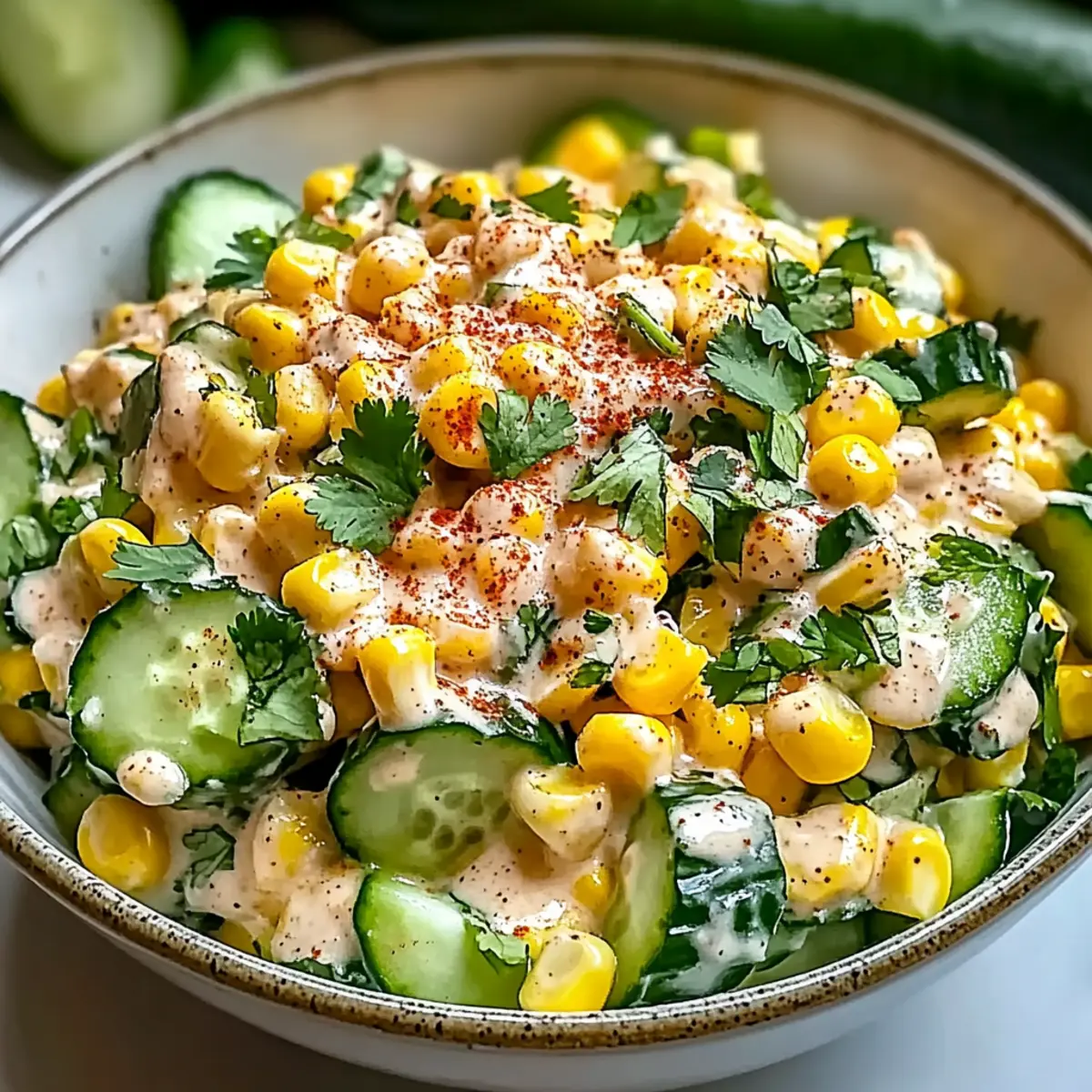 Jump to Recipe Print RecipeAs the warm summer sun shines down, I can’t help but crave the vibrant flavors of the season. This Street Corn Creamy Cucumber Salad captures that essence perfectly, combining the smoky sweetness of Mexican street corn with the crispness of fresh cucumbers. Tossed in a zesty, creamy lime dressing, this dish is a delightful balance of flavors that’s ready to elevate your BBQ gatherings or picnic spread. Best of all, it takes less than 20 minutes to whip up, making it an ideal quick recipe that’s naturally gluten-free. Imagine impressing your friends and family with a delicious side that’s not only refreshing but also offers a fun twist with endless variation possibilities. Would you prefer a spicy kick or maybe an avocado twist? Let’s dive into this summer staple that will surely become a favorite! Why is This Salad a Must-Make? Quick & Easy: This Street Corn Creamy Cucumber Salad can be prepared in under 20 minutes, making it perfect for last-minute BBQs or picnics. Flavor Explosion: The vibrant combination of smoky corn, crunchy cucumbers, and a creamy lime dressing creates a delightful burst of flavors that your taste buds will adore. Versatile Variations: Whether you crave a spicy twist or a refreshing avocado addition, this salad can be easily customized to suit your mood or dietary preferences. Explore ideas like our Cucumber Feta Salad for even more inspiration! Crowd-Pleaser: With its visually appealing colors and satisfying textures, this dish is sure to impress guests and family alike – perfect for gatherings! Fresh & Healthy: Loaded with fresh ingredients, this dish highlights the best of summer produce while being gluten-free, so you can enjoy it guilt-free. Street Corn Creamy Cucumber Salad Ingredients For the Salad • Corn Kernels – 2 cups – Provides sweetness and texture; you can use fresh, canned, or frozen for convenience. • Cucumbers – 2 medium, sliced into half-moons – Adds crunch and freshness; opt for seedless varieties to reduce excess water. • Red Bell Pepper – ½ cup, diced – Offers color and sweetness; feel free to substitute with any sweet pepper. • Red Onion – ¼ cup, finely diced – Adds sharpness and depth; green onions can be used for a milder taste. • Fresh Cilantro – ¼ cup, chopped – Introduces a fresh herbal note; parsley makes a great alternative if you prefer. • Cotija Cheese – ½ cup, crumbled – Adds creaminess and a salty, tangy flavor; feta or Parmesan can be used as substitutes. For the Dressing • Mayonnaise – 3 tablespoons – Forms the creamy base; swap for Greek yogurt for a lighter version. • Sour Cream or Greek Yogurt – 3 tablespoons – Adds richness and tang; low-fat versions work well for a healthier alternative. • Lime Juice – Juice of 1 lime – Provides acidity and brightness; lemon juice can work as a substitute. • Chili Powder – ½ teaspoon – Adds mild spice and warmth; adjust based on your spice preference. • Smoked Paprika – ½ teaspoon – Enhances depth with a subtle smokiness; regular paprika can also be used. • Salt and Pepper – To taste – Essential for seasoning; remember to adjust salt according to the other ingredients. This Street Corn Creamy Cucumber Salad will surely become a go-to dish for your summer gatherings! Step‑by‑Step Instructions for Street Corn Creamy Cucumber Salad Step 1: Prepare Corn Start by heating a dry skillet over medium-high heat. Add 2 cups of corn kernels and sauté for 5-7 minutes, stirring occasionally until the corn is nicely charred and caramelized. This process intensifies the sweet, smoky flavors reminiscent of traditional street corn. Once cooked, remove the corn from the skillet and let it cool to room temperature. Step 2: Chop Vegetables While the corn cools, take 2 medium cucumbers and slice them into half-moons, then set them aside. Next, dice ½ cup of red bell pepper and finely chop ¼ cup of red onion. Don’t forget to chop ¼ cup of fresh cilantro as well to add a burst of freshness! These colorful veggies will add both texture and flavor to your Street Corn Creamy Cucumber Salad. Step 3: Make Dressing In a mixing bowl, combine 3 tablespoons of mayonnaise and 3 tablespoons of sour cream or Greek yogurt for a creamy base. Squeeze the juice of 1 lime into the mixture, followed by adding ½ teaspoon of chili powder and ½ teaspoon of smoked paprika. Season generously with salt and pepper to taste, then whisk the ingredients together until fully blended and creamy. Step 4: Combine Ingredients In a large serving bowl, gently fold the cooled corn, sliced cucumbers, diced bell pepper, chopped red onion, and cilantro together. This step allows the fresh, vibrant ingredients to combine, making every bite a delightful mix of flavors. Be careful not to overmix; you want to preserve the texture of each ingredient for your Street Corn Creamy Cucumber Salad. Step 5: Finish Finally, sprinkle ½ cup of crumbled cotija cheese over the top of the salad. Toss gently to combine everything, ensuring the cheese is distributed evenly without breaking it down too much. For an added touch, consider garnishing with a sprinkle of chili powder or Tajín on top. Serve immediately for the freshest taste, or refrigerate until ready to enjoy. Expert Tips for Street Corn Creamy Cucumber Salad Choose Fresh Ingredients: Bright, ripe produce enhances the flavor of your Street Corn Creamy Cucumber Salad. Freshly picked corn and crisp cucumbers will yield the best results. Don’t Rush the Charring: Take your time to char the corn properly; it’s essential for developing that authentic smoky flavor. A well-heated skillet makes all the difference. Cucumber Prep Matters: Use seedless cucumbers to minimize excess moisture. This will keep your salad crunchy and prevent it from getting soggy. Mix with Care: When combining ingredients, fold gently to maintain texture. Overmixing can break down the cucumbers and cotija cheese, 