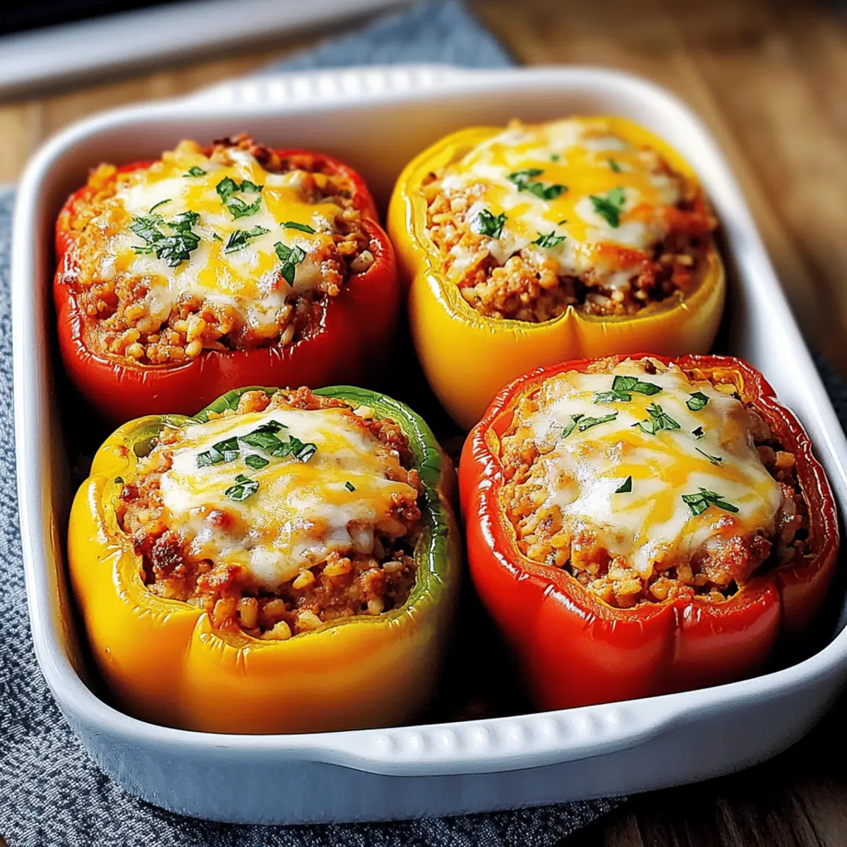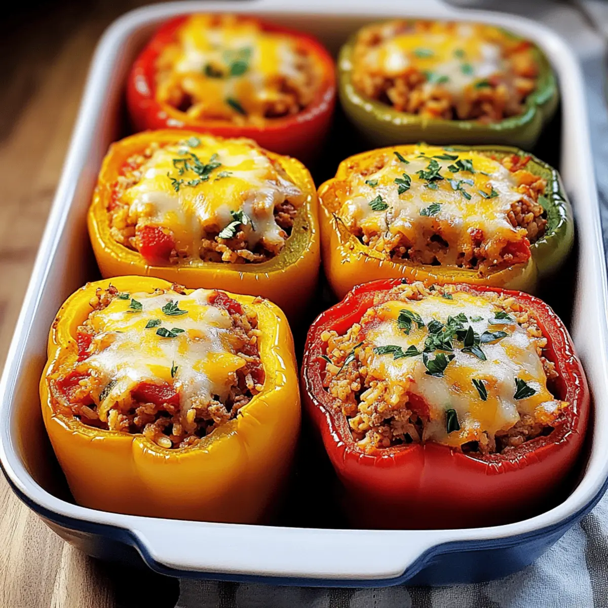 Jump to Recipe Print RecipeAs I lifted the lid on my favorite baking dish, a wave of savory scents enveloped me, instantly transporting me to comforting family dinners of my childhood. Easy Stuffed Bell Peppers have become a staple in my kitchen, and it’s easy to see why! This vibrant dish is not just a visual feast but also a customizable delight that caters to everyone’s tastes—perfect for accommodating picky eaters or adventurous foodies alike. These stuffed peppers are not only a breeze to prepare, making them ideal for busy weeknights or meal prep, but they’re also packed with wholesome ingredients that bring health and hearty satisfaction to the table. Are you ready to discover the colorful possibilities that lie beneath that peppery exterior? Why Are Stuffed Bell Peppers So Popular? **Flavorful *customization*: With a plethora of stuffing options, from classic beef and rice to vegetarian choices like quinoa and black beans, this dish is tailor-made for all dietary preferences. *Easy* meal prep: Whip up a batch in advance, and you have a delicious, ready-to-eat meal waiting for you during your busy week. **Colorful *presentation*: These stuffed jewels not only taste fantastic but also brighten up your dinner table with their vibrant hues. *Family-friendly* meal: Kids love the fun of stuffed peppers, making them a hit at family dinners! **Healthy *ingredients*: Packed with nutrients from the bell peppers and your choice of filling, these peppers bring comfort without the guilt. Dive into the magic of customizable stuffed peppers today and see why they’re a must-try! For more delicious ideas, check out our meal prep tips to keep your kitchen running smoothly. Stuffed Bell Peppers Ingredients Get ready to fill! For the Peppers Bell Peppers – Choose any color for a vibrant look; swap with poblano or zucchini for a fun twist. For the Filling Ground Meat (beef, turkey, or chicken) – A fantastic protein source; substitute ground turkey for a lighter option. Cooked Rice – Adds bulk and texture; for a healthier twist, replace with quinoa or omit for low-carb. Diced Tomatoes – Brings moisture and flavor depth; use canned tomatoes for convenience or fresh for seasonality. Onion – Aromatic backbone; shallots make a milder substitute for those who prefer less bite. Garlic – Elevates the overall flavor with its savory notes; use fresh minced or powdered based on availability. For Topping Cheese (optional) – Adds creaminess; mozzarella for a mild taste or sharp cheddar for something bolder. For Seasoning Herbs & Spices – Essential for flavor enhancement; adjust to taste with Italian seasoning, salt, and pepper—cumin and cayenne can introduce some heat. Unleash your creativity with these stuffed bell peppers and personalize each bite, making them a delightful addition to your meals! Step‑by‑Step Instructions for Deliciously Easy Stuffed Bell Peppers Step 1: Preheat the Oven Begin by preheating your oven to 375°F (190°C). While the oven warms, lightly spray a baking dish with nonstick cooking spray. This preparation ensures that your stuffed bell peppers will bake evenly and won’t stick to the dish, setting you up for a delightful, mess-free cooking experience. Step 2: Prepare the Bell Peppers Take your chosen bell peppers and slice off the tops with a sharp knife, ensuring the tops remain intact for later use. Carefully remove the seeds and membranes inside. Set the cleaned peppers aside, standing upright in the baking dish – their vibrant colors will soon shine through once they’re filled with savory goodness! Step 3: Sauté Aromatics In a medium skillet, add a splash of olive oil and heat over medium heat. Sauté the chopped onion and minced garlic for about 3-4 minutes, or until they become fragrant and translucent. This step lays the aromatic foundation for your stuffing mix, enhancing the overall flavor of your Easy Stuffed Bell Peppers. Step 4: Brown the Ground Meat Add the ground meat of your choice to the skillet with the sautéed onion and garlic. Cook the mixture for approximately 5-7 minutes, breaking it apart with a spatula, until the meat is browned and fully cooked. Drain any excess fat, if necessary, to keep the filling lean and flavorful. Step 5: Mix the Filling In a large mixing bowl, combine the browned meat with cooked rice and diced tomatoes. Stir in seasonings like salt, pepper, and Italian herbs to taste. This colorful mixture should be well-combined and fragrant—your filling for the stuffed bell peppers is now ready to transform into a hearty delight. Step 6: Stuff the Peppers Generously fill each bell pepper with the delicious mixture, pressing down slightly to pack it in. Ensure each pepper is filled to the brim with the savory stuffing. Place the stuffed peppers upright in the prepared baking dish, showcasing their beautiful colors and ready to soak up the flavors during baking. Step 7: Bake with Cover Cover the baking dish with aluminum foil and place it in the preheated oven. Bake for 30 minutes, allowing the peppers to become tender and the flavors to meld. This steaming process ensures a delicious, juicy filling and ensures your Easy Stuffed Bell Peppers are cooked through. Step 8: Add Cheese and Finish Baking After 30 minutes, carefully remove the foil and sprinkle your choice of cheese on top of each pepper, if desired. Return the dish to the oven, uncovered, and bake for an additional 10 minutes. Look for the cheese to melt and turn golden, adding a deliciously rich layer to your stuffed peppers. Step 9: Serve and Enjoy Once the peppers are beautifully golden and bubbly, remove them from the oven. Allow them to cool for a few minutes before serving. The tender peppers, paired with the savory filling, make for a vibrant and hearty dish perfect for weeknight dinners or special occasions. Stuffed Bell Peppers Variations & Substitutions Feel free to get creative and make this dish truly your own—a culinary adventure awaits yo
