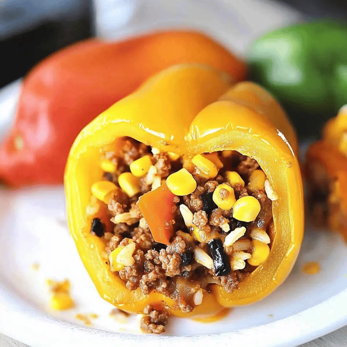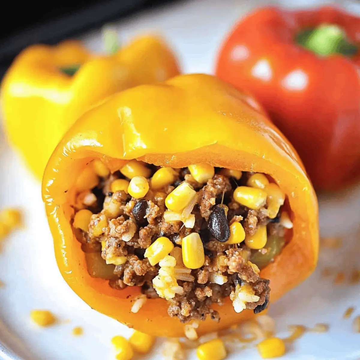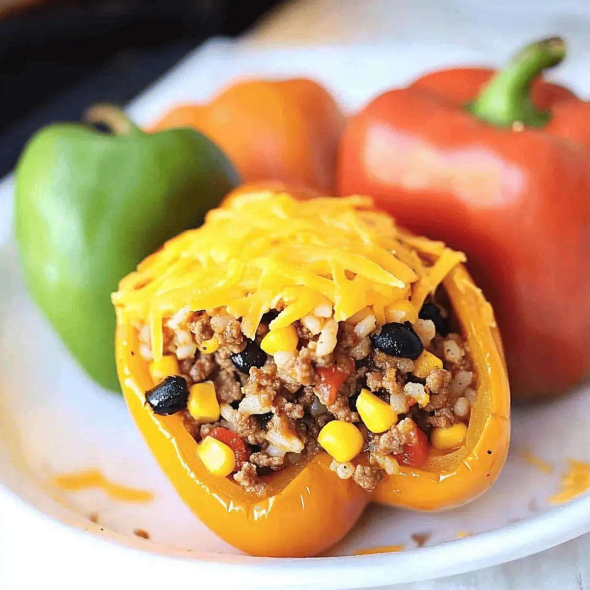 Jump to Recipe Print RecipeAs I stood in my kitchen, the vibrant colors of bell peppers caught my eye, each one a perfect little vessel waiting to be filled. These Stuffed Peppers with Ground Beef are not only a feast for the eyes but also incredibly easy to whip up, making them a go-to recipe for those busy weeknights. The versatility of this dish allows you to customize it to fit your family’s taste, whether you prefer swapping beef for turkey or adding extra veggies for a nutritious twist. Plus, they make for amazing leftovers—you can easily pop them in the fridge for a quick lunch. When you serve them up, not only will your home be filled with mouthwatering aromas, but you’ll also provide a hearty, satisfying meal that everyone will love. Ready to create your own delicious version? Let’s dive into these delightful stuffed peppers! Why Are Stuffed Peppers So Special? Versatile and Customizable: These stuffed peppers are perfect for any dietary preference, allowing you to swap in ground turkey or add extra veggies for a healthy boost. Time-Saving Delight: Quick to prepare, these make an ideal weeknight dinner solution that the whole family will love! Crowd-Pleasing Meal: Whether it’s a casual family night or a gathering with friends, these vibrant peppers are sure to please. Delicious Leftovers: The flavors deepen, making leftovers even better for lunch the next day. Serve with a side of garlic bread for a complete meal! Aromatic Appeal: Your kitchen will be filled with irresistible scents, making serving this dish even more enjoyable. Stuffed Peppers Ingredients For the Filling • Ground Beef – A hearty protein base; swap for ground turkey or shredded chicken for a lighter option. • Cooked Rice – Adds bulk; consider cauliflower rice for a healthier, low-carb choice. • Can of Corn – Sweetens the filling and adds texture; frozen corn works well as a substitute. • Can of Rotel Diced Tomatoes and Green Chilis – Infuses moisture and spice; adjust based on desired heat level. • Can of Black Beans – Boosts protein and fiber; feel free to use kidney beans or omit for a lower-carb option. • Small Onion – Sauté for enhanced flavor; shallots can be used as a milder alternative. • Minced Garlic – Adds aromatic depth; fresh garlic is best but garlic powder can be an easy substitute. • Chili Powder – Adds warmth; adjust according to your spice preference. • Oregano – Complements the beef beautifully; Italian seasoning can work in a pinch. • Cumin – Adds an earthy touch; paprika can be used for a smokier flavor. • Salt – Essential for flavor enhancement; always adjust to taste. • Pinch of Cayenne – Add for heat; omit if you prefer non-spicy dishes. For the Peppers • Bell Peppers – The perfect colorful vessel for stuffing; choose a mix for added visual appeal. For the Topping • Shredded Cheese – Melts beautifully on top; cheddar, mozzarella, or a cheese blend work wonders. These stuffed peppers are not just flavorful; they invite creativity and offer room for everyone to enjoy their preferred tastes! Step‑by‑Step Instructions for Easy Stuffed Peppers with Ground Beef Step 1: Preheat the Oven Begin by preheating your oven to 350°F (175°C). This ensures a warm environment for your stuffed peppers to bake beautifully. Grab a baking dish large enough to hold your peppers upright, and set it aside for later use. You’ll love the aroma that fills your kitchen as these delightful stuffed peppers cook! Step 2: Brown the Ground Beef In a large skillet over medium-high heat, add your ground beef. Cook for about 7-8 minutes until it’s nicely browned, stirring occasionally to break it apart and ensure even cooking. Once browned, drain any excess grease to keep your filling from becoming soggy. This step is key for making flavorful stuffed peppers. Step 3: Sauté the Onion and Garlic Once the beef is cooked, add a small diced onion to the skillet. Sauté for about 5 minutes until the onion is translucent and tender. Then, stir in minced garlic and cook for an additional minute until fragrant, being careful not to burn it. This aromatic base will enhance your stuffed pepper filling. Step 4: Mix in Other Ingredients Now, add the corn, Rotel diced tomatoes, black beans, and cooked rice into the skillet. Sprinkle in your chili powder, oregano, cumin, salt, and cayenne pepper, if using. Stir everything together thoroughly, letting it heat through for about 5 minutes. The combination of these ingredients creates a delicious, savory filling for your stuffed peppers. Step 5: Prepare the Bell Peppers While your filling is heating, prepare your bell peppers. Carefully cut the tops off each pepper and remove the seeds. To soften them, place the cleaned peppers in the microwave for 2-3 minutes. This step ensures they’ll bake evenly and turn tender while holding their shape in the oven. Step 6: Stuff the Peppers Once your filling is ready and the peppers are softened, it’s time to stuff them! Spoon the beef mixture into each pepper until they are generously filled. Top each stuffed pepper with shredded cheese, creating a gooey layer that will melt beautifully. The cheese adds an extra layer of flavor to your scrumptious stuffed peppers. Step 7: Bake the Stuffed Peppers Arrange your stuffed peppers upright in the prepared baking dish. Place them in the preheated oven and bake uncovered for 20-25 minutes. You’ll know they’re done when the peppers are tender to the bite and the cheese is golden and bubbly. The enticing aroma will undoubtedly draw everyone to the table! What to Serve with Easy Stuffed Peppers with Ground Beef A beautiful plate of stuffed peppers is just the start of a heartwarming meal that brings family together. Garlic Bread: The crunchy, buttery goodness of garlic bread is perfect for soaking up any tasty juices from the stuffed peppers. Simple Green Salad: A refreshing mix of greens and veggies provides a delightful contrast to
