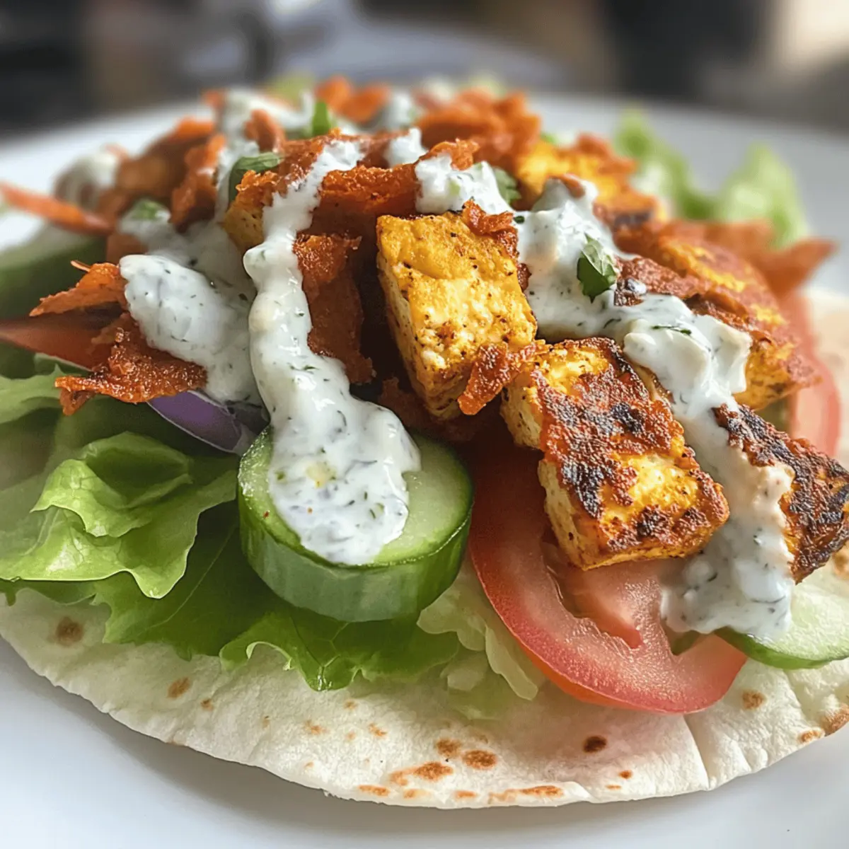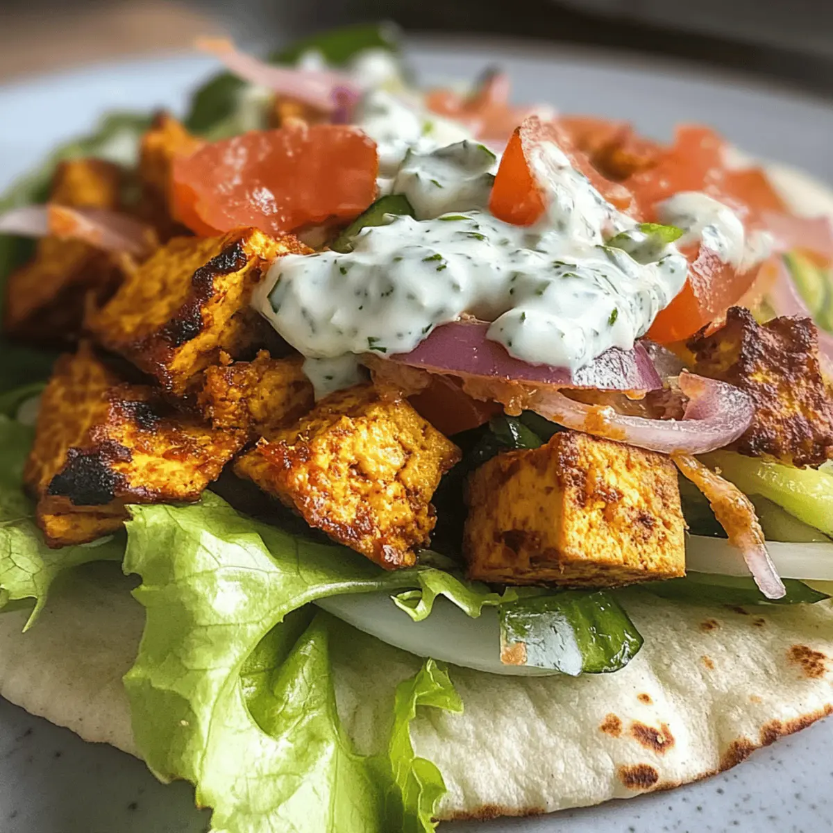 Jump to Recipe Print RecipeWalking through the bustling streets of a Middle Eastern market, the tantalizing aroma of spices wafts through the air, igniting my appetite. Today, I’m bringing that vibrant experience home with a special twist—a Vegan Tofu Shawarma, ready in under 25 minutes! This easy-to-make dish is not just a high-protein powerhouse, but it’s also a meal prep favorite, ideal for packing in lunches or enjoying at dinner. Imagine sinking your teeth into warm flatbreads filled with tender, spiced tofu and fresh veggies, all drizzled with creamy tzatziki. It’s a simple yet satisfying recipe that transforms everyday ingredients into something truly remarkable. Are you ready to indulge in this culinary adventure? Let’s get cooking and make some magic happen! Why Is Tofu Shawarma So Special? Quick and Easy: This Tofu Shawarma comes together in just under 25 minutes, making it perfect for busy weeknights or spontaneous weekend feasts. Packed with Flavor: The earthy blend of spices creates a bold flavor profile that will transport your taste buds straight to the Middle East. High-Protein Delight: Each serving is loaded with about 25g of protein, making it a nutritious choice for vegan and health-conscious eaters alike. Versatile Meal Prep: Ideal for wraps, salads, or even as a topping for grain bowls, you can enjoy this dish in countless ways throughout the week. Discover more about meal prep ideas. Crowd-Pleaser: Whether you’re hosting a gathering or simply feeding your family, this shawarma is sure to impress everyone at the table! Customizable: Swap out the tofu for some tempeh or grilled vegetables to tailor the meal to your preferences. Add a spicy twist with your favorite hot sauce! Tofu Shawarma Ingredients For the Tofu • Extra-Firm Tofu – This is the main protein source; make sure to use extra-firm for the best texture—silken tofu won’t work here. • Olive Oil – Adds richness and helps marinate; any neutral oil can work as a substitute. For the Marinade • Lemon Juice – Provides the necessary acidity and brightness; freshly squeezed is always preferred. • Honey (or Maple Syrup) – Balances flavors with sweetness and aids in caramelization; feel free to replace this with agave syrup for a vegan option. • Cumin, Smoked Paprika, Turmeric, Oregano, Cayenne Chili Pepper, Salt, Black Pepper, Ground Ginger, Garlic – This delightful blend adds the characteristic shawarma flavor; adjust cayenne if you prefer more heat. • Corn Flour – Essential for achieving that crispy texture when baked; this will help the tofu brown nicely. For Serving • Flatbreads – Your choice of bread complements the tofu; experiment with whole grain or pita for variety. • Little Gem Lettuce – Adds a fresh crunch; feel free to substitute with your favorite greens. • Tomato and Cucumber – Vital for freshness, these add a nice contrast; customize based on what you have on hand. • Tzatziki – This creamy sauce is perfect for drizzling over your shawarma, enhancing the flavors wonderfully; you could interchange this for hummus or tahini if preferred. By gathering these essentials, you’re just a few moments away from creating your very own delectable Tofu Shawarma, a high-protein treat your taste buds will thank you for! Step‑by‑Step Instructions for Tofu Shawarma Step 1: Prepare Tofu Begin by draining the extra-firm tofu, then pat it dry with a clean towel to remove excess moisture—this is key for achieving a crispy texture. For even better results, gently squeeze the tofu to extract additional water. Once dried, set it aside as you prepare to slice. Step 2: Slice Tofu Using a box grater or a sharp knife, thinly slice the tofu into strips that mimic kebab meat. Aim for even pieces to ensure uniform cooking. Arrange the slices neatly on a lined baking sheet, allowing space between each piece for air circulation, which helps with crispiness during baking. Step 3: Preheat Oven Preheat your oven to 180°C (356°F). This temperature will ensure that your tofu shawarma cooks evenly and develops a delightful golden-brown crust during baking. While the oven heats up, you can prepare the marinade for the tofu. Step 4: Make Marinade In a mixing bowl, combine your shawarma spices, corn flour, olive oil, honey (or maple syrup), and freshly squeezed lemon juice. Whisk the ingredients together until you achieve a smooth, pourable marinade. If the mixture feels too thick, add a splash of water to loosen it up, ensuring it will coat the tofu evenly. Step 5: Coat Tofu Pour the prepared marinade over the sliced tofu, then gently toss the strips until they are well-coated on all sides. Be careful not to break the tofu pieces as you mix. The marinade will infuse the tofu with bold flavors and a hint of sweetness, setting the stage for your delicious Tofu Shawarma. Step 6: Bake Tofu Spread the coated tofu slices in a single layer on the baking tray, ensuring they aren’t overlapping. Bake in the preheated oven for 15-20 minutes, flipping halfway through. You’ll know they’re done when the edges look crispy and golden. Watch closely to avoid burning; you want that perfect crunch! Step 7: Assemble Dish Once baked, remove the tofu shawarma from the oven and allow it to cool slightly. To assemble, place the crispy tofu on warm flatbreads and layer with fresh salad ingredients like Little Gem lettuce, diced tomatoes, and cucumbers. Drizzle generously with tzatziki sauce for a creamy finish. Enjoy this delightful plant-based treat! Make Ahead Options These Tofu Shawarma slices are a fantastic meal prep option that saves you precious time during busy weeknights! You can marinate the tofu and let it sit in the refrigerator for up to 24 hours to enhance the flavors. Additionally, you can bake the tofu shawarma and store it in an airtight container for up to 3 days. Just be sure to reheat in an oven or skillet to restore its crispiness. When ready to serve, simply layer the reheated