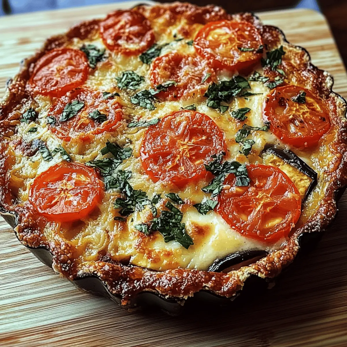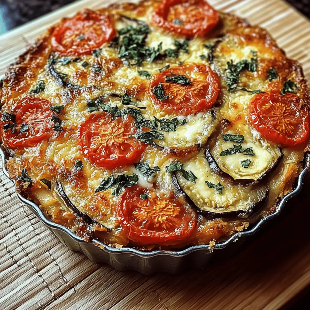 Jump to Recipe Print RecipeAs I flipped through the pages of my grandmother’s worn recipe book, I stumbled upon a treasure that instantly transported me to summer days filled with laughter and sunshine—an Easy Summer Tomato and Eggplant Pie. This vibrant dish is a fantastic way to showcase garden-fresh vegetables, with juicy tomatoes and tender eggplant hugging a flaky crust. The best part? It’s not only a breeze to make but also a beautiful centerpiece for any gathering, making it a perfect choice for warm evenings with family and friends. Whether you’re hosting a casual get-together or simply treating yourself, this pie is sure to impress everyone at the table. Ready to create a slice of summer? Let’s dive into this easy recipe and bring a burst of flavors to your kitchen! Why Is This Pie So Irresistible? Delightful Freshness: The combination of ripe tomatoes and tender eggplant creates a flavor explosion that captures the essence of summer. Effortless Preparation: With simple steps and no intricate techniques, you’ll have a stunning pie ready in no time. Versatile Ingredients: Feel free to swap out vegetables or cheeses, making it easy to tailor this recipe to your taste. You could even explore a delightful blend of flavors with ideas from my Chicken and Broccoli Savory recipe! Crowd-Pleasing Dish: This pie’s stunning presentation and deliciousness make it a fantastic centerpiece for gatherings, ensuring every bite is savored. Gluten-Free Option: Adapting this dish to fit dietary needs is simple; just use a gluten-free crust for a worry-free delight. Get ready to enjoy a slice of summer with each bite! Tomato and Eggplant Pie Ingredients For the Filling • Eggplant – Adds creaminess and bulk to the filling; medium-sized eggplants are preferred. Substitute with zucchini or mushrooms if needed. • Tomatoes – Provide fresh flavor and moisture; ripe, fresh tomatoes yield the best taste, but you can use canned tomatoes if drained well. • Mozzarella Cheese – Offers meltiness and flavor; consider vegan cheese for a dairy-free option or leave cheese out entirely. • Parmesan Cheese – Provides a salty, nutty flavor that beautifully complements the other ingredients. • Garlic – Adds aromatic depth; using minced garlic elevates the overall taste. For the Herbs • Fresh Basil – Enhances the dish with bright flavor; dried basil can be used but in smaller quantities. • Fresh Parsley – Offers freshness and a touch of color; can be swapped for other herbs you enjoy. For the Creaminess • Milk or Cream – Adds a rich texture to the filling; whole milk works well, or try almond or coconut milk for a non-dairy alternative. For Seasoning • Salt & Pepper – Essential for enhancing overall flavors; adjust to your preference for a delightful taste. With these ingredients, you’re on your way to creating a delicious Tomato and Eggplant Pie that will have your family and friends coming back for more! Step‑by‑Step Instructions for Tomato and Eggplant Pie Step 1: Preheat the Oven Begin by preheating your oven to 375°F (190°C). While it warms up, lightly grease a 9-inch pie dish using olive oil or cooking spray to prevent sticking. This step ensures your Tomato and Eggplant Pie releases easily after baking, allowing you to showcase its beautiful layers. Step 2: Prepare the Eggplant Slice your medium-sized eggplant into 1/4-inch thick rounds and sprinkle salt over them. Place the slices in a colander and let them sit for about 15 minutes. This process helps remove any bitterness from the eggplant. Afterward, gently pat the slices dry with a paper towel to absorb excess moisture and salt. Step 3: Cook the Eggplant In a skillet, heat a couple of tablespoons of olive oil over medium heat. Once hot, add the eggplant slices in batches, cooking each side for about 3-4 minutes until they become tender and golden brown. Be sure not to overcrowd the skillet to achieve that lovely caramelization. Set the cooked eggplant aside on a plate. Step 4: Mix the Filling In a mixing bowl, whisk together the eggs, your choice of milk or cream, and minced garlic until smooth. Then add half of the mozzarella and Parmesan cheeses, along with the chopped fresh basil and parsley, and season with salt and pepper. This creamy mixture will bind the vegetables together in your delicious Tomato and Eggplant Pie. Step 5: Layer the Ingredients Now it’s time to layer! Start by placing the cooked eggplant slices evenly at the bottom of the greased pie dish. Follow this with a generous layer of fresh tomato slices, creating a vibrant display. Finally, pour the egg and cheese mixture over the vegetables, making sure everything is well covered. Sprinkle the remaining cheese on top for an extra golden crust. Step 6: Bake the Pie Place your pie dish in the preheated oven and bake for 30-35 minutes. Keep an eye on it until the top turns a beautiful golden brown and the eggs are fully set. You can test doneness by inserting a knife in the center; it should come out clean. The aroma will fill your kitchen with mouthwatering anticipation! Step 7: Cool and Serve Once baked to perfection, remove the Tomato and Eggplant Pie from the oven and allow it to cool for about 5-10 minutes before slicing. This resting time allows the flavors to meld beautifully. If desired, garnish with additional fresh herbs before serving warm—a delightful centerpiece for your summer gatherings! Tomato and Eggplant Pie Variations Feel free to get creative with your pie and explore delightful twists that enhance every bite! Gluten-Free Option: Use a gluten-free pie crust or simply omit the crust for a delicious crustless version! This way, everyone can enjoy a slice. Cheese Swap: Replace mozzarella with goat cheese or feta for a sharper flavor profile that beautifully complements the veggies. Your taste buds will thank you! Add Spice: If you love a kick, sprinkle in some red pepper flakes or add sliced jalapeños to the filling fo