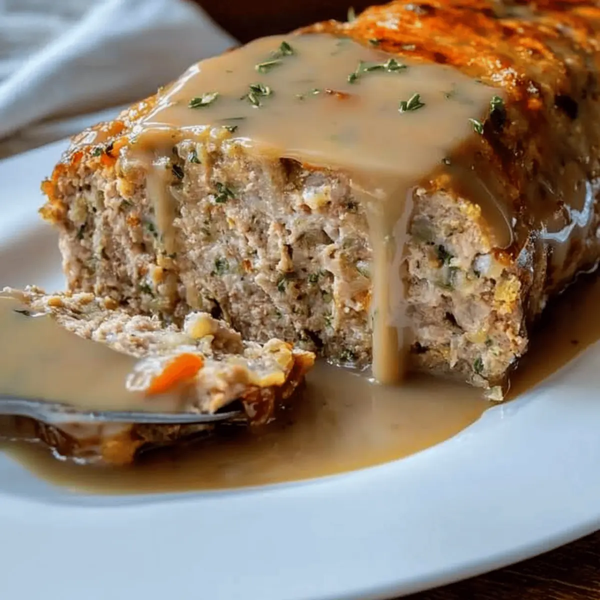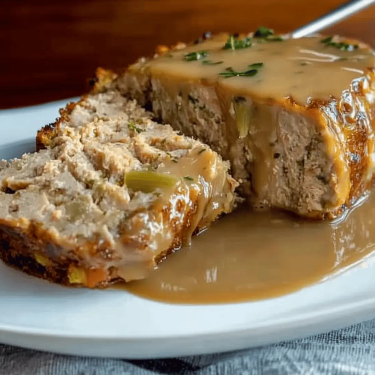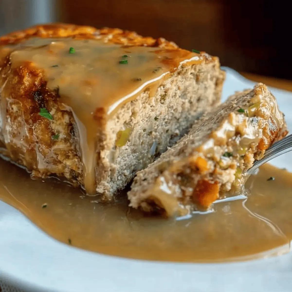 Jump to Recipe Print RecipeAs the scent of savory herbs wafts through my kitchen, I can’t help but feel cozy and nostalgic. This Thanksgiving-Style Turkey and Stuffing Meatloaf brings together the festive flavors we adore, but with a unique twist on the classic comfort food. Made with lean ground turkey, tender vegetables, and herb-seasoned stuffing mix, this recipe is not just simple to prepare—it’s also a lower-calorie option that doesn’t skimp on taste. Whether you’re looking to feed a hungry family or impress dinner guests, this dish promises a gratifying experience without the stress of traditional Thanksgiving cooking. Fancy a slice topped with luscious gravy? Or perhaps you’d like to explore some creative variations? Let’s dive in and transform your mealtime! Why is Turkey and Stuffing Meatloaf Special? Comforting Tradition: This Turkey and Stuffing Meatloaf brings the warmth of Thanksgiving right to your table, making it perfect for any night. Low-Calorie Goodness: Enjoy a hearty meal that’s lighter than traditional meatloaf, so you won’t feel guilty about seconds. Easy Prep: With minimal fuss and simple ingredients, this recipe is great for busy weeknights yet impressive enough for gatherings. Endless Variations: Feel free to get creative—consider adding chopped cranberries or using different ground meats for a unique twist each time! Crowd-Pleasing Flavor: With a savory blend of herbs and juicy turkey, this dish is sure to delight everyone, making it as loved as Chicken Mac Cheese around the dinner table. Turkey And Stuffing Meatloaf Ingredients For the Meatloaf • Ground Turkey – A lean protein that keeps this dish light and flavorful; substitute with ground chicken if desired. • Herb-Seasoned Stuffing Mix – Provides moisture and acts as a binder; gluten-free stuffing is a great alternative. • McCormick Simply Better Turkey Gravy – Adds rich flavor without extra additives; homemade gravy is another delicious choice. • Carrots – Sweetens the meatloaf while adding vibrant color; diced bell peppers work well too for a twist. • Yellow Onion – Enhances the savory profile of the dish; shallots offer a milder flavor if preferred. • Celery – Contributes both crunch and depth of flavor; leeks can substitute nicely. • Garlic – Brings aromatic delight to each bite; minced garlic is best, but powder can be used in a pinch. • Thyme – Infuses earthiness into the turkey flavor; fresh thyme brightens the taste significantly. • Sage – Complements the turkey beautifully with its classic herb flavor; feel free to omit if you’d like. • Eggs – Binds everything together seamlessly; a flax egg is a fantastic option for vegans. • Unsalted Butter – Provides richness and moisture; you can swap with olive oil if you’re looking for a lighter fat. • Milk – Helps keep the meatloaf moist; any milk type, including non-dairy, works wonderfully in this recipe. • Kosher Salt and Pepper – Essential for bringing all the flavors together; adjust to meet your taste preferences. Give this Turkey and Stuffing Meatloaf a try, and get ready for comforting flavors that will make your dinner table feel like a festive celebration! Step‑by‑Step Instructions for Turkey And Stuffing Meatloaf Step 1: Preheat the Oven Begin by preheating your oven to 350ºF (175ºC) and lightly greasing a 9×5-inch loaf pan with cooking spray or butter. This ensures that your Turkey And Stuffing Meatloaf comes out easily once it’s baked. The oven should be ready while you prepare the flavorful filling. Step 2: Sauté the Vegetables In a large skillet, melt 2 tablespoons of unsalted butter over medium-high heat. Add finely chopped onions, carrots, and celery, sautéing them for 6-8 minutes until they are softened and fragrant. Stir in minced garlic and cook for an additional 1-2 minutes, letting the cozy aromas fill your kitchen as they become aromatic. Step 3: Season and Cool the Mixture Once the vegetables are tender, season them with kosher salt and pepper to taste. Stir in 3 tablespoons of McCormick Simply Better Turkey Gravy and allow it to cook for another 2 minutes to blend the flavors. Once finished, remove the skillet from heat and let the mixture cool slightly while you prepare the meat mixture. Step 4: Combine Meat and Ingredients In a large mixing bowl, combine 1 pound of ground turkey, 1 package of herb-seasoned stuffing mix, 2 eggs, and ½ cup of milk. Carefully fold in the cooled vegetable mixture along with fresh thyme, sage, salt, and pepper to taste. This step is crucial for ensuring your Turkey And Stuffing Meatloaf has the perfect texture and flavor. Step 5: Transfer to the Loaf Pan Mix everything until well combined, taking care not to over-mix. Transfer the delicious turkey mixture into the prepared loaf pan, pressing it down gently for an even shape. Finish by topping the meatloaf with the remaining turkey gravy to create a lovely, savory glaze. Step 6: Bake the Meatloaf Place your filled loaf pan in the preheated oven and bake for 40 minutes or until the internal temperature reaches 165ºF (74ºC). You’ll know it’s done when the meatloaf is firm to the touch and beautifully golden-brown on top, filling your home with mouthwatering scents as it cooks. Step 7: Let it Rest and Serve Once out of the oven, allow the Turkey And Stuffing Meatloaf to rest for about 5-10 minutes before slicing. This resting time helps keep it moist and makes for cleaner cuts. Serve warm, drizzled with extra gravy for a comforting, complete meal that everyone will love! How to Store and Freeze Turkey and Stuffing Meatloaf Fridge: Store leftover turkey and stuffing meatloaf in an airtight container for up to 4 days. This ensures it remains fresh and flavorful for your next meal. Freezer: For longer storage, wrap the meatloaf tightly in plastic wrap and then in aluminum foil, freezing for up to 3 months. This protects against freezer burn while preserving taste. Reh