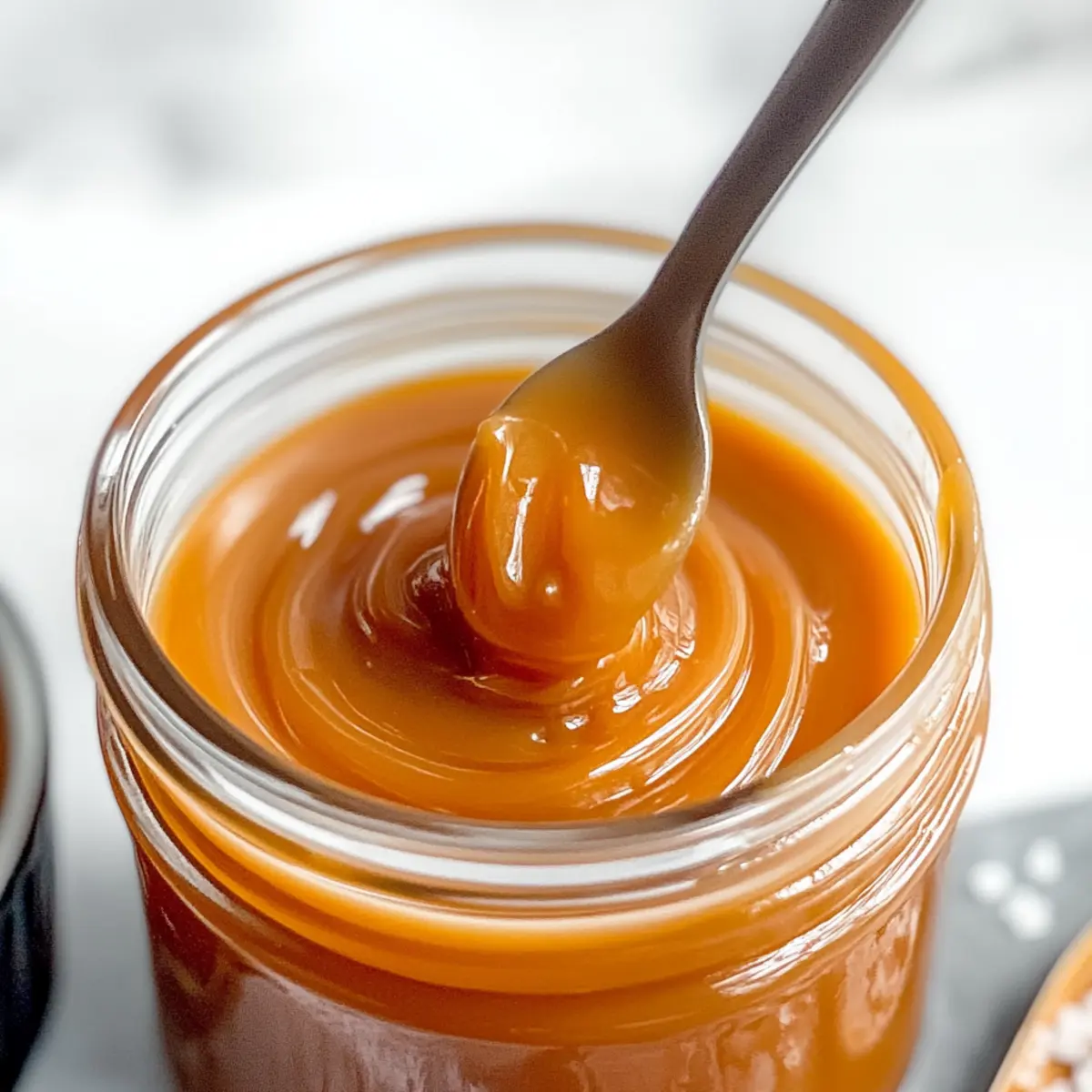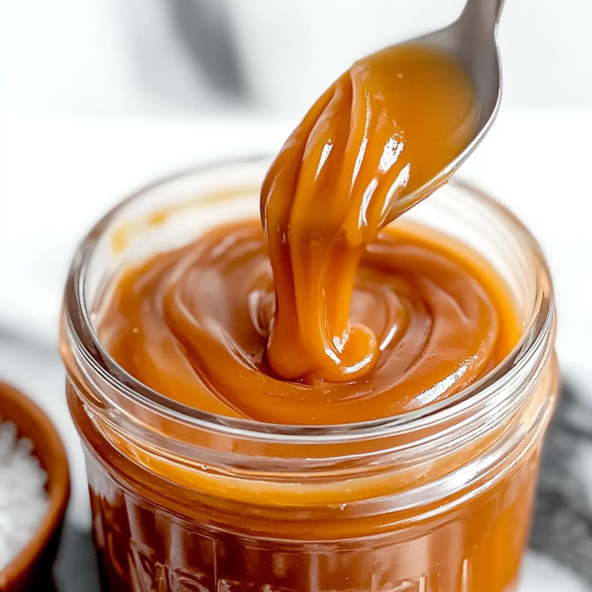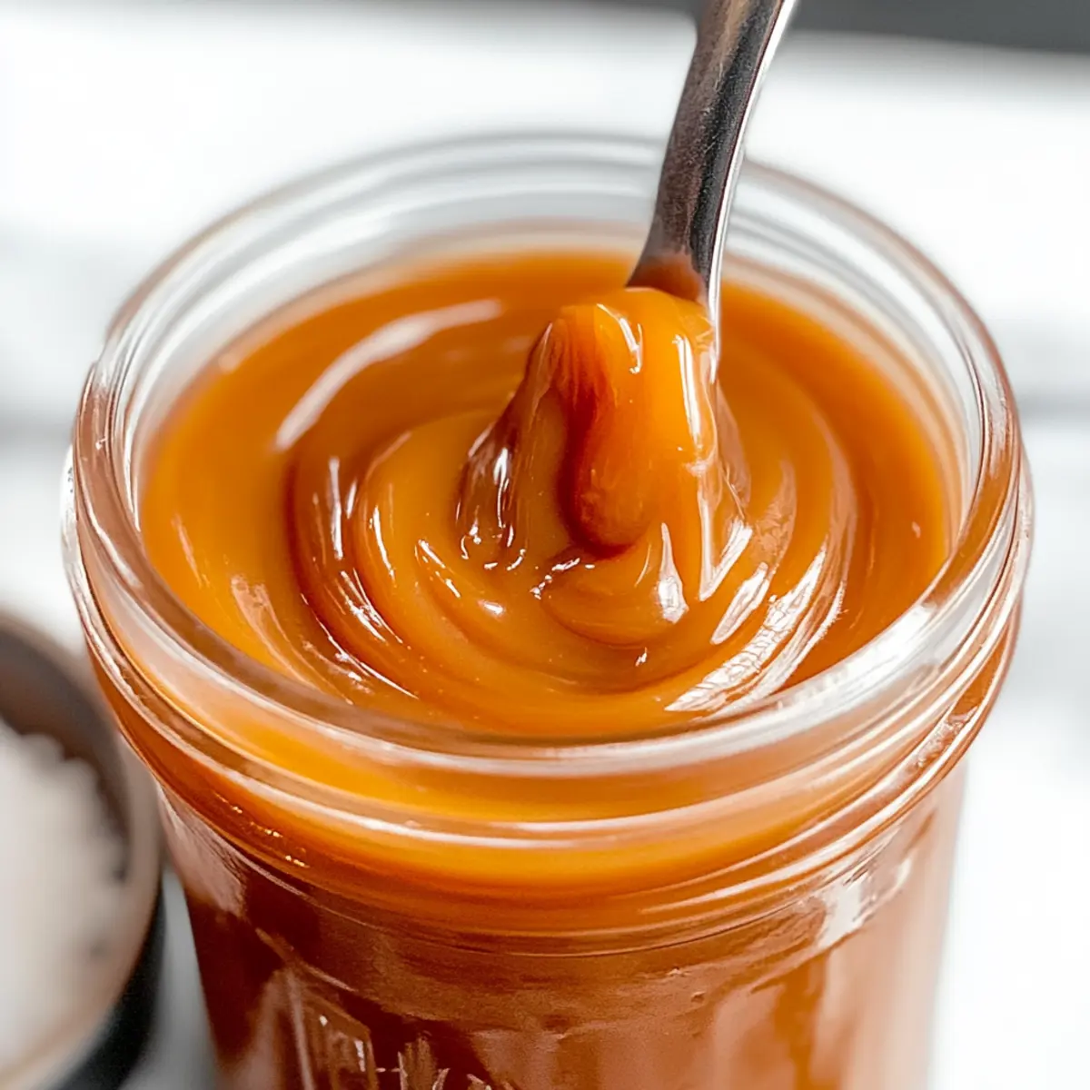 Jump to Recipe Print RecipeAs the sweet aroma of caramel wafts through your kitchen, who could resist the temptation? This homemade Vegan Caramel Sauce with Coconut Milk is your new go-to recipe for impressing friends, family, or even just indulging yourself! With only four simple ingredients, it’s not just quick and easy but also dairy-free and irresistible. Imagine drizzling this silky-smooth sauce over your favorite desserts, enhancing everything from ice cream to morning coffee. Plus, its richness will elevate your vegan treats, making every spoonful delightfully satisfying. Ready to transform your dessert game? Let’s dive into the sweetness that awaits! Why is This Vegan Caramel Sauce Amazing? Creamy Indulgence: This easy vegan caramel sauce is rich and silky, making it a perfect companion for all your dessert cravings. Quick & Simple: With just four ingredients, you’ll have a delightful sauce ready in under 15 minutes, perfect for those last-minute sweet needs! Versatile Delight: Drizzle it over Feta Cranberry Vinaigrette for a unique twist or mix it into your morning coffee for a sweet boost. Crowd-Pleasing Treat: Impress guests at any gathering with this non-dairy marvel that complements various sweets! Storage Friendly: You can keep this luscious sauce in the fridge for up to a month, always ready to enhance your snacks or meals. Vegan Caramel Sauce with Coconut Milk Ingredients Explore the simplicity of creating this delicious sauce! For the Sauce Granulated Sugar – Provides the essential sweetness and classic caramel flavor; coconut sugar can be a great alternative for a darker sauce. Coconut Cream – Delivers an indulgent creaminess; using full-fat coconut milk is fine for a thinner sauce, but coconut cream is best for thickness. Pure Vanilla Extract – Brightens up the flavor profile and adds warmth; no substitutions are recommended to maintain the exquisite taste. Sea Salt – Offers a perfect contrast to sweetness, creating that delightful salted caramel flavor; adjust the amount to suit your taste preferences. Give this Vegan Caramel Sauce with Coconut Milk a try; it’s sure to become a staple in your dessert repertoire! Step‑by‑Step Instructions for Vegan Caramel Sauce with Coconut Milk Step 1: Prepare Coconut Cream Begin by warming 1 cup of coconut cream in the microwave for about 1 minute. This simple step ensures easy mixing, resulting in a silky-smooth Vegan Caramel Sauce with Coconut Milk that won’t crystallize. Keep an eye on it, ensuring it’s warm but not boiling. Step 2: Melt Sugar In a medium heavy-bottom pot, evenly layer 1 cup of granulated sugar and place it over medium heat. Let it melt for about 2-5 minutes, without stirring. Watch closely as the edges begin to caramelize, turning a golden color—this visual cue indicates you’re on the right track. Step 3: Combine Ingredients Once the edges are caramelized, reduce the heat to medium-low. Gently push the melted sugar toward the center of the pot. Stir until all the sugar is melted and achieves an amber color, which should take another 3-5 minutes. This step is crucial for achieving the rich and creamy texture of your vegan caramel sauce. Step 4: Add Coconut Cream Remove the pot from heat and gradually stir in the warmed coconut cream. Be cautious, as this will create bubbles. Return the pot to low heat and stir continuously, allowing the heated coconut cream to meld perfectly with the caramelized sugar, creating that luscious sauce. Step 5: Simmer Allow the mixture to simmer gently for another 1-2 minutes. Stir occasionally during this time to ensure smoothness, watching for any solidified pieces of sugar to melt. The blend should become fully smooth and cohesive, embodying the essence of your Vegan Caramel Sauce with Coconut Milk. Step 6: Finish Remove the saucepan from the heat once the sauce is velvety and well-combined. Stir in 1 teaspoon of pure vanilla extract and a large pinch of sea salt, enhancing the flavor profile. Mix thoroughly until the vanilla and salt are well incorporated, rounding out the sweetness of the caramel. Step 7: Cool & Store Let the vegan caramel sauce cool at room temperature in a heat-proof container. Once cooled, transfer it to the refrigerator. The sauce thickens as it cools, becoming the perfect consistency for drizzling over your favorite desserts. Enjoy your homemade Vegan Caramel Sauce with Coconut Milk any time! How to Store and Freeze Vegan Caramel Sauce with Coconut Milk Fridge: Store your vegan caramel sauce in an airtight container for up to one month. It will thicken as it cools, creating that perfect drizzle consistency. Freezer: For longer storage, freeze the sauce in an airtight container for up to three months. Thaw in the fridge overnight before use. Reheating: When ready to use, gently reheat the sauce on low heat in a saucepan or microwave. Stir until smooth, adjusting with a splash of coconut milk if necessary. Room Temperature: Allow the sauce to cool completely before sealing in a container to prevent condensation, which can affect the texture of your Vegan Caramel Sauce with Coconut Milk. Expert Tips for Vegan Caramel Sauce Warm Coconut Cream: Always warm your coconut cream to prevent sugar crystallization. This avoids graininess and ensures a silky Vegan Caramel Sauce with Coconut Milk. No Stirring Initially: Avoid stirring the sugar at first. This helps prevent the formation of sugar crystals, giving you a smooth caramel texture. Color Check: Keep an eye on the sugar’s color. An amber hue shows it’s ready to blend with the coconut cream for that perfect caramel flavor. Adjust Salt to Taste: Feel free to tweak the amount of sea salt. A little more can enhance that delicious salted caramel effect, elevating your sauce’s flavor. Storage Matters: Store your Vegan Caramel Sauce in an airtight container in the fridge. It thickens beautifully as it cools and can last up to a month! What to Serve with Vegan Caramel Sauce with Coconut 