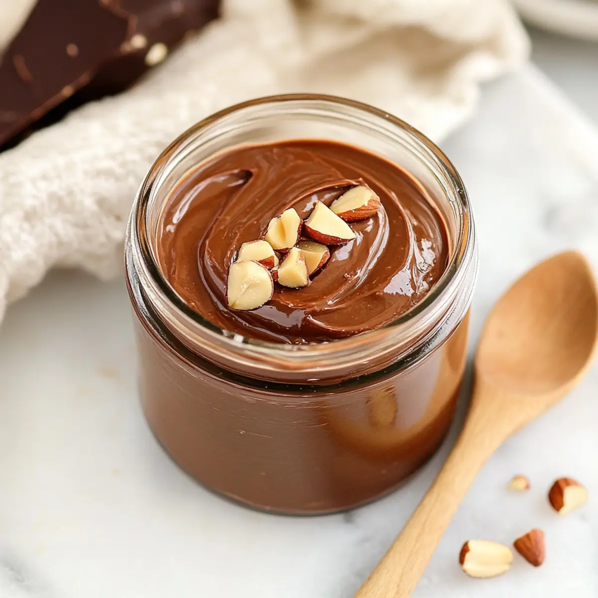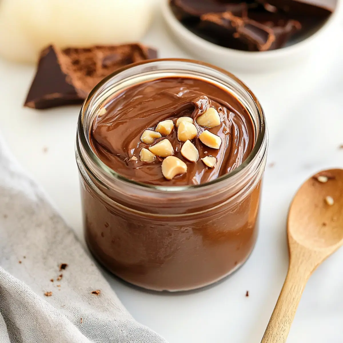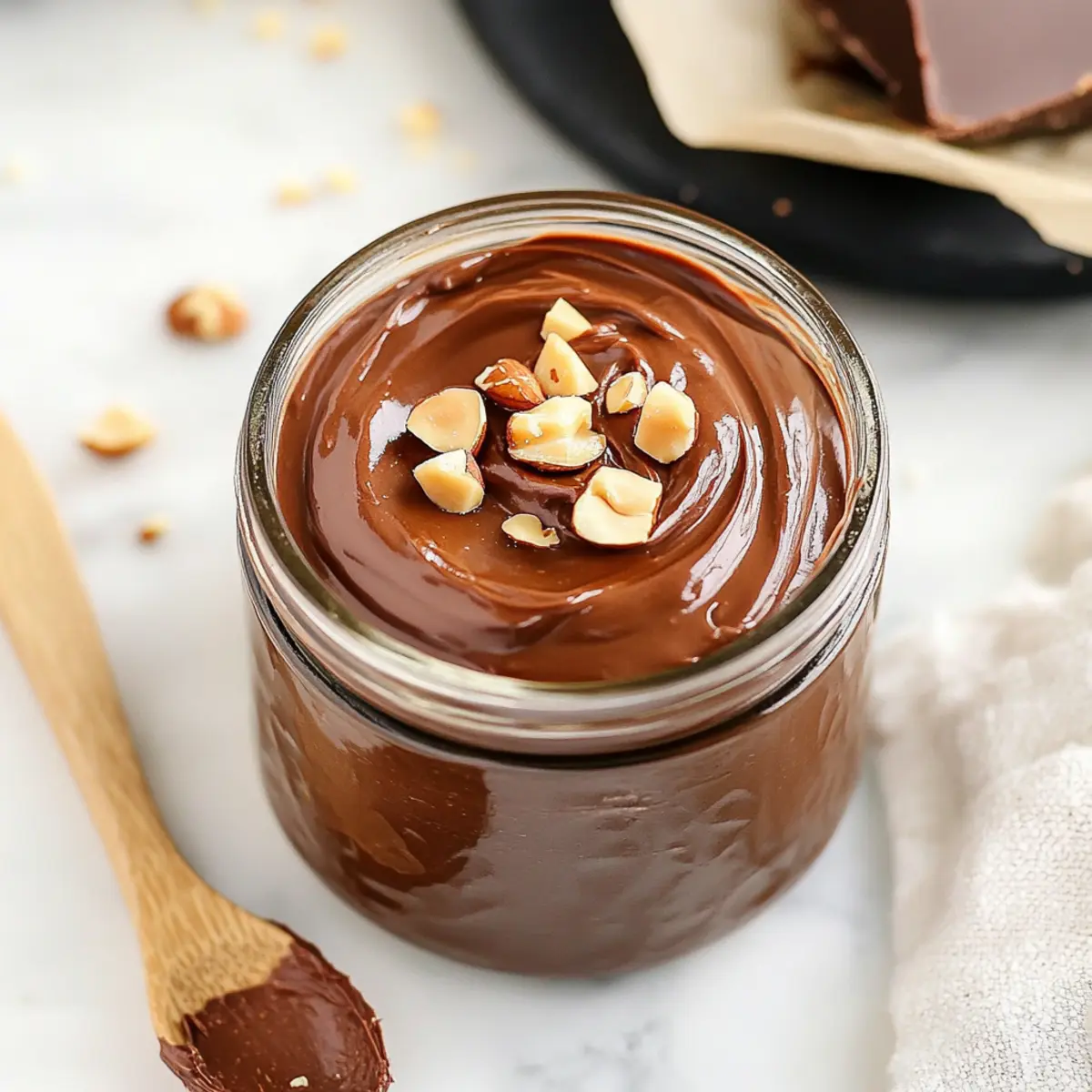 Jump to Recipe Print RecipeYou won’t believe how simple it is to create a creamy, homemade vegan Nutella that will turn your breakfast into a guilt-free indulgence! With just five wholesome ingredients, this quick recipe will have you blending rich chocolate and nutty goodness in under 20 minutes. Here’s the beauty of it: not only is this delightful spread a healthier alternative to the store-bought versions, but it’s also a versatile treat you can enjoy on toast, pancakes, or even as a frosting for your favorite desserts. Plus, it’s completely customizable—switch out cashew nuts or sweeteners to tailor it to your taste. Ready to elevate your breakfast game? Let’s dive into making your very own vegan Nutella! Why is this Vegan Nutella a Must-Try? Simplicity: With just five ingredients, this recipe is ideal for a quick and easy homemade treat. Rich Flavor: The deep chocolate and nutty notes blend beautifully for a flavor that rivals any store-bought Nutella. Customizable: Adjust the sweetness or swap out cashew nuts for more hazelnuts according to your preference. Guilt-Free Indulgence: Enjoy the creamy texture and delightful taste without the excess sugars and preservatives of traditional spreads. Versatile Use: Spread it on toast, drizzle over pancakes, or use it as a frosting for a delicious twist on your favorite desserts! Want to explore more delicious vegan options? Check out my Vegan Chocolate Chip cookie recipe for another scrumptious treat! Vegan Nutella Ingredients • Here’s what you need to whip up this delightful spread! For the Base Hazelnuts – The foundation of this Vegan Nutella, providing its creamy texture and rich flavor. You can leave the skins on for added fiber or peel them for a smoother spread. Cashew Nuts – Adds extra creaminess and a hint of sweetness; feel free to substitute with more hazelnuts for an even nuttier taste. For the Chocolatey Goodness Dark Chocolate – Brings an indulgent richness; using high-quality, about 75% cacao, will enhance the flavor profile beautifully. Cacao Powder – Deepens the chocolatey taste; opt for unsweetened cacao for a healthier choice. For Sweetness Raw Cane Sugar – An optional ingredient to adjust sweetness; you can also try coconut sugar, agave, or maple syrup as alternatives to fit your taste! Step‑by‑Step Instructions for Vegan Nutella Step 1: Preheat and Roast Start by preheating your oven to 350°F (180°C). Spread the hazelnuts and cashew nuts evenly on a baking tray, and roast them in the oven for 6-8 minutes. Keep an eye on them, as you want them golden but not burnt. Once done, remove them from the oven and allow them to cool slightly before blending. Step 2: Blend the Nuts In a high-speed food processor or blender, add the roasted hazelnuts and cashew nuts. Blend them on high for about 10-15 minutes, pausing occasionally to scrape down the sides. You’ll notice the mixture transforming from crumbs to a smooth nut butter. Be patient, as this is a crucial step for achieving the creamy texture of your Vegan Nutella. Step 3: Melt the Chocolate While the nut butter is blending, melt your dark chocolate in a microwave-safe bowl. Heat it in 15-second intervals, stirring in between, until fully melted and smooth. It should be glossy and free of lumps. This rich chocolate will elevate your Vegan Nutella, adding depth to its flavor. Step 4: Combine Ingredients Once the chocolate is melted, add it to the smooth nut butter along with the cacao powder and raw cane sugar if you’re using it. Blend the mixture for another 1-2 minutes until fully combined and creamy. Take a moment to taste; feel free to adjust the sweetness to your preference for the perfect Vegan Nutella. Step 5: Chill for Thickness If you prefer a thicker consistency, pour the Vegan Nutella into a jar and place it in the refrigerator for a few hours. This chilling process helps it set, making it easier to spread. The result will be creamy and satisfyingly thick, perfect for spreading on your favorite breakfast items. Step 6: Store and Enjoy Once chilled to your desired thickness, store your Vegan Nutella in a sterilized airtight jar at room temperature for up to three weeks. Make sure to keep it sealed to maintain freshness. Now you have a delicious, homemade Vegan Nutella ready to elevate your meals or snacks! Make Ahead Options Preparing Vegan Nutella in advance is a fantastic way to save time during your busy week! You can roast the hazelnuts and cashews up to 24 hours ahead. Simply store the cooled nuts in an airtight container at room temperature. Additionally, you can blend the nut butter and even melt the chocolate in advance, keeping both components refrigerated for up to 3 days. When you’re ready to finish, combine the nut butter with the melted chocolate, cacao powder, and sweetener just before serving to ensure freshness and a creamy texture. This meal prep hack ensures your homemade Vegan Nutella is just as delicious, making it a quick and delightful treat whenever you need it! What to Serve with Healthy Vegan Nutella Enjoy your decadent spread as a delightful addition to various dishes with these enticing pairing ideas. Whole Grain Toast: The nutty flavor of whole grain bread perfectly complements the rich chocolate hazelnut taste. It adds a wholesome crunch to your breakfast. Fresh Fruit Slices: Apples, bananas, or strawberries dipped in Vegan Nutella offer a refreshing contrast, balancing sweetness and creaminess for a perfect snack. Chia Seed Pudding: Layering Vegan Nutella over chia seed pudding creates a chocolate-boosted dessert that’s both nourishing and indulgent. Oatmeal Delight: Stirring a spoonful of Vegan Nutella into warm oatmeal transforms your morning bowl into a luxurious treat, combining health and flavor beautifully. Smoothies: Blend a spoonful into a banana smoothie for added creaminess and rich flavor, turning your drink into a decadent dessert shake. Ice Cream Topping: A drizzle of Vegan Nutella ove