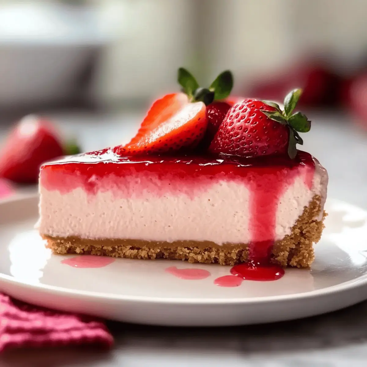 Jump to Recipe Print RecipeAmid the hustle of everyday life, there’s something undeniably special about creating a homemade dessert that brings everyone together. That’s where my Velvet Strawberry Cheesecake comes into play — a creamy, dreamy delight that’s as much about the journey as it is about the destination. With its rich filling and vibrant strawberry topping, this dessert isn’t just a crowd-pleaser; it’s the perfect make-ahead option for any gathering, ensuring you can spend less time in the kitchen and more time enjoying the company of loved ones. As you slice into this heavenly creation, you’ll discover a delightful balance of textures and flavors that dances on your palate. So, are you ready to whip up a dessert that will leave your guests raving and coming back for seconds? Let’s get started! Why is Velvet Strawberry Cheesecake a Must-Try? Indulgent Flavor: This cheesecake isn’t just delicious; it’s an experience! With its rich creaminess and burst of fresh strawberry flavor, every bite transports you to dessert heaven. Effortless Preparation: Even novice bakers will find the medium difficulty manageable, making it a great choice for any home cook. Crowd-Pleasing Delight: Whether it’s a family gathering or a dinner party, this treat impresses every time, ensuring it’s a hit with guests of all ages. Versatile Treat: Feel free to experiment! You can swap in different fruits like blueberries or create a decadent chocolate version for a delightful twist. Make-Ahead Convenience: Prepare this cheesecake in advance, saving you time while still delivering an unforgettable dessert, similar to how you might prep a stunning Burnt Basque Cheesecake or delightful Blueberry Cheesecake Bars. You can simply serve and enjoy! Velvet Strawberry Cheesecake Ingredients For the Crust • Graham Crackers – These create a buttery crust; swap for gluten-free options if needed. • Butter – Use unsalted butter to bind the crust; coconut oil is a dairy-free alternative. • Sugar – Sweetens the crust; you can use a sugar alternative for lower calories. For the Filling • Cream Cheese – The key to that luscious creaminess; ensure it’s full-fat for the best flavor. • Sugar – Balances the richness of the cheesecake; substitute with a sweetener for a lighter option. • Eggs – They help set the filling, contributing to its smooth texture; try flax eggs for a vegan alternative. • Vanilla Extract – Enhances the overall flavor; always reach for pure vanilla for that extra kick. • Lemon Zest – Adds a refreshing tang; lime zest works well for a citrus twist. For the Topping • Fresh Strawberries – The star ingredient that brings vibrant color and sweetness; frozen strawberries can be a seasonal substitute. • Strawberry Glaze – Made from fresh strawberries, gives a beautiful finish to the cheesecake. Getting these ingredients ready is the first step in creating an unforgettable Velvet Strawberry Cheesecake that will leave your guests asking for the recipe! Step‑by‑Step Instructions for Velvet Strawberry Cheesecake Step 1: Prepare the Crust Start by preheating your oven to 350°F (175°C). In a food processor, crush the graham crackers into fine crumbs, then transfer them to a mixing bowl. Add melted unsalted butter and sugar, combining until the mixture resembles wet sand. Firmly press this mixture into the bottom of a springform pan to create a sturdy crust. Refrigerate it while you prepare the filling. Step 2: Make the Filling In a large mixing bowl, use a hand mixer to beat the cream cheese until it’s ultra-smooth, about 2-3 minutes. Gradually add sugar, mixing well after each addition to ensure a creamy texture. Incorporate the eggs one at a time, followed by the pure vanilla extract and lemon zest, ensuring everything is well combined and velvety. This filling is the heart of your Velvet Strawberry Cheesecake. Step 3: Bake the Cheesecake Remove the chilled crust from the refrigerator and pour the creamy filling over it, spreading it evenly with a spatula. Place in the oven and bake for approximately 60 minutes, or until the edges are set and the center has a slight jiggle. Keep a close eye during the last few minutes; the cheesecake should look slightly puffed up and golden around the edges. Step 4: Cooling Time Once baked, turn off the oven and crack the door ajar, allowing the cheesecake to cool gradually for about an hour. After that, move it to room temperature for another hour before covering it and refrigerating overnight. This cooling period is crucial for achieving that perfect silky texture in your Velvet Strawberry Cheesecake. Step 5: Prepare the Topping While the cheesecake chills, wash and slice fresh strawberries for the topping. In a small saucepan, combine some sliced strawberries and a bit of sugar. Cook over low heat for about 5 minutes, allowing it to thicken slightly and create a beautiful glaze. This will make your cheesecake not only delicious but stunningly vibrant as well. Step 6: Assemble and Serve After the cheesecake has set overnight, carefully release it from the springform pan. Spread the strawberry glaze evenly on top, ensuring each slice will have that sweet, fruity topping. Use a sharp, warm knife to slice the cheesecake cleanly. Now it’s ready to be served, bringing a smile to everyone’s face with its creamy, luscious layers in the Velvet Strawberry Cheesecake. How to Store and Freeze Velvet Strawberry Cheesecake Fridge: Store your Velvet Strawberry Cheesecake in an airtight container in the refrigerator for up to 5 days. This keeps it fresh and ready for those late-night cravings! Freezer: If you want to keep it longer, wrap the cheesecake tightly in plastic wrap and then aluminum foil, freezing for up to 3 months. Thaw it in the fridge overnight when you’re ready to enjoy it again. Reheating: While it’s best served chilled, if you’re looking to freshen up your cheesecake, let it sit out for about 30 mi