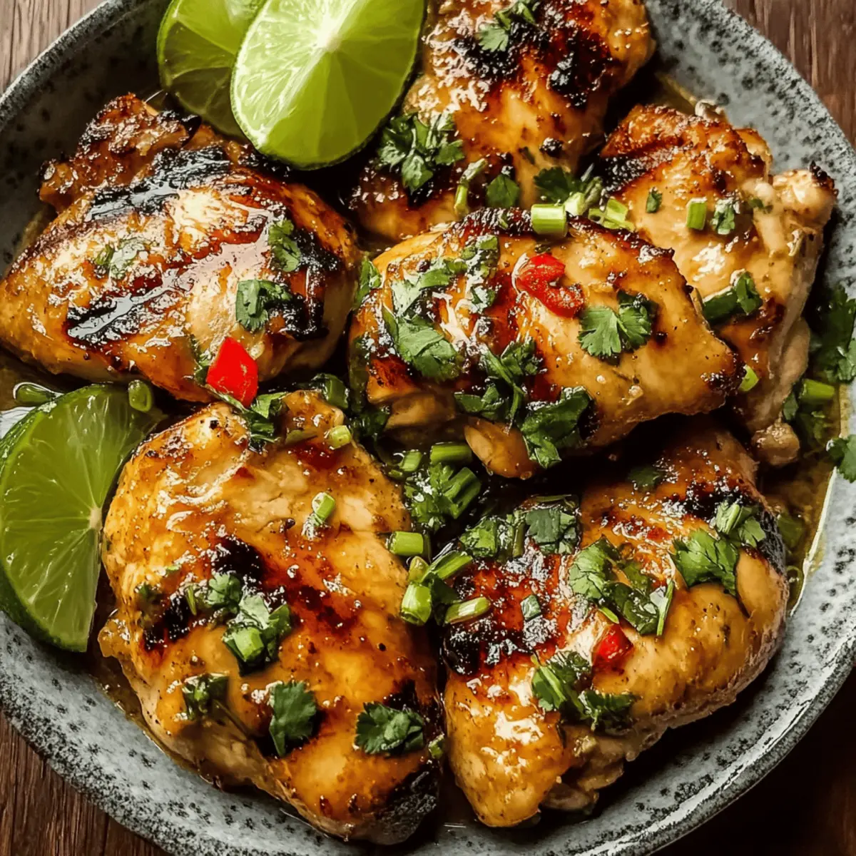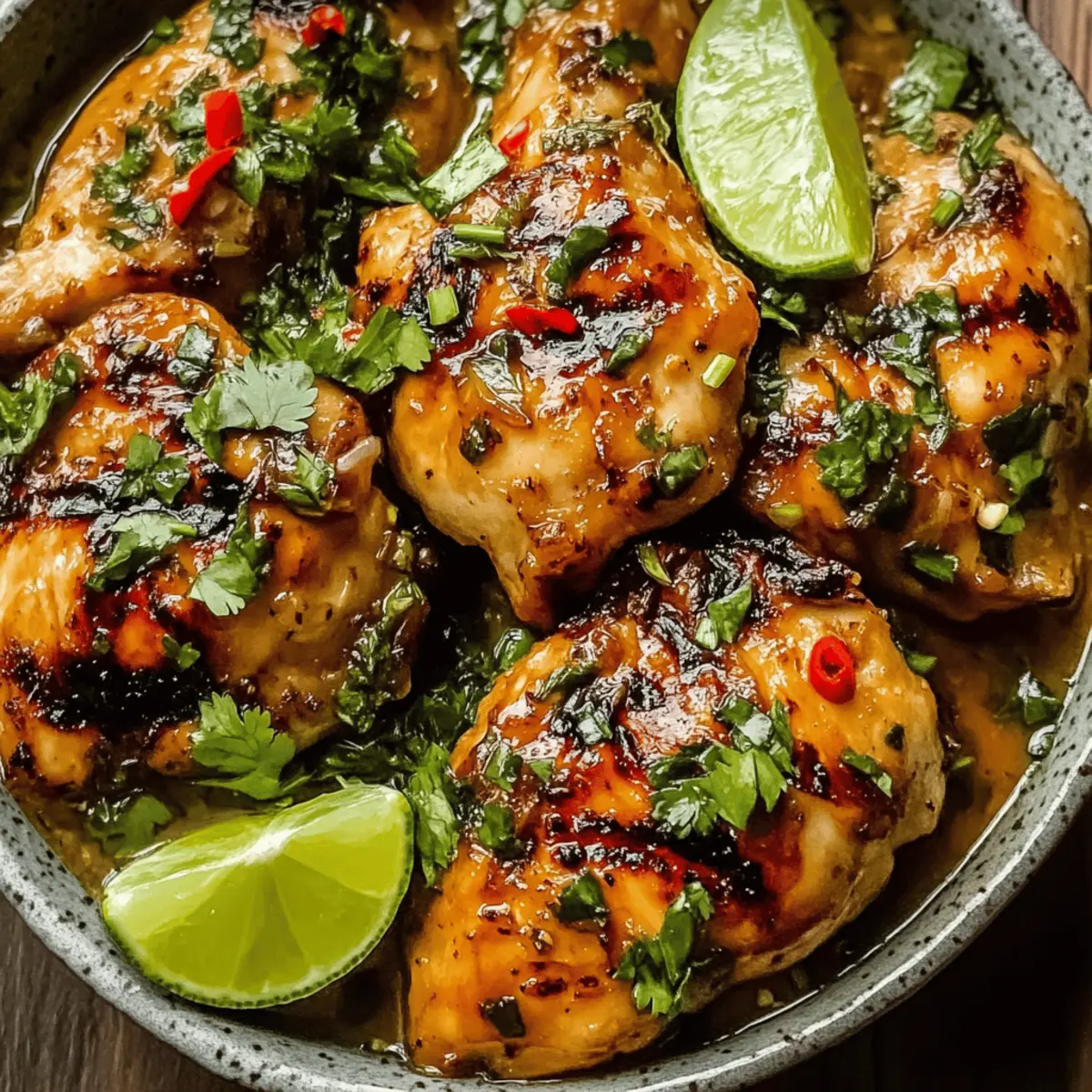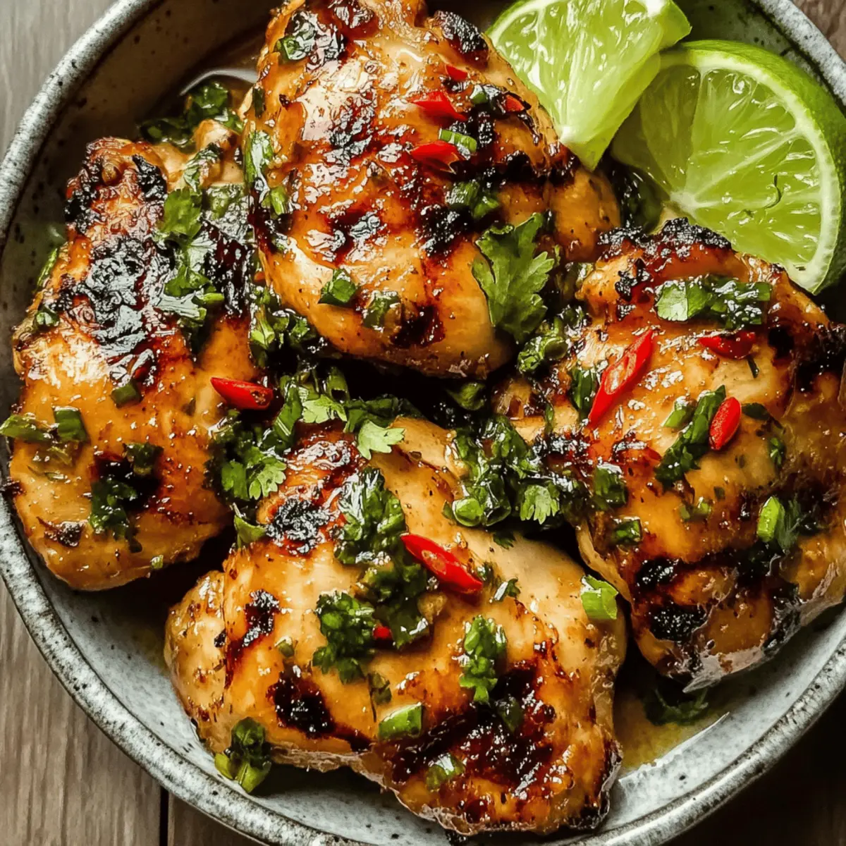 Jump to Recipe Print RecipeAs I stood in my kitchen catching a whiff of fragrant lemongrass and zesty lime, I knew I was about to create something magical: Vietnamese Lemongrass Chicken. This dish, bursting with aromatic flavors, is perfect for anyone seeking a fresh and vibrant weeknight dinner option. It’s a delightful blend of savory and sweet that not only pleases the palate but is also quick to whip up—ideal for those busy evenings when takeout just won’t cut it. Packed with protein and versatile enough to adapt with your favorite herbs, this recipe ensures everyone around the table will be reaching for seconds. Curious how this fragrant dish can elevate your cooking game? Let’s dive into the details! Why You’ll Love This Lemongrass Chicken? Vibrant, Aromatic Flavors: This dish bursts with the fresh essence of lemongrass and lime, making each bite a flavor-packed experience. Quick and Easy Prep: With minimal ingredients and straightforward steps, you’ll have a delicious meal ready in no time—perfect for busy weeknights. Protein-Rich Goodness: Packed with succulent chicken thighs, it’s a nutritious option that will satisfy everyone’s hunger. Versatile Cooking Methods: Grill, stir-fry, or infuse with coconut milk; this recipe easily adapts to your culinary preferences. Crowd-Pleasing Appeal: Whether for a casual family dinner or a lively gathering, this dish resonates with tastes and is sure to impress! If you love exploring diverse flavors, check out my Butter Chicken Comfort and Parmesan Chicken Transforms for more exciting recipes! Vietnamese Lemongrass Chicken Ingredients • Dive into the vibrant flavors with these fresh ingredients! For the Chicken Marinade Boneless Skinless Chicken Thighs – Tender and juicy, ideal for soaking up those aromatic flavors; can substitute with chicken breasts. Vegetable Oil – Essential for browning; gives the chicken a lovely sear; can also use canola or peanut oil. Lemongrass – Adds a unique citrusy flavor; use the white part minced finely for the best taste; lemongrass paste can work in a pinch. Garlic – Enhances the dish with superfood health benefits; always use fresh for maximum flavor. Shallot – Introduces a mild onion sweetness; red or sweet onion can be a great substitute. For the Flavor Boost Fish Sauce – A cornerstone of Vietnamese cuisine, imparting umami depth; for vegetarian options, consider soy sauce, though it will subtly alter the taste. Soy Sauce – Adds saltiness and richness; low-sodium options are great for healthier cooking. Brown Sugar – Balances sweet and savory notes, pivotal for caramelization; coconut sugar provides an alternative flavor. Lime Juice – Infuses tanginess; fresh limes offer the best flavor, but bottled can be a quick substitute. Ground Black Pepper – Adds a hint of spice and aroma, elevating the flavor profile. Chili Paste (optional) – Introduces desired heat; adjust based on your spice preference. For the Garnish Fresh Cilantro – Provides brightness and contrast; feel free to switch it with mint or basil for variety. Sliced Lime Wedges – Perfect for enhancing the dish just before serving, adding a burst of freshness. With these ingredients in hand, you’re all set to create a mouthwatering Vietnamese Lemongrass Chicken that will undoubtedly become a family favorite! Step‑by‑Step Instructions for Vietnamese Lemongrass Chicken Step 1: Prepare the Marinade In a large bowl, whisk together the minced lemongrass, garlic, shallot, fish sauce, soy sauce, brown sugar, lime juice, black pepper, and optional chili paste. Mix until the sugar dissolves, creating a fragrant marinade that embodies the essence of Vietnamese Lemongrass Chicken. This step will take about 5 minutes, setting the stage for rich flavors. Step 2: Marinate the Chicken Add the boneless skinless chicken thighs to the marinade, ensuring each piece is thoroughly coated. For the best flavor infusion, cover the bowl and let it marinate for at least 30 minutes—or up to 2 hours in the refrigerator if your schedule allows. This enhances the marinade’s aromatic qualities, making your chicken tender and flavorful. Step 3: Heat the Skillet Heat 2 tablespoons of vegetable oil in a large skillet over medium-high heat. Once the oil is shimmering and hot (approximately 2-3 minutes), carefully add the marinated chicken thighs to the pan. The vibrant scents of lemongrass and garlic will begin to fill your kitchen at this point, ensuring a tempting start to your Vietnamese Lemongrass Chicken. Step 4: Cook the Chicken Cook the chicken thighs for 5-7 minutes per side, or until they are golden brown and an internal temperature of 165°F (75°C) is reached. Keep an eye on them to achieve a beautiful caramelization; the surface should be nicely browned while remaining juicy inside. This cooking process will take around 12-14 minutes. Step 5: Rest and Slice Once cooked through, carefully remove the chicken from the skillet and let it rest on a cutting board for a few minutes. This resting period allows the juices to redistribute, ensuring your Vietnamese Lemongrass Chicken is succulent and bursting with flavor. After resting, slice the chicken into bite-sized pieces for serving. Step 6: Garnish and Serve Finally, transfer the sliced chicken onto a serving platter and garnish with fresh cilantro and lime wedges. The burst of colors and aromas will make your dish visually appealing as well as delicious. Pair with jasmine rice or fresh veggies, and savor the delightful flavors of your homemade Vietnamese Lemongrass Chicken! Variations & Substitutions for Vietnamese Lemongrass Chicken Get ready to customize your Vietnamese Lemongrass Chicken in delightful ways that cater to your taste buds and dietary needs! Grilled Lemongrass Chicken: Thread marinated chicken onto skewers and grill for a smoky twist. The charred edges offer a delightful contrast to the juicy interior. Lemongrass Chicken with Coconut Milk: Stir in coconut mil