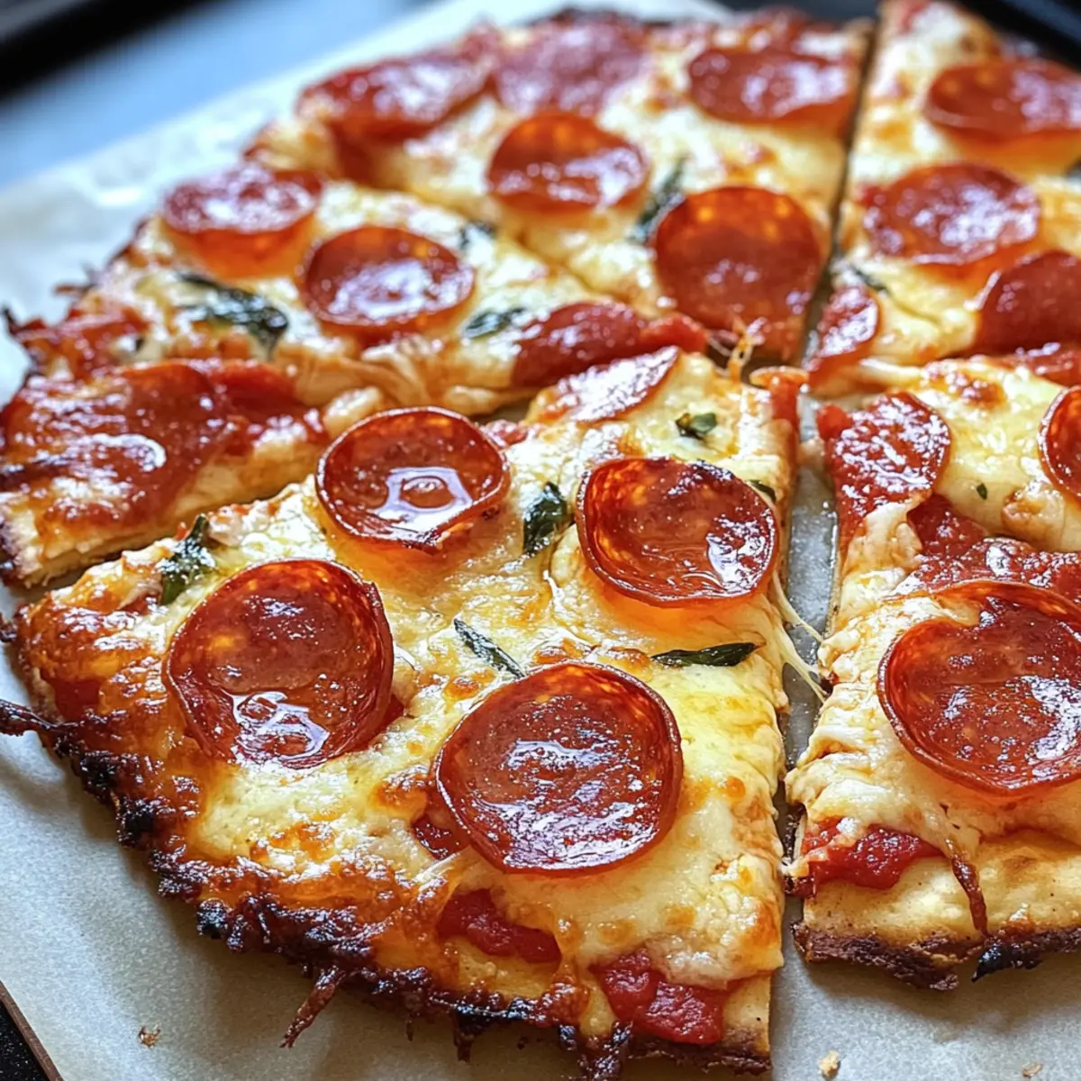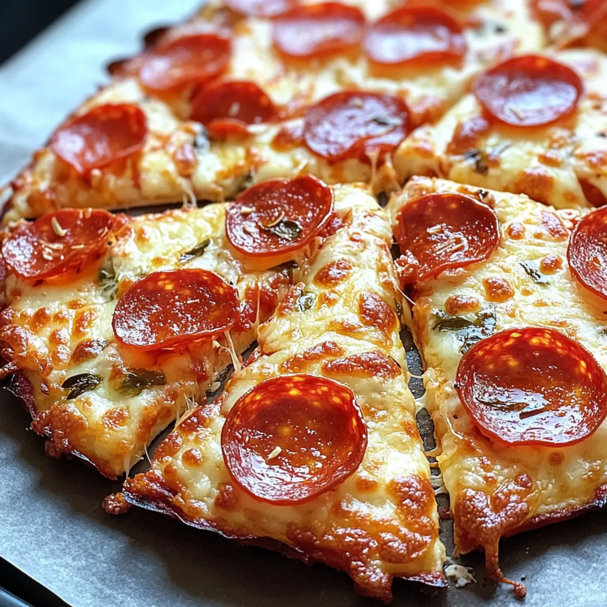 Jump to Recipe Print RecipeAs I rushed to finish dinner one evening, an idea struck me: why not craft a pizza that feels indulgent yet won’t weigh me down? Enter the viral sensation that is the Cottage Cheese Flatbread Pizza. With its golden, crispy crust made from cottage cheese, this low-carb twist on traditional pizza offers a protein-packed experience that’s both comforting and nutritious. The beauty of this recipe is its simplicity; quick to prepare and endlessly customizable, it makes weeknight meals a breeze and a family favorite. Picture yourself personalizing each flatbread with your favorite toppings, creating gourmet masterpieces right from your kitchen. Want to elevate your dinner routine with a tasty, healthier alternative? Let’s dive into how to make this delightful dish together! Why is This Flatbread Pizza a Must-Try? Crispy Delight: The contrasting textures of a crispy exterior and a soft cheesy interior make each bite a culinary adventure. Quick Prep: Ready in just about an hour, this flatbread pizza is perfect for busy weeknights when you want something delicious without the hassle. Protein-Packed: With cottage cheese as the star ingredient, each slice is loaded with protein, making it a wholesome choice. Customizable Goodness: Personalize with your favorite toppings—whether it’s fresh veggies or hearty meats, the choices are endless! Low-Carb Alternative: This recipe is a fantastic low-carb option, appealing to those looking for healthier fare without sacrificing taste. If you enjoy unique twists on classic recipes, you might also love these Sausage Egg Cheese roll-ups or the zesty Lemon Pizza Refreshing. Viral Cottage Cheese Flatbread Pizza Ingredients For the Flatbread Base Cottage Cheese – Provides a creamy texture and substantial protein content; ricotta cheese can be used for a smoother base. Eggs – Acts as a binding agent to hold the flatbread together; flax eggs offer a vegan alternative. Garlic Powder – Adds a savory flavor dimension; fresh minced garlic can also be used for an aromatic boost. Salt – Enhances overall flavor; consider using sea salt or kosher salt for a gourmet touch. Black Pepper – Provides a slight heat; adjust to taste for personal preference. Italian Herb Mix – Imparts traditional Italian flavors; substitute with fresh herbs like basil or oregano for a vibrant taste. For Toppings Pizza Sauce – Serves as the base topping; feel free to replace with pesto or tomato sauce for a unique twist. Grated Cheese (e.g., mozzarella) – Melts atop the pizza for a gooey texture; vegan cheese can be swapped for a dairy-free version. Pepperoni – Adds protein and flavor; consider substituting with vegetables or plant-based alternatives for a vegetarian option. This Viral Cottage Cheese Flatbread Pizza transports your dinner from ordinary to extraordinary while keeping it healthy and indulgent! Step‑by‑Step Instructions for Viral Cottage Cheese Flatbread Pizza Step 1: Blend Base In a blender, combine 1 cup of cottage cheese, 2 eggs, 1 teaspoon garlic powder, ½ teaspoon salt, ¼ teaspoon black pepper, and 1 teaspoon Italian herb mix. Blend everything until the mixture is smooth and creamy, about 30 seconds. This will be the base for your Viral Cottage Cheese Flatbread Pizza, providing a rich texture for your crust. Step 2: Preheat Oven While blending the base, preheat your oven to 350°F (180°C). This is crucial for achieving that perfect golden-brown flatbread texture. As the oven heats, gather your baking equipment, such as a baking sheet and parchment paper, to prepare for the next steps. Step 3: Prepare Baking Sheet Line your baking sheet with parchment paper for easy removal of the flatbread once baked. Pour the blended cottage cheese mixture onto the sheet and use a spatula to spread it into a round shape about ½ inch thick. This ensures even cooking and a nice crust for your Viral Cottage Cheese Flatbread Pizza. Step 4: Bake Base Place the baking sheet in the preheated oven and bake the flatbread for 30 minutes, or until it turns golden brown and slightly puffed. Keep an eye on it towards the end of the baking time; you want to see a nice crisp exterior and a firm texture before moving on to the next step. Step 5: Add Toppings Once the flatbread base is baked, carefully remove it from the oven. Increase the oven temperature to 400°F (200°C) for the final bake. Spread a thin layer of pizza sauce over the crust, followed by a generous sprinkle of grated cheese, and add your favorite toppings, such as pepperoni or vegetables, ensuring not to overcrowd them. Step 6: Final Bake Return the topped flatbread to the oven and bake for an additional 8-10 minutes. Watch closely as the cheese melts and begins to bubble, creating a deliciously inviting layer on top of your Viral Cottage Cheese Flatbread Pizza. The edges should be slightly crispy and the cheese golden and gooey. Step 7: Serve Remove the flatbread pizza from the oven and let it cool for a minute. Slice into squares or wedges, and serve warm. Your customizable Viral Cottage Cheese Flatbread Pizza is now ready to be enjoyed, bursting with flavors and inviting aromas! Make Ahead Options These Viral Cottage Cheese Flatbread Pizzas are perfect for meal prep enthusiasts! You can prepare the flatbread base up to 24 hours in advance, allowing you to save valuable time during busy weeknights. Simply blend the ingredients (cottage cheese, eggs, and seasonings), bake the flatbread until golden brown, and let it cool completely. Store it in an airtight container in the refrigerator to maintain its delicious texture. When you’re ready to serve, just add your desired toppings and bake again at 400°F (200°C) for 8-10 minutes until the cheese is melted and bubbly. This way, you’ll have a fresh and satisfying pizza ready in no time! What to Serve with Viral Cottage Cheese Flatbread Pizza As you whip up a delicious flatbread pizza, consider these delightful pairings that perfect