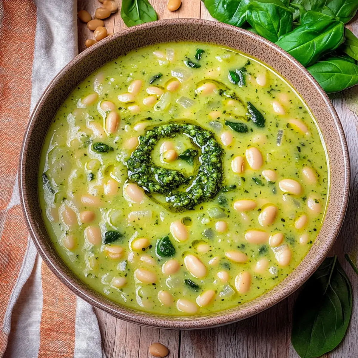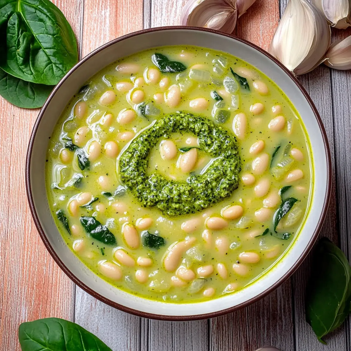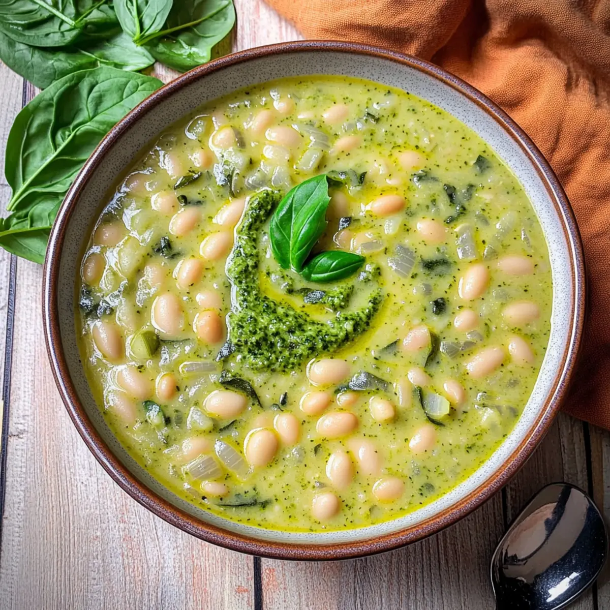 Jump to Recipe Print RecipeAs I stirred the pot, the vibrant green of the fresh basil and parsley blended beautifully with the creamy white beans, creating a vision of spring in my kitchen. This Creamy White Bean Pesto Soup is not just a meal; it’s a delightful escape from the grind of fast food, ready in a mere 30 minutes. Embrace the nourishing comfort of this vegan bowl, filled with heartiness that warms the soul. Perfect for a quick weeknight dinner or a cozy lunch, this easy vegan soup invites you to indulge without the guilt. Imagine how it feels to dive into a bowl of velvety goodness that’s not only delicious but also packed with nutrients! Ready to transform your meal times and savor something truly special? Let’s whip it up together! Why is this soup so irresistible? Simplicity at Its Best: This White Bean Pesto Soup is incredibly easy to make—just blend, sauté, and simmer! Flavor Explosion: The fresh basil and parsley create a vibrant, aromatic experience that elevates each spoonful. Comforting Nourishment: A perfect blend of plant-based protein and fiber ensures each bite is not only satisfying but incredibly wholesome. Quick to Prepare: In just 30 minutes, you can delight your taste buds without spending hours in the kitchen. Versatile Pairing: Enjoy it with warm crusty bread or croutons for extra crunch, making it a delightful addition to any meal. Transform your dining routine and embrace this vibrant, easy vegan soup that’s sure to become a family favorite! White Bean Pesto Soup Ingredients For the Pesto Fresh Basil – Essential for a vibrant flavor and aroma in this white bean pesto soup. Fresh Parsley – Complements basil and adds a refreshing touch to the pesto. Garlic – Uplifts both the pesto and soup with its aromatic essence; use fresh for the best taste. Blanched Almonds – Provides creaminess and nuttiness; try substituting with pine nuts or walnuts for a twist. Nutritional Yeast – Adds a cheesy flavor without dairy, enhancing the depth of your pesto. Extra Virgin Olive Oil – Vital for blending and sautéing, ensuring richness in every spoonful. For the Soup Onion – The aromatic base that brings sweetness when sautéed; finely dice for even cooking. Celery – Adds texture and enhances the overall flavor of the soup base. Cannellini Beans – Acts as a creaminess booster and thickener; rinse to cut down sodium. Vegetable Stock – The foundational liquid that drives flavor in your nourishing soup. Baby Spinach – Introduces vibrant color and nutrients; versatile enough to substitute with kale or chard. This White Bean Pesto Soup is bursting with fresh ingredients that come together to create a delightful and comforting bowl, perfect for any day! Step‑by‑Step Instructions for White Bean Pesto Soup Step 1: Make the Pesto In a food processor, combine fresh basil, parsley, garlic, blanched almonds, nutritional yeast, and a drizzle of extra virgin olive oil. Blend this vibrant mixture until smooth, scraping down the sides as needed. The pesto should have a creamy consistency and a rich green hue, smelling divine. Set aside the pesto to infuse your White Bean Pesto Soup with its fresh flavors. Step 2: Sauté Vegetables In a large pot, heat a tablespoon of extra virgin olive oil over medium heat. Once shimmering, add finely diced onion and chopped celery, sautéing for about 5-6 minutes until they turn translucent and aromatic. The vegetables should soften nicely, creating a cozy base for your soup. Stir occasionally to prevent sticking, allowing the sweetness to develop beautifully. Step 3: Add Garlic Stir in minced garlic and a pinch of red chili flakes into the pot with sautéed onions and celery. Sauté this mixture for an additional minute, letting the garlic become fragrant but not browned. This step enhances the flavor profile of your White Bean Pesto Soup with lovely undertones of warmth and spice, enticing your senses. Step 4: Combine Beans and Stock Add the drained cannellini beans and vegetable stock into the pot, stirring well to combine. Bring this hearty mixture to a boil over medium-high heat, then reduce the heat to low and let it simmer gently for 10-15 minutes. The soup should bubble softly, allowing the flavors to meld together while the beans soften further, resulting in a comforting texture. Step 5: Finish the Soup Stir the prepared pesto and baby spinach into the simmering soup, allowing the spinach to wilt for about 1-2 minutes. This final touch enriches the White Bean Pesto Soup with vibrant green color and nutrients, bringing everything together. Taste and season with salt and pepper to your liking, ensuring every spoonful is a delight! Expert Tips for White Bean Pesto Soup Fresh Ingredients: Use fresh herbs and vegetables whenever possible. The vibrant flavors of your White Bean Pesto Soup rely on top-quality ingredients. Texture Preference: If you like a thicker soup, blend a portion of the beans before adding them. This creates a creamy base while keeping some whole for texture! Pesto Perfection: Ensure the pesto is smooth by processing it well; chunky pesto won’t meld nicely into your soup. Heat Control: Avoid burning the garlic by cooking it just until fragrant—overcooking can lead to bitterness in your soup. Flavor Adjustments: Taste as you go! Adjust the seasoning according to your palate, adding more salt or a splash of lemon juice for a zingy finish. What to Serve with Creamy White Bean Pesto Soup Elevate your meal experience by pairing this delightful soup with complementary sides that enhance its flavors and textures. Warm Crusty Bread: The perfect vehicle for scooping up each velvety bite, offering a satisfying crunch against the creamy soup. Garlic Bread: A fragrant twist that pairs beautifully, adding a savory layer to your dining experience. Your senses will dance with every bite! Crunchy Croutons: These will add a delightful crunch to the silky soup, creating an intriguing contrast in textures. A fab