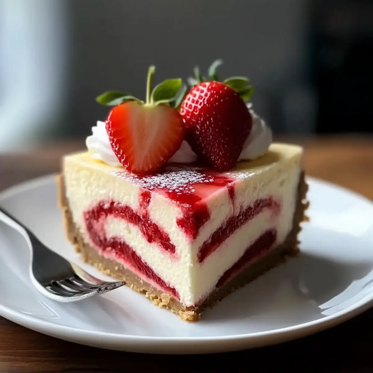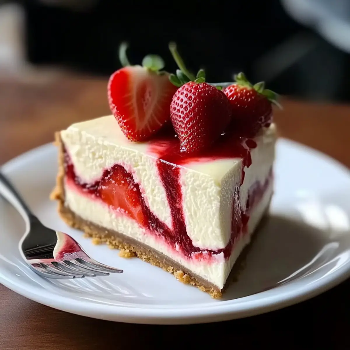 Jump to Recipe Print RecipeAs I stood in my kitchen, just like many of you, I was hit with a craving that only a successful baking endeavor could remedy. Enter the White Chocolate Strawberry Cheesecake—a dessert that feels indulgent yet remains surprisingly simple to create. With its creamy texture and fresh fruit topping, this cheesecake is not only a feast for the eyes but also perfect for any celebration. It’s a fantastic way to impress guests or simply treat yourself, thanks to its quick prep time and rich flavors that elevate any occasion. Whether you’re looking to satisfy your sweet tooth or create a centerpiece dessert that sparks joy, join me in crafting this delightful cheesecake. What’s your favorite twist on a classic dessert? What makes this cheesecake unforgettable? Creamy Perfection: Rich and smooth, this White Chocolate Strawberry Cheesecake brings luxury to your dessert table. Easy to Make: With just a few simple steps, you can create a showstopping treat that looks and tastes gourmet. Visually Stunning: The vibrant strawberries on top not only add flavor but create a beautiful contrast against the creamy cheesecake. Perfect for Any Occasion: Whether it’s a family gathering or a romantic dinner, this cheesecake is bound to impress! You can even explore variations, like drizzling it with chocolate sauce or trying out a Fruity Pebbles Cheesecake for a fun twist. Make Ahead Magic: Prepare it the day before to let the flavors set, making it a breeze to serve when guests arrive. White Chocolate Strawberry Cheesecake Ingredients For the Cheesecake Filling • Cream Cheese – Provides the main structure; ensure it’s softened for a smooth blend. • White Chocolate – Adds a rich sweetness; melt gently in a double boiler or microwave. • Granulated Sugar – Sweetens the cheesecake, balancing the creamy flavors. • Vanilla Extract – Enhances depth; opt for pure vanilla for optimal taste. • Eggs – Essential for binding; use room temperature eggs to achieve a velvety texture. For the Crust • Graham Cracker Crumbs – Forms a buttery base; substitute with Oreo crumbs for a chocolate twist. • Butter – Binds the crust while adding richness; unsalted butter is best for precise sweetness. For the Topping • Fresh Strawberries – Bright, fresh topping that elevates the cheesecake; feel free to swap with raspberries or blueberries. Now you’re all set with the ingredients for this delectable White Chocolate Strawberry Cheesecake! Happy baking! Step‑by‑Step Instructions for White Chocolate Strawberry Cheesecake Step 1: Prepare the Crust Start by preheating your oven to 350°F (175°C). In a mixing bowl, combine graham cracker crumbs with melted unsalted butter until the mixture resembles wet sand. Firmly press this mixture into the bottom of a 9-inch springform pan using your fingers or the bottom of a measuring cup. Once set, place the crust in the refrigerator for about 10 minutes to firm up. Step 2: Make the Filling While the crust is chilling, prepare your cheesecake filling. In a large mixing bowl, beat softened cream cheese using an electric mixer on medium speed until smooth and creamy, about 2-3 minutes. Gradually add melted white chocolate, granulated sugar, and pure vanilla extract, mixing until all ingredients are well combined and the mixture is silky and smooth. Step 3: Incorporate Eggs With the filling ready, add the room temperature eggs one at a time, blending on low speed after each addition. Be careful not to overmix; you want the filling to be smooth but not overly airy. Ensure everything is just combined before moving on to the next step, as this will help prevent cracks in your White Chocolate Strawberry Cheesecake. Step 4: Bake the Cheesecake Pour the creamy filling over the chilled crust in the springform pan. Smooth the top with a spatula for an even surface. Bake in the preheated oven for approximately 50-60 minutes or until the edges are set, and the center remains slightly jiggly—this ensures a perfect creamy texture. Avoid opening the oven during baking to maintain a consistent temperature. Step 5: Cool Gradually Once baked, turn off the oven and crack the door open, allowing the cheesecake to cool in the oven for about an hour. This gentle cooling process helps prevent cracks. Afterward, remove the cheesecake from the oven and let it cool to room temperature before transferring it to the refrigerator. Chill for at least 4 hours, preferably overnight, to enhance the flavors and ensure it is fully set. Step 6: Top & Serve Just before serving, slice fresh strawberries and aesthetically arrange them atop the chilled cheesecake. You can also drizzle some additional melted white chocolate over the strawberries for an elegant touch. Once artfully decorated, slice the White Chocolate Strawberry Cheesecake and serve to delighted guests, turning any occasion into a memorable celebration! What to Serve with White Chocolate Strawberry Cheesecake As you delight in the creamy goodness of this cheesecake, consider these delightful accompaniments that will elevate your dessert experience. Fresh Berries: The tartness of raspberries or blueberries adds a refreshing contrast to the rich cheesecake, enhancing its strawberry topping beautifully. Chocolate Drizzle: A warm drizzle of dark chocolate not only elevates the visual appeal but amplifies the sweet indulgence of the white chocolate. Whipped Cream: Light and fluffy, whipped cream creates a luxurious texture alongside each slice, making every bite feel even more decadent. Coffee: A hot cup of coffee is perfect for cutting through the sweetness while enhancing the cheesecake’s lush flavors. Mint Leaves: A sprinkle of fresh mint brings a vibrant, aromatic touch, brightening the palette and rounding off the heavy creaminess. Cheese Platter: Pairing slices of cheesecake with a selection of cheeses adds variety; consider mild brie or tangy goat cheese to contrast the sweet notes. Indulge yours