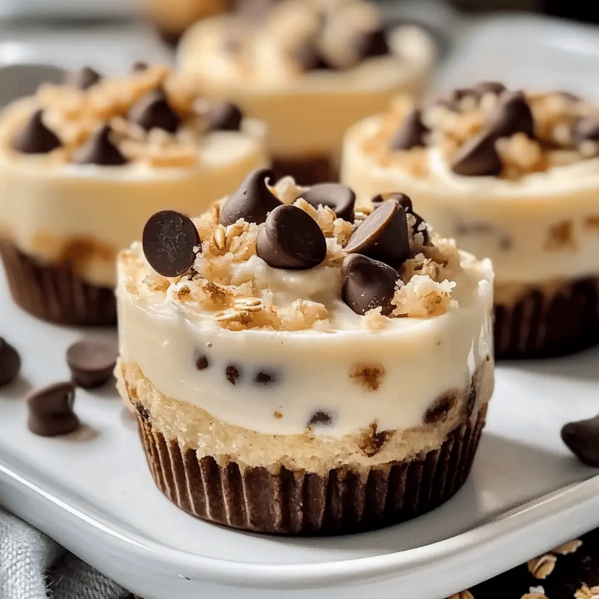 Jump to Recipe Print RecipeThe moment I scooped my first spoonful of High Protein Yogurt Cookie Dough Cups, I was transported to a realm where indulgence meets nutrition. These delightful no-bake treats combine the creamy goodness of Greek yogurt with the nostalgic flavor of cookie dough, providing a perfect solution for guilt-free snacking. Packed with protein and quick to whip up, they cater to your busy lifestyle without sacrificing quality or taste. Plus, you can easily customize them to fit any dietary preference, making them the ultimate versatile treat. Whether you’re looking for a post-workout boost or a sweet moment of self-care, these cups won’t disappoint. Curious about how to make these enticing creations? Let’s dive in! What Makes Yogurt Cookie Dough Cups Unique? Nutritious Delight: These cups combine high-protein Greek yogurt with the nostalgic flavor of cookie dough, making them a satisfying snack. Customizable Options: Easily switch ingredients to suit your taste, whether you prefer dairy-free or nut-free variations like a sunflower seed butter substitute. No-Bake Convenience: Quick and simple to make, these treats require no baking, saving you time in the kitchen. Freezer-Friendly: Prepare a batch and store in the freezer for up to two weeks—perfect for those busy days! Crowd-Pleasing Flavor: The combination of sweetness from chocolate chips and the chewiness of oats ensures everyone will love these cups. For more inspiration, check out my delicious Lemon Raspberry Cookies or indulge in Tiramisu Cookies Melt for a delightful treat! Yogurt Cookie Dough Cups Ingredients Get ready to whip up these wholesome delights! For the Base Greek Yogurt – A creamy source of protein that can be swapped with non-dairy yogurt for a dairy-free version. Nut Butter (almond or peanut butter) – Adds healthy fats and offers richness; sunflower seed butter is a great nut-free alternative. Protein Powder – Boosts the protein content; vanilla flavor is recommended for a sweet finish. Sweetener (maple syrup or honey) – Sweetens the mix; feel free to use liquid stevia for a low-sugar option. For Texture Rolled Oats or Almond Flour – They provide a substantial base; use almond flour for a low-carb twist. For Flavor Vanilla Extract – A must-have for enhancing the flavor depth. Mini Chocolate Chips – Optional but delicious, they add delightful sweetness; adapt based on your craving! Pinch of Salt – Essential for balancing and enhancing the overall flavor. Give these Yogurt Cookie Dough Cups a try and embrace a nourishing yet delicious treat! Step‑by‑Step Instructions for Yogurt Cookie Dough Cups Step 1: Prepare the Base In a mixing bowl, combine 2 cups of Greek yogurt, 1/2 cup of nut butter, 1/4 cup of your preferred liquid sweetener, and 1 teaspoon of vanilla extract. Stir the mixture vigorously for about 2-3 minutes until it reaches a smooth and creamy consistency without lumps. The key is to ensure everything is well incorporated for those delectable Yogurt Cookie Dough Cups. Step 2: Add Dry Ingredients Next, gently fold in 1 scoop of protein powder, 1 cup of rolled oats or almond flour, and a pinch of salt. Use a spatula to mix thoroughly for another 2-3 minutes, ensuring the dry ingredients are evenly distributed. If you’re adding mini chocolate chips, now is the time to stir them in, allowing for an even distribution of sweetness throughout your creamy mixture. Step 3: Line the Muffin Tin Line a muffin tin with cupcake liners to prepare for filling. If you don’t have liners, lightly grease the muffin tin with cooking spray or oil. Evenly distribute the cookie dough mixture into each cup, filling them to the top for generous treats. Tap the tin gently on the counter to remove any air bubbles and smoothen the tops for a neat finish. Step 4: Freeze the Cups Place the filled muffin tin in the freezer and let it chill for 1 to 2 hours. This step is crucial for achieving the perfect texture. Once they are firm to the touch and hold their shape, your Yogurt Cookie Dough Cups will be ready to pop out from the liners with ease, making them a delightful snack option. Step 5: Serve and Enjoy Before serving, allow the cups to sit at room temperature for about 5 minutes to soften slightly, enhancing their creamy texture. As you prepare to enjoy these beautiful Yogurt Cookie Dough Cups, savor the delightful aroma and take in the sweet anticipation of a nutritious treat that satisfies any craving. What to Serve with High Protein Yogurt Cookie Dough Cups? Elevate your snacking experience with delicious accompaniments that complement these nutritious yogurt cups perfectly. Fresh Berries: Their vibrant tartness balances the creamy sweetness of the cookie dough cups, providing a refreshing flavor contrast. Pairing these cups with a handful of strawberries or blueberries adds a burst of natural sweetness and a vibrant splash of color on your plate. Nutty Granola: Sprinkling some crunchy granola on top adds delightful texture and enhances the wholesome goodness of your snack. The granola’s nutty flavor harmonizes beautifully with the cookie dough’s richness, making each bite satisfying and delicious. Chia Seed Pudding: A scoop of creamy chia seed pudding on the side introduces an element of elegance and a boost of nutrition. Its soft texture works wonderfully with the rich yogurt cups, creating a delightful flavor fusion that can’t be missed! Sliced Bananas: Add slices of banana for a naturally sweet and creamy addition. This combo offers an incredible taste sensation while providing extra fiber and potassium for a sustaining snack. Nut Milk Latte: Enjoy these cups alongside a frothy nut milk latte for a complete snack moment. The creamy, frothy beverage pairs perfectly with the dough cups, amplifying the cozy, indulgent experience. Dark Chocolate Squares: Enhance your dessert with a square of high-quality dark chocolate. The deep, rich flavor melds with the cookie dough cups be